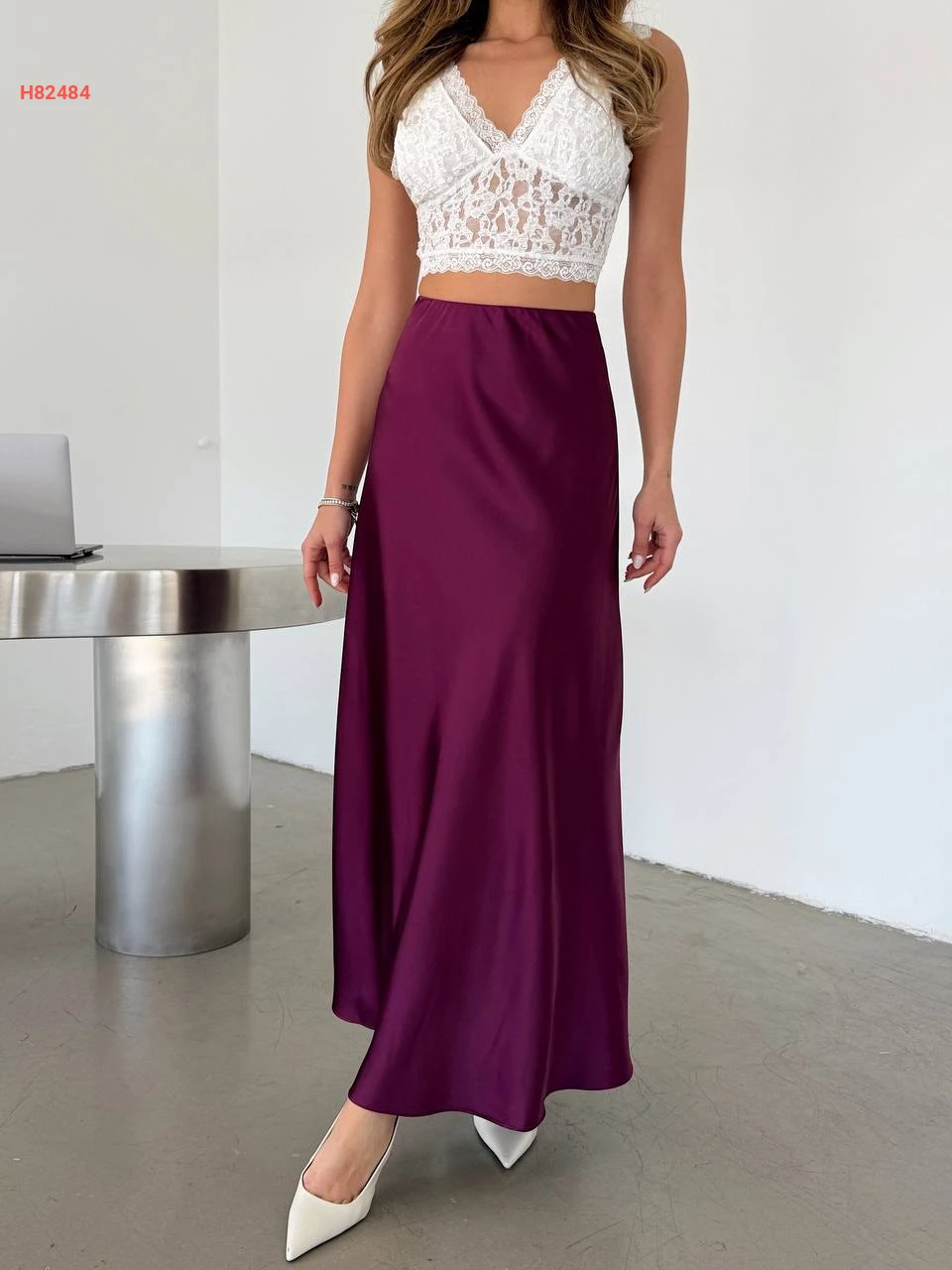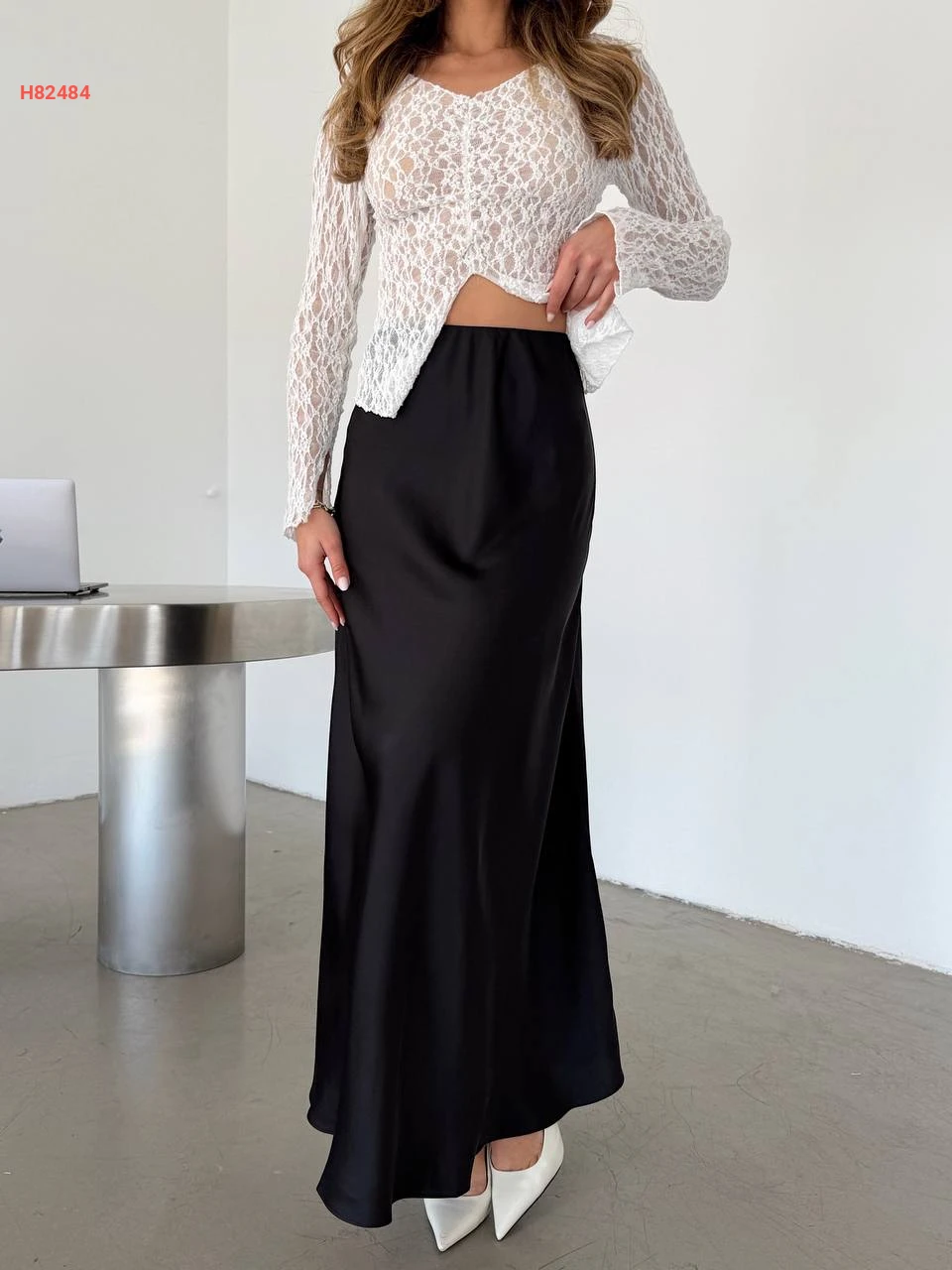 تنورة طويلة ساتان لميع