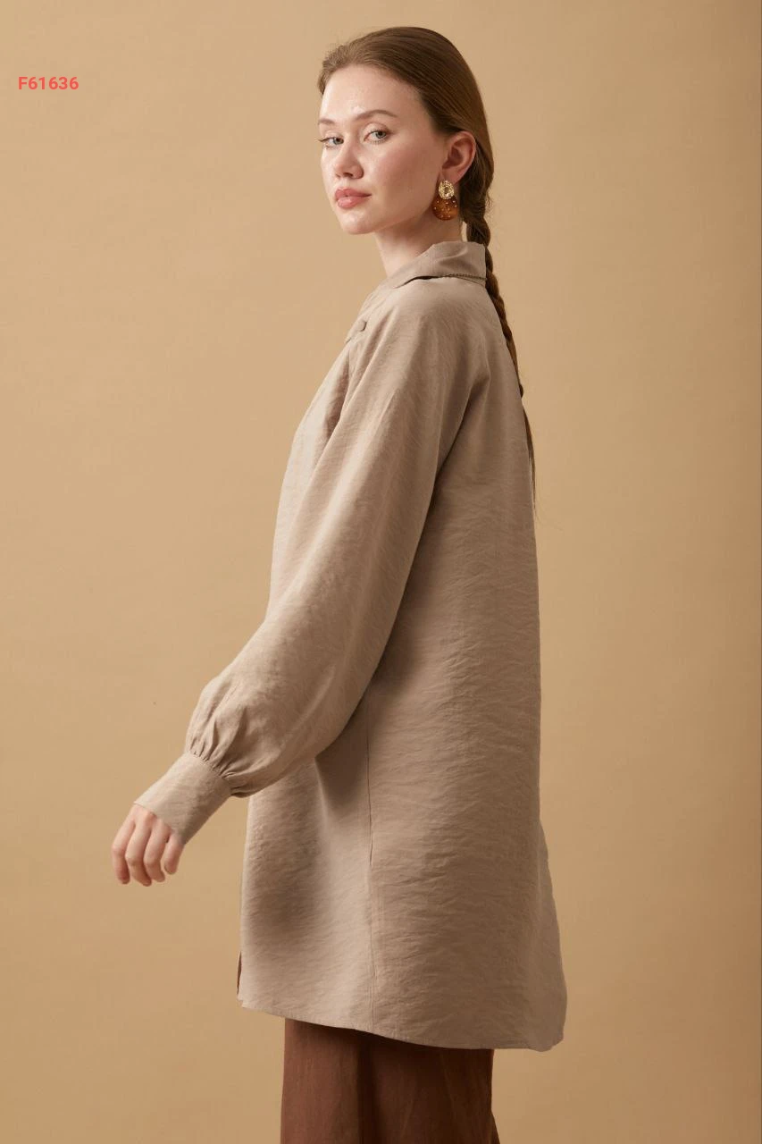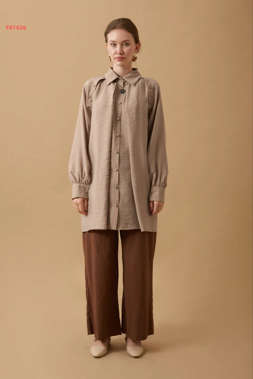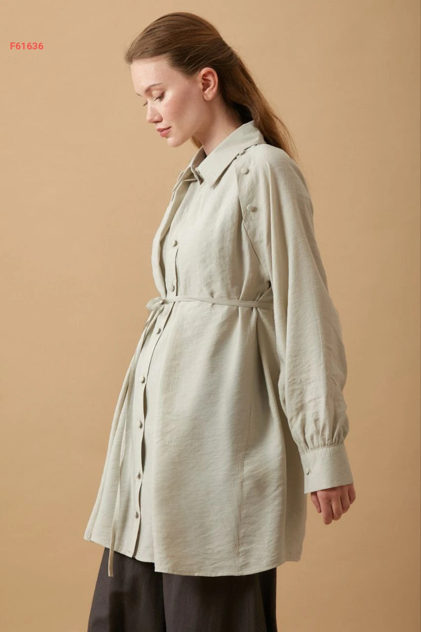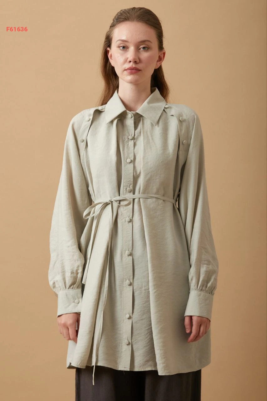 قميص طويل بأزرار مع ربطة خصر