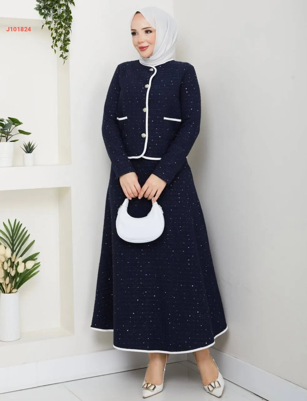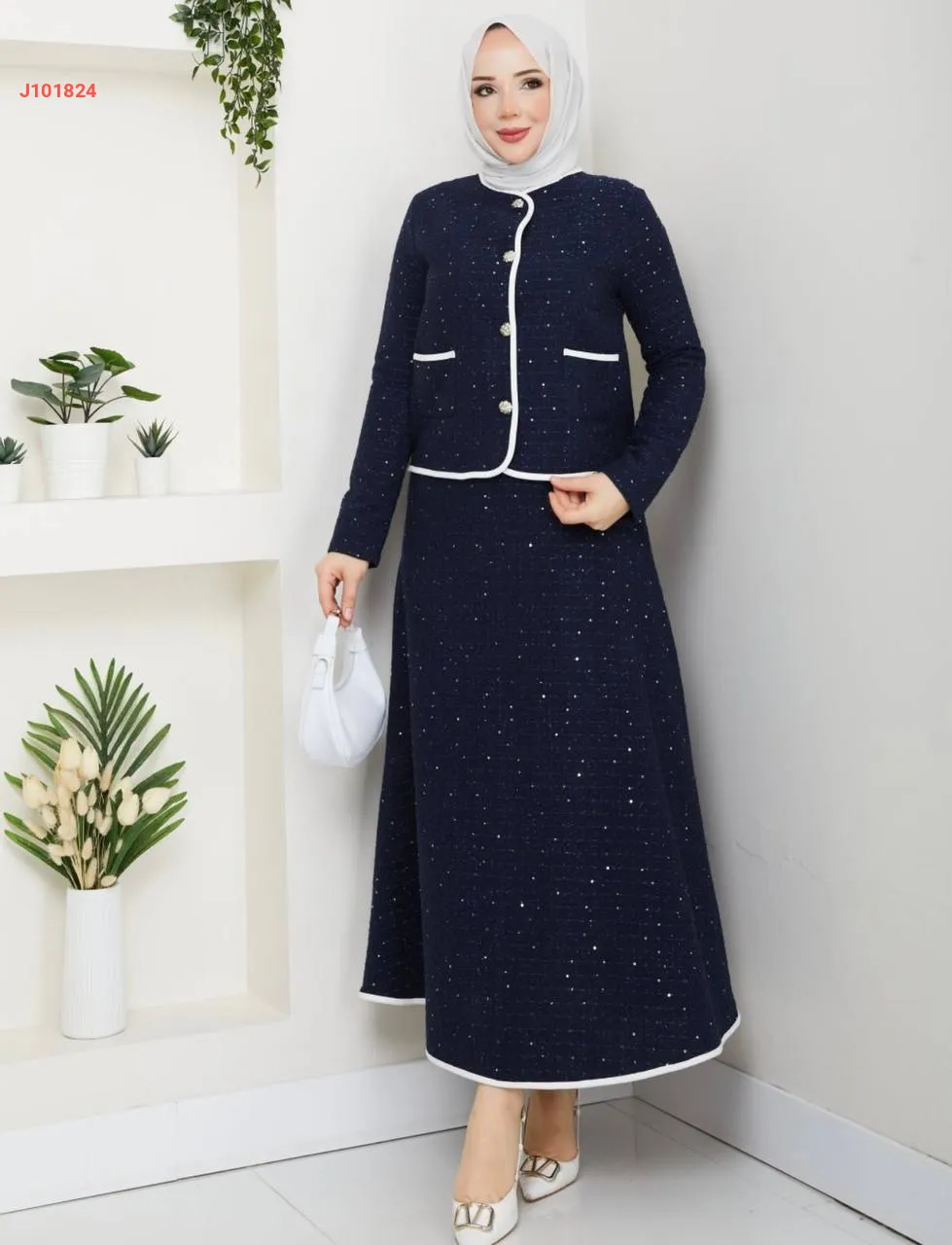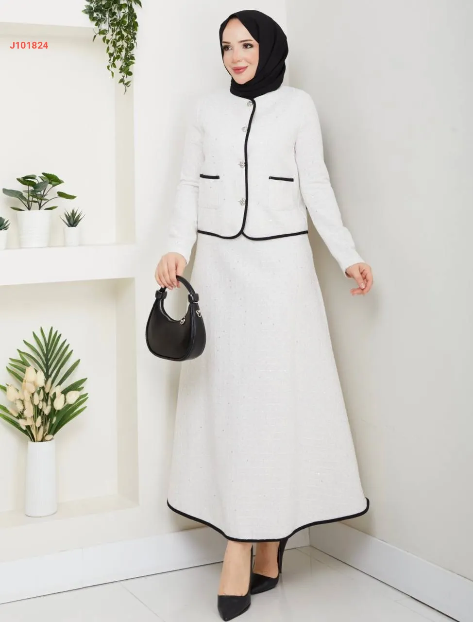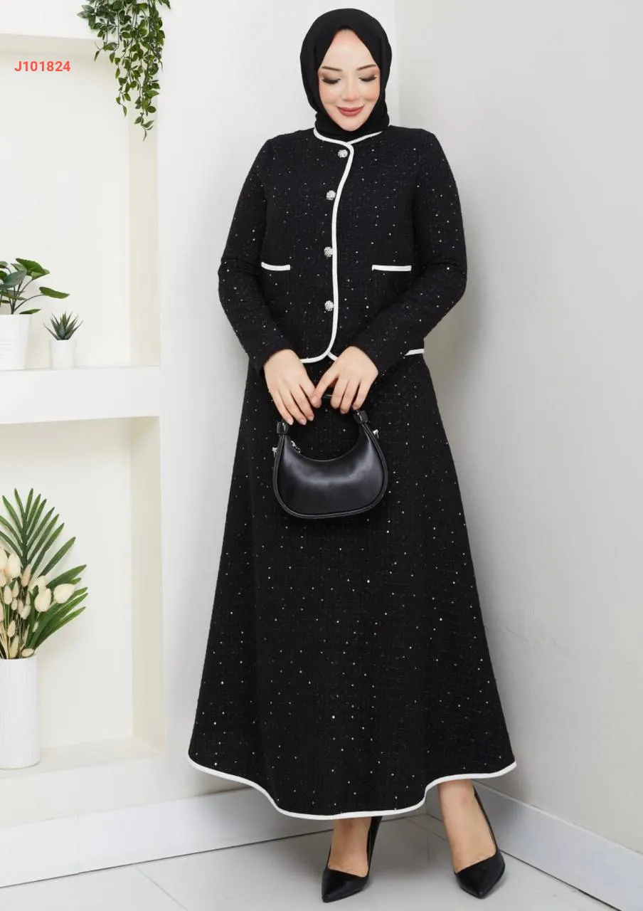 طقم تنورة طويل شانيل مع جاكيت
