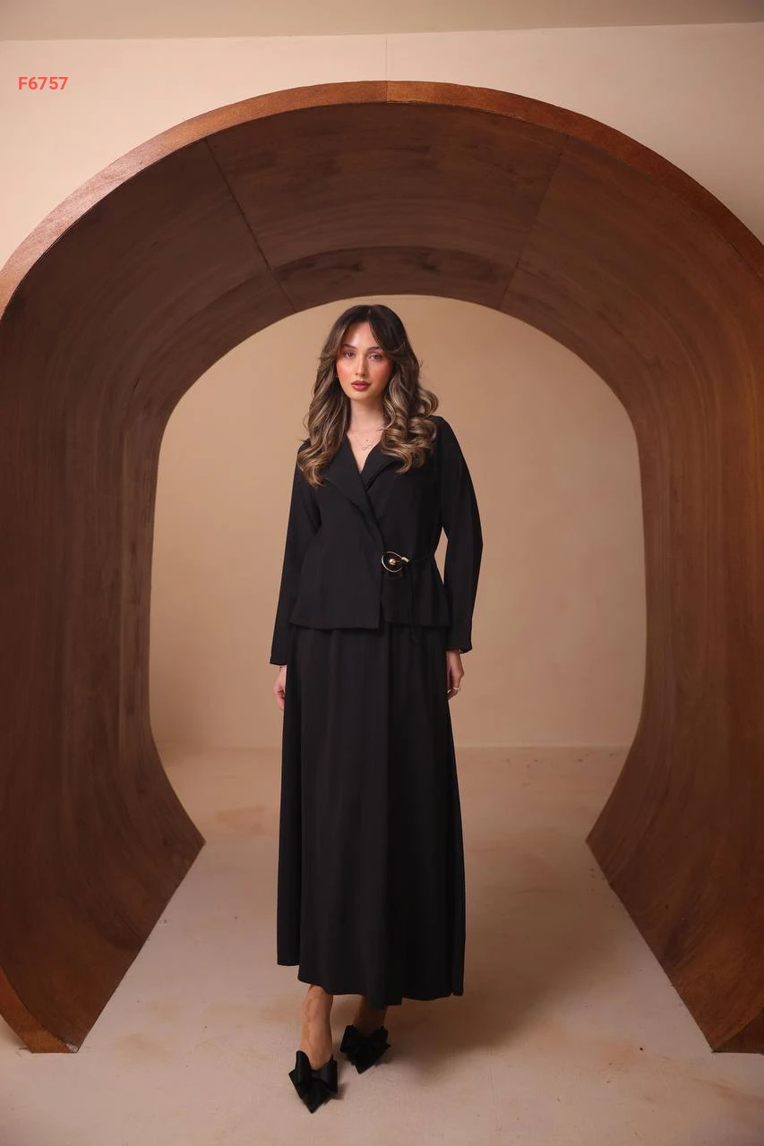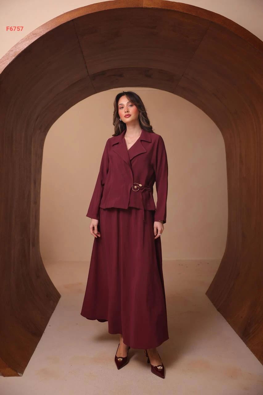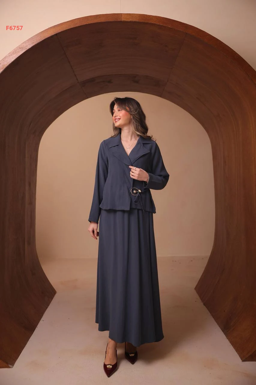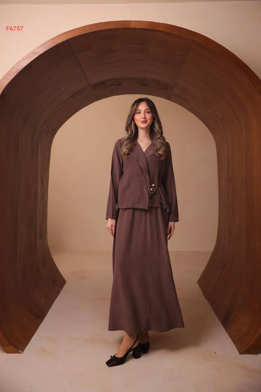 طقم تنورة طويل وجاكيت ببروش