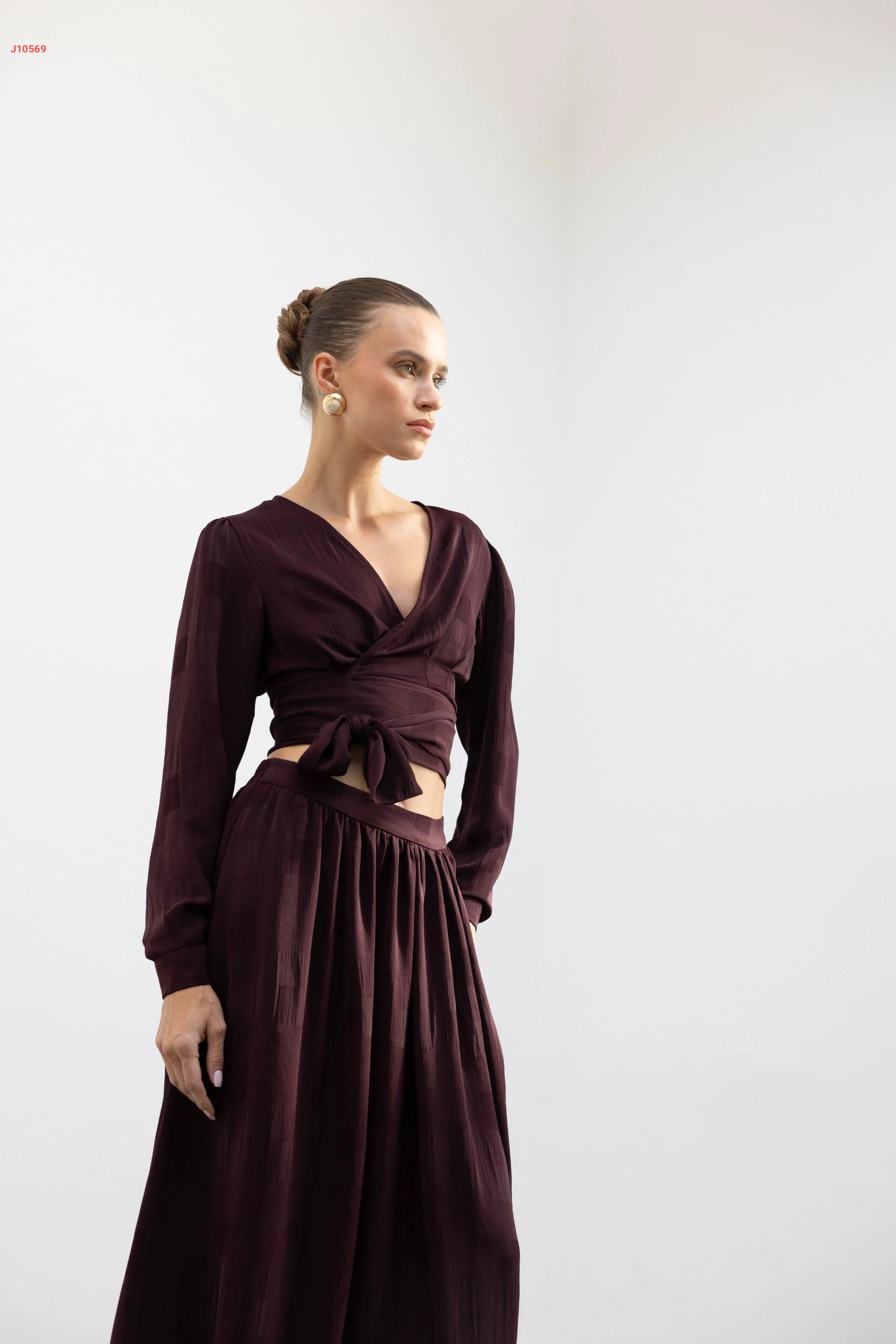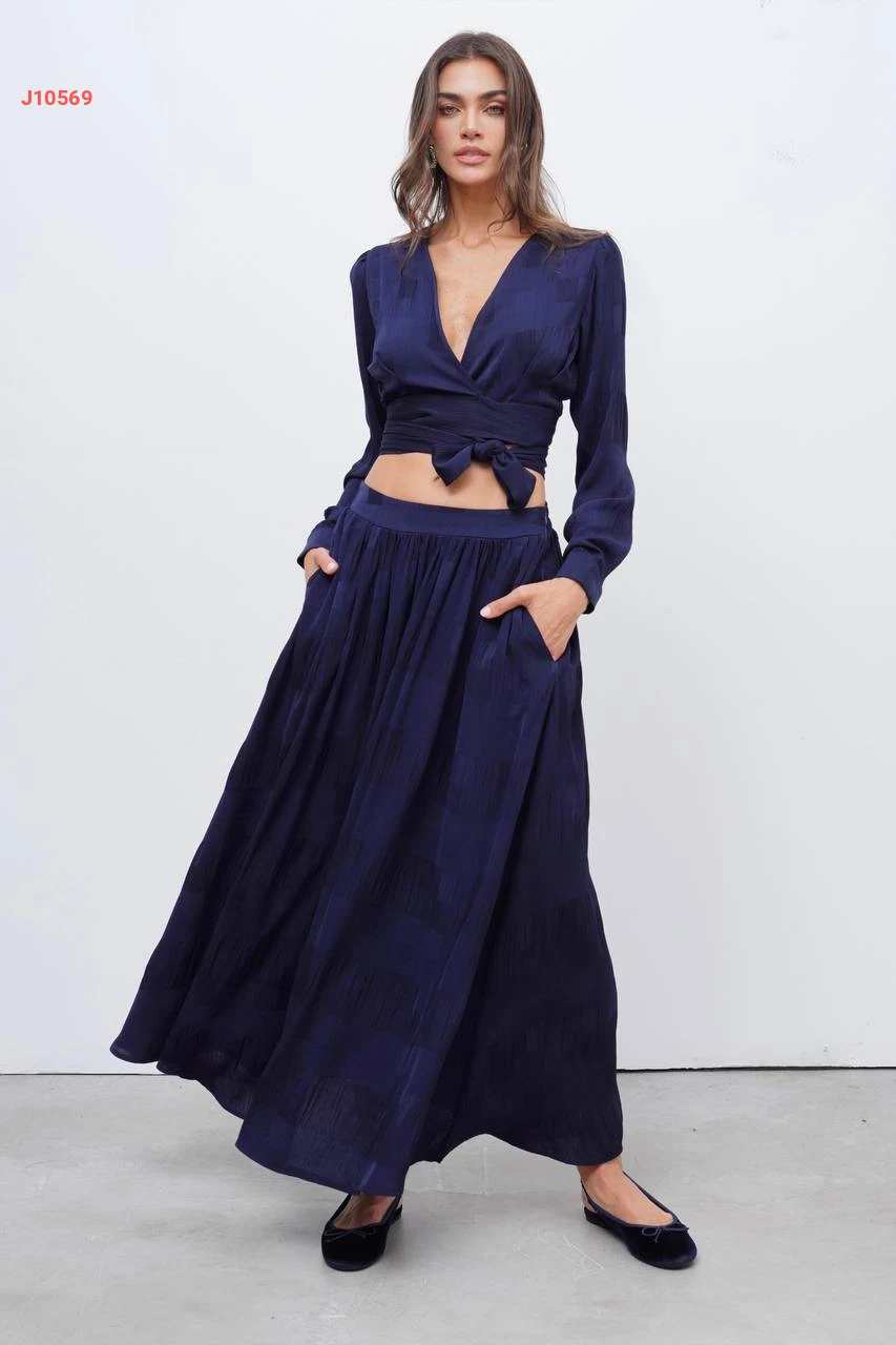 طقم تنورة طويلة وبلوزة بربطة