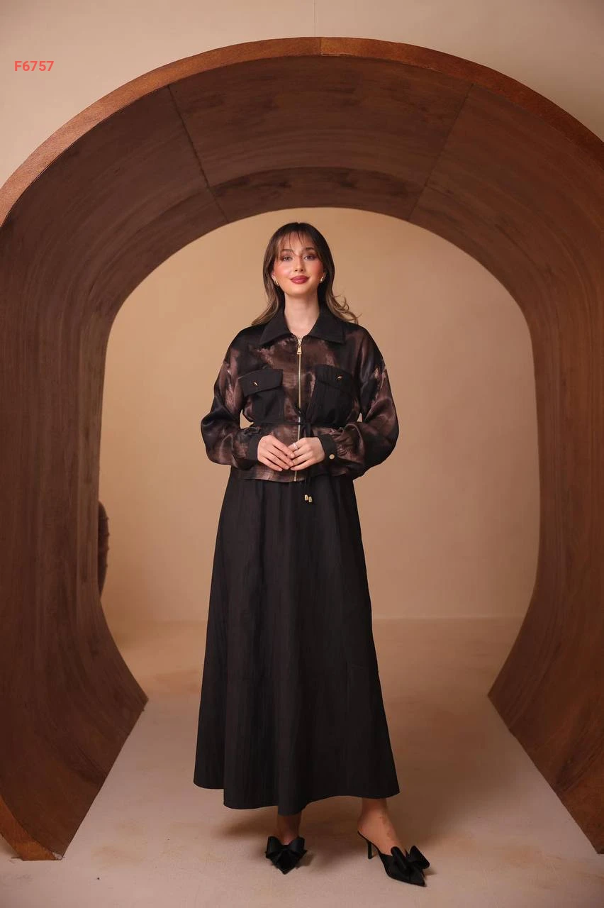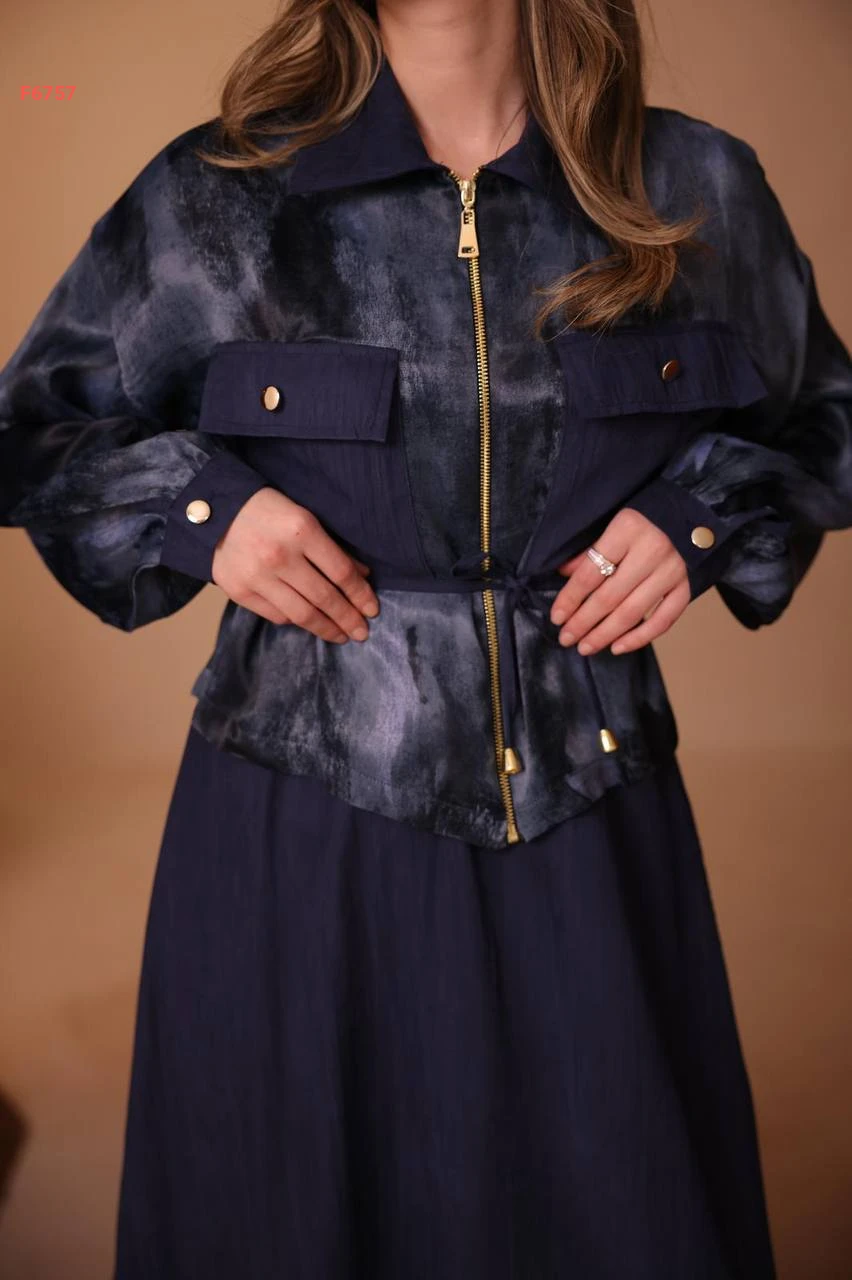 طقم تنورة طويل وجاكيت ساتان
