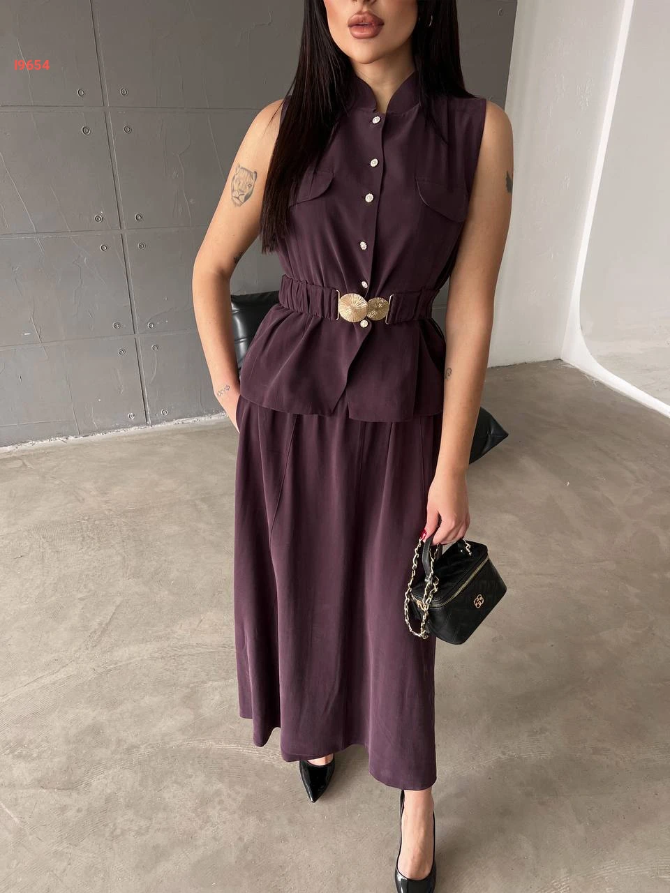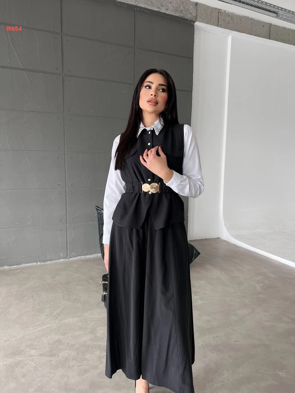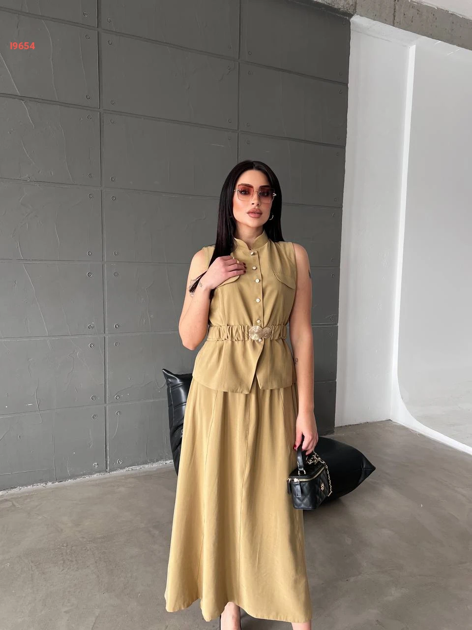 طقم تنورة طويل مع يلك بحزام