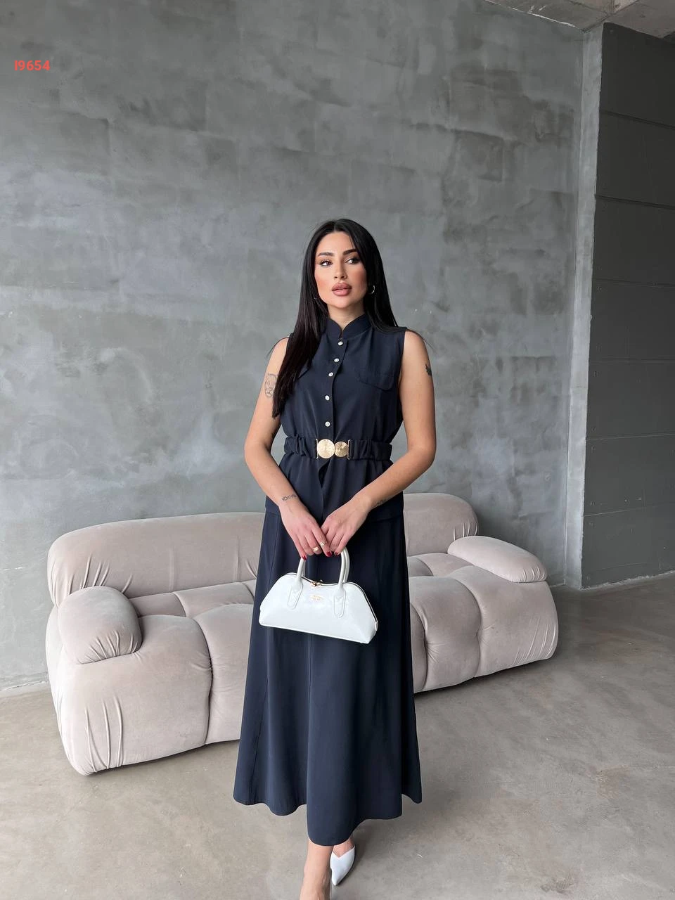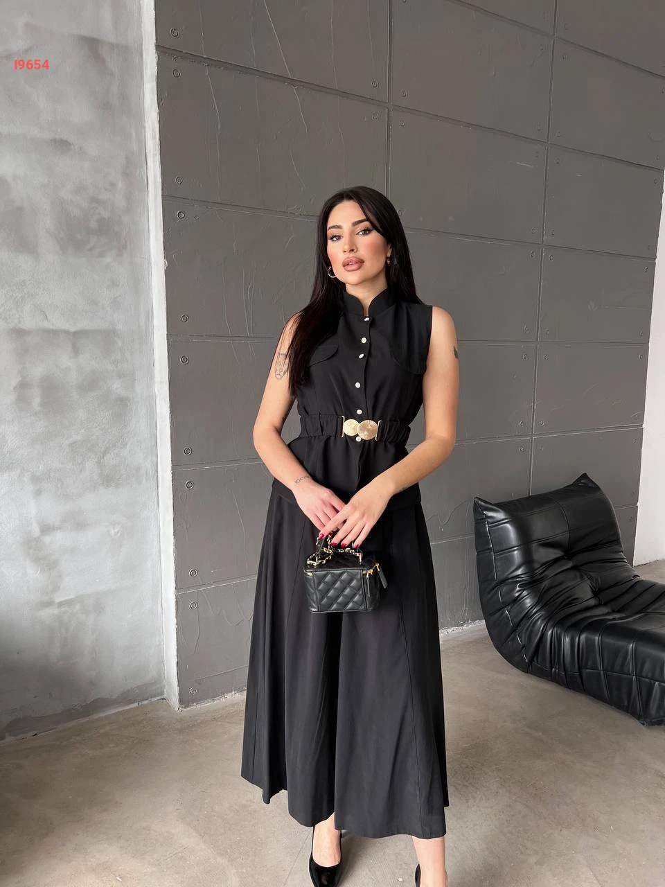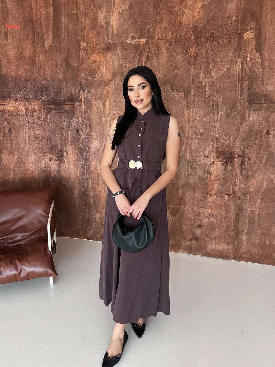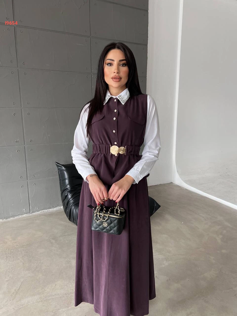 طقم تنورة طويل مع يلك بحزام