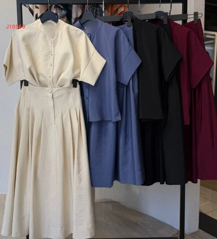 طقم تنورة طويل مع قميص نصف كم