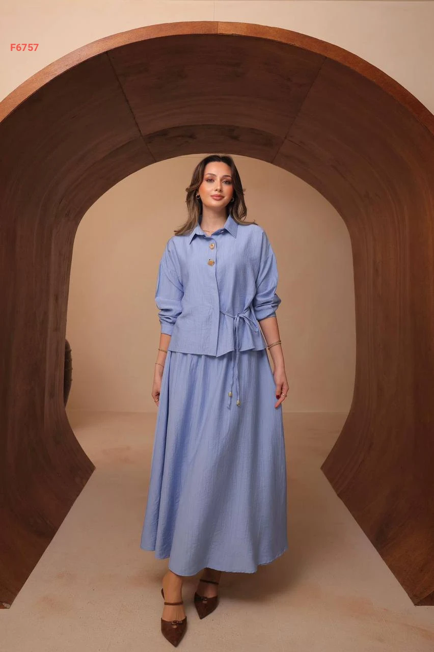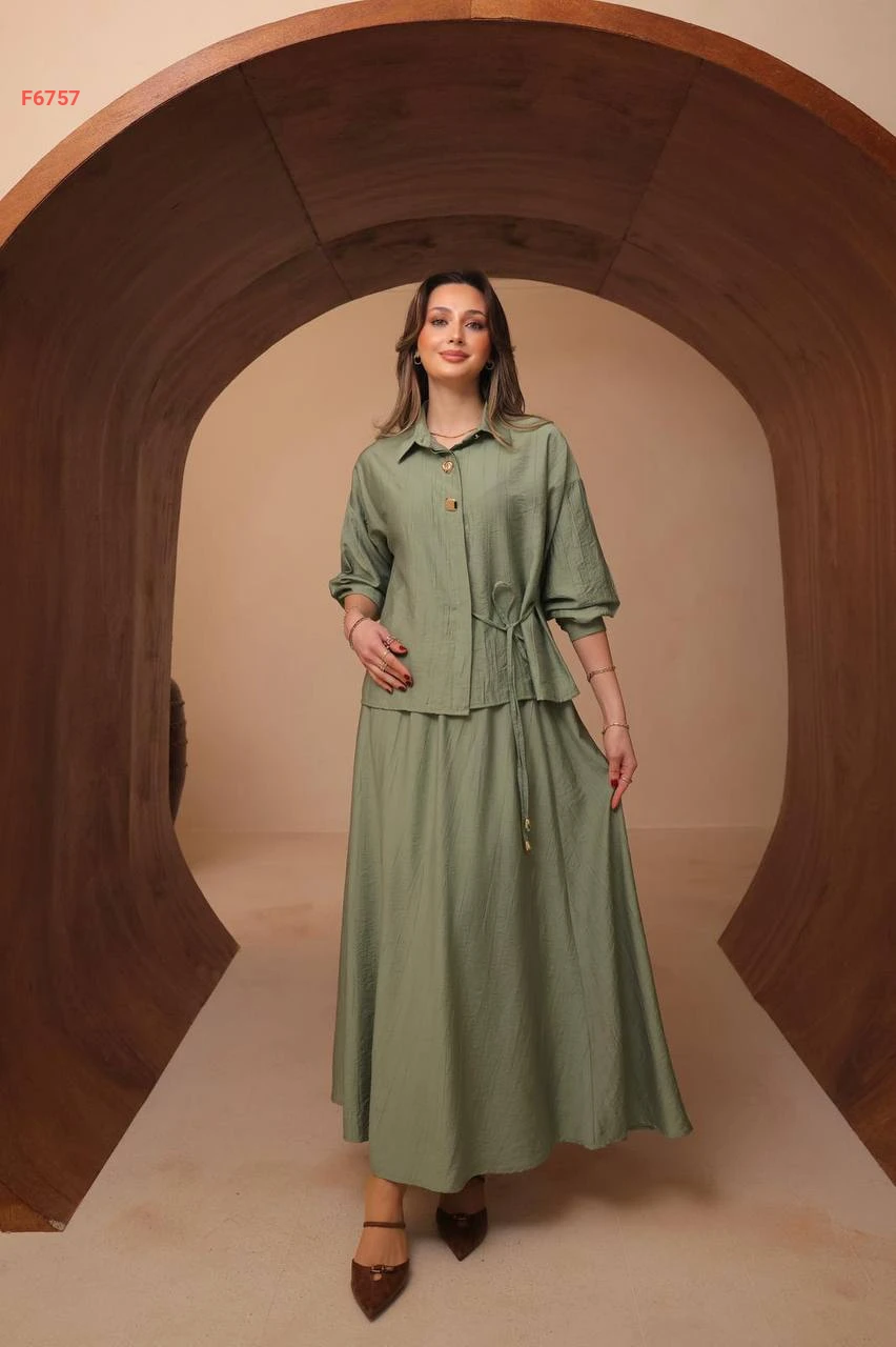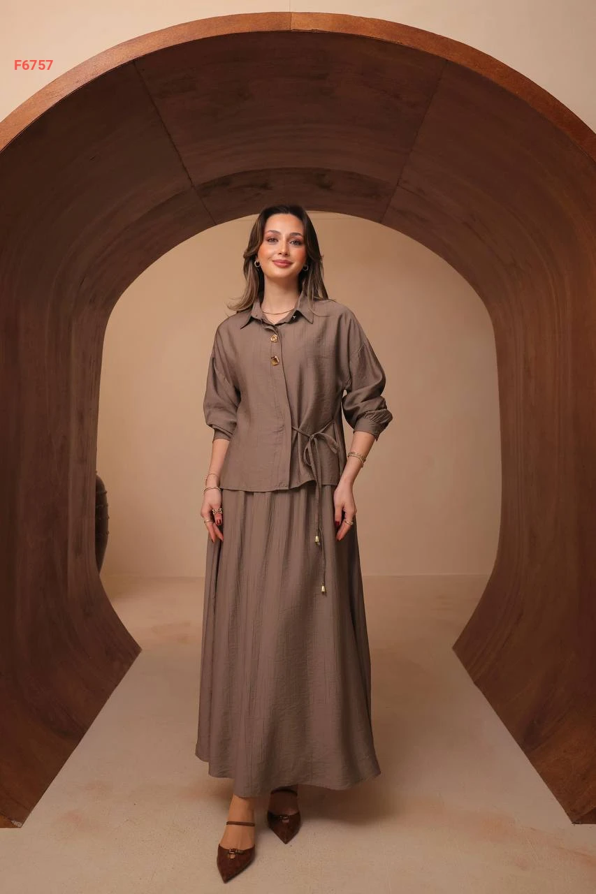 طقم تنورة طويل مع قميص