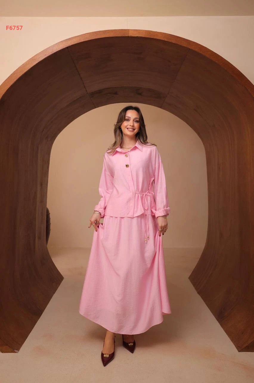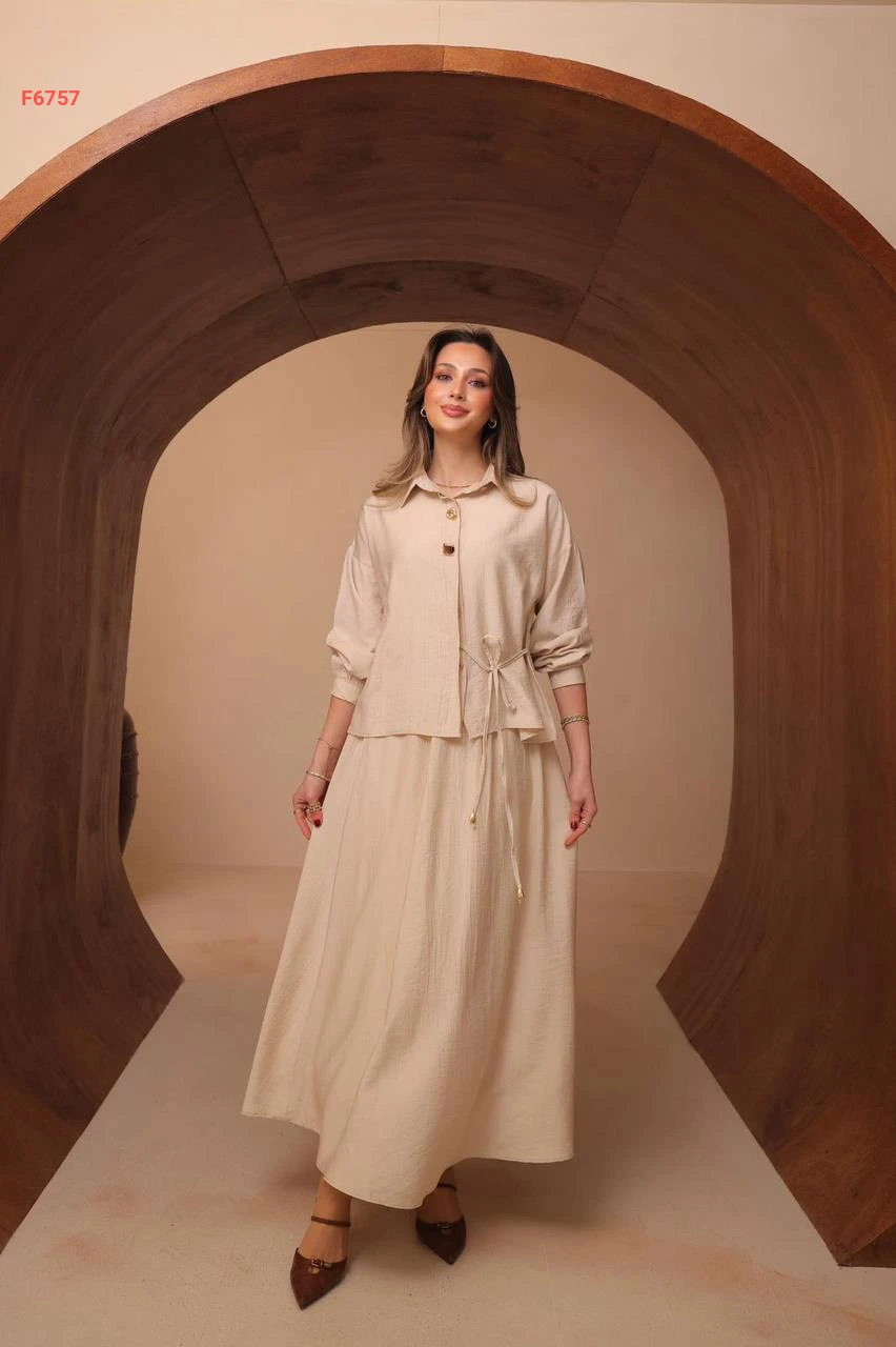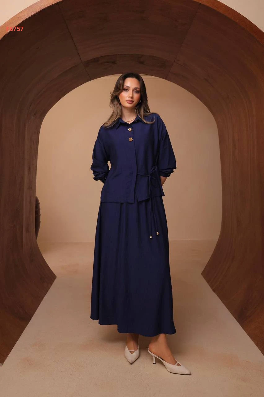 طقم تنورة طويل مع قميص