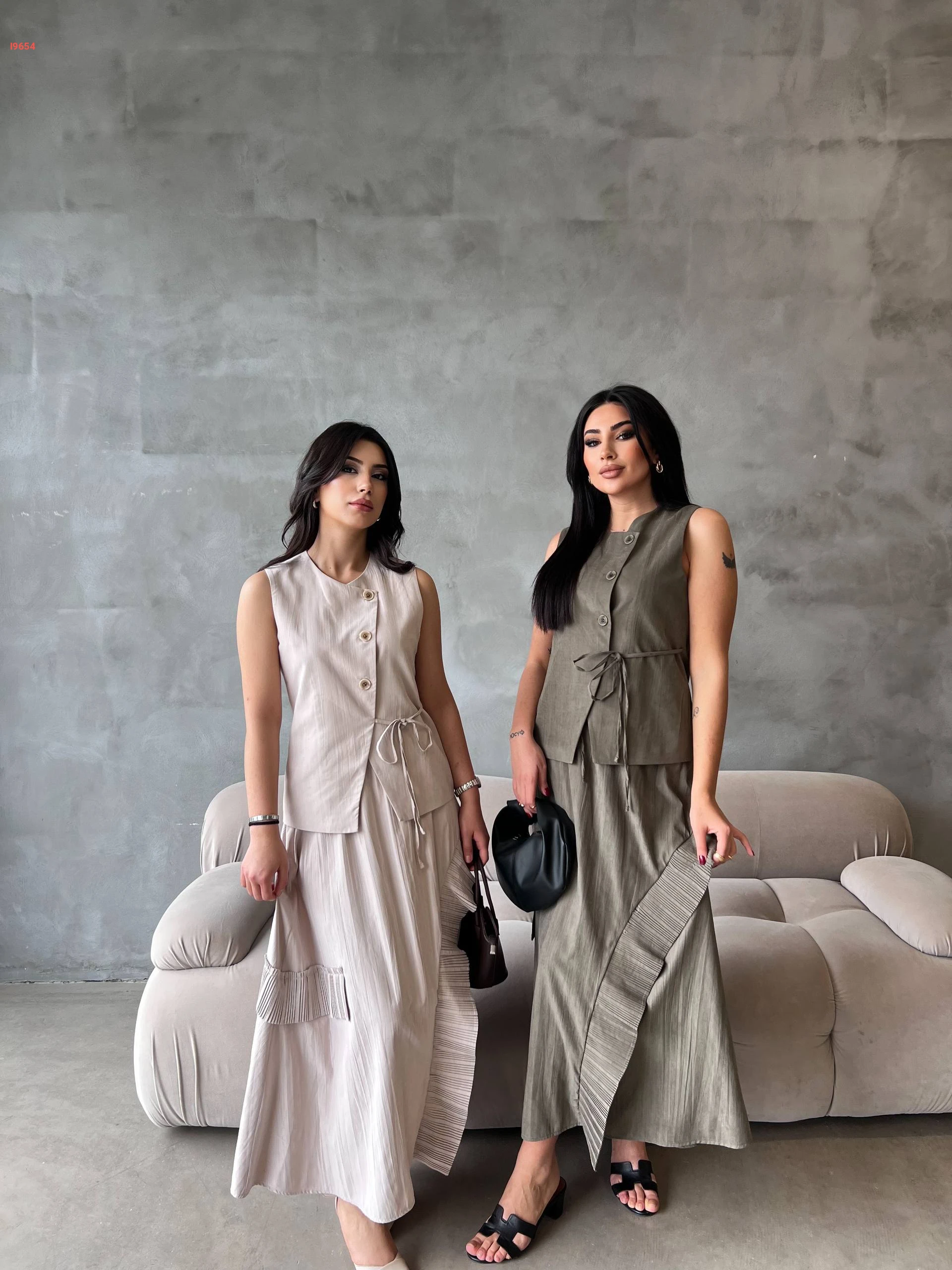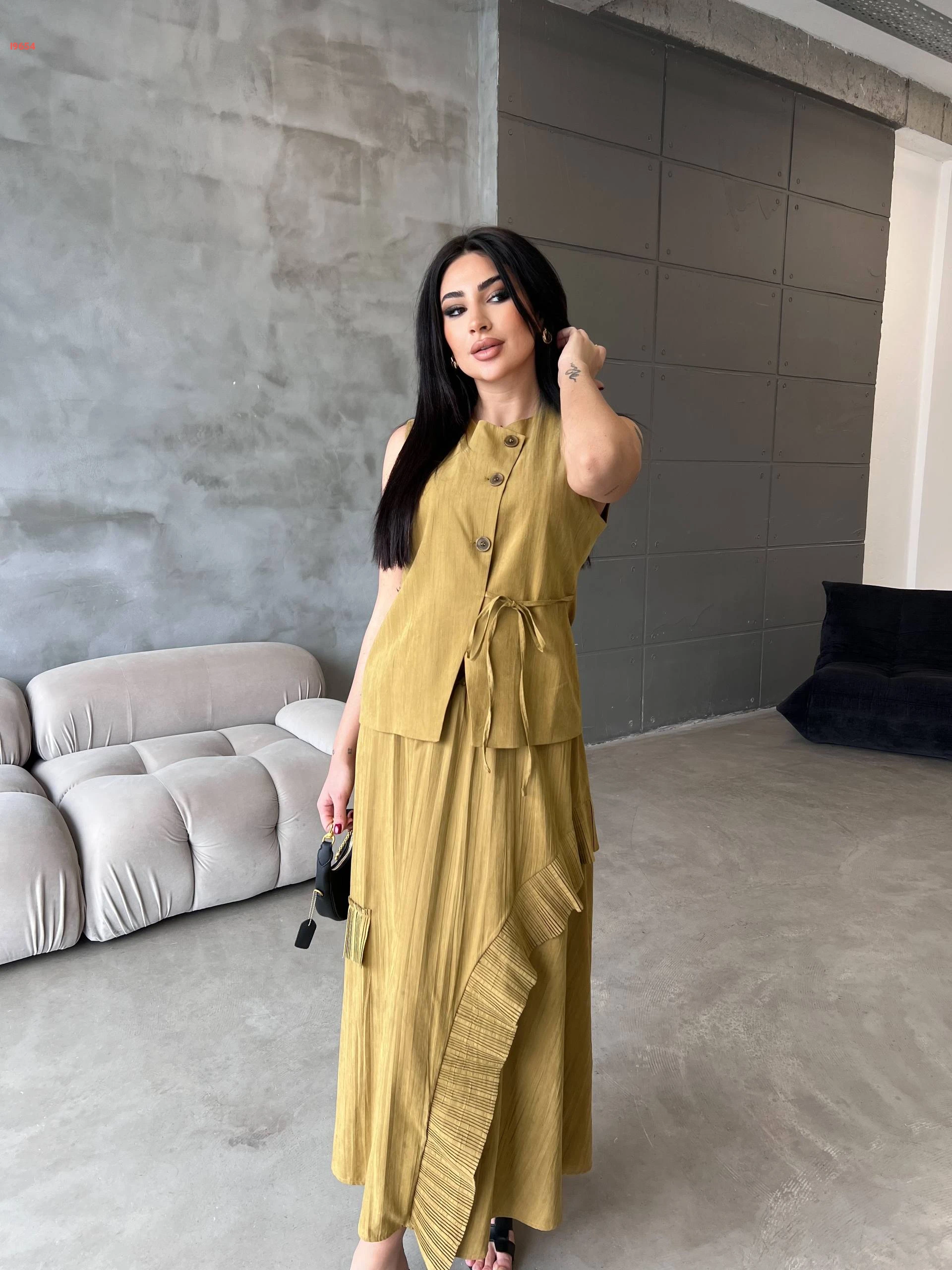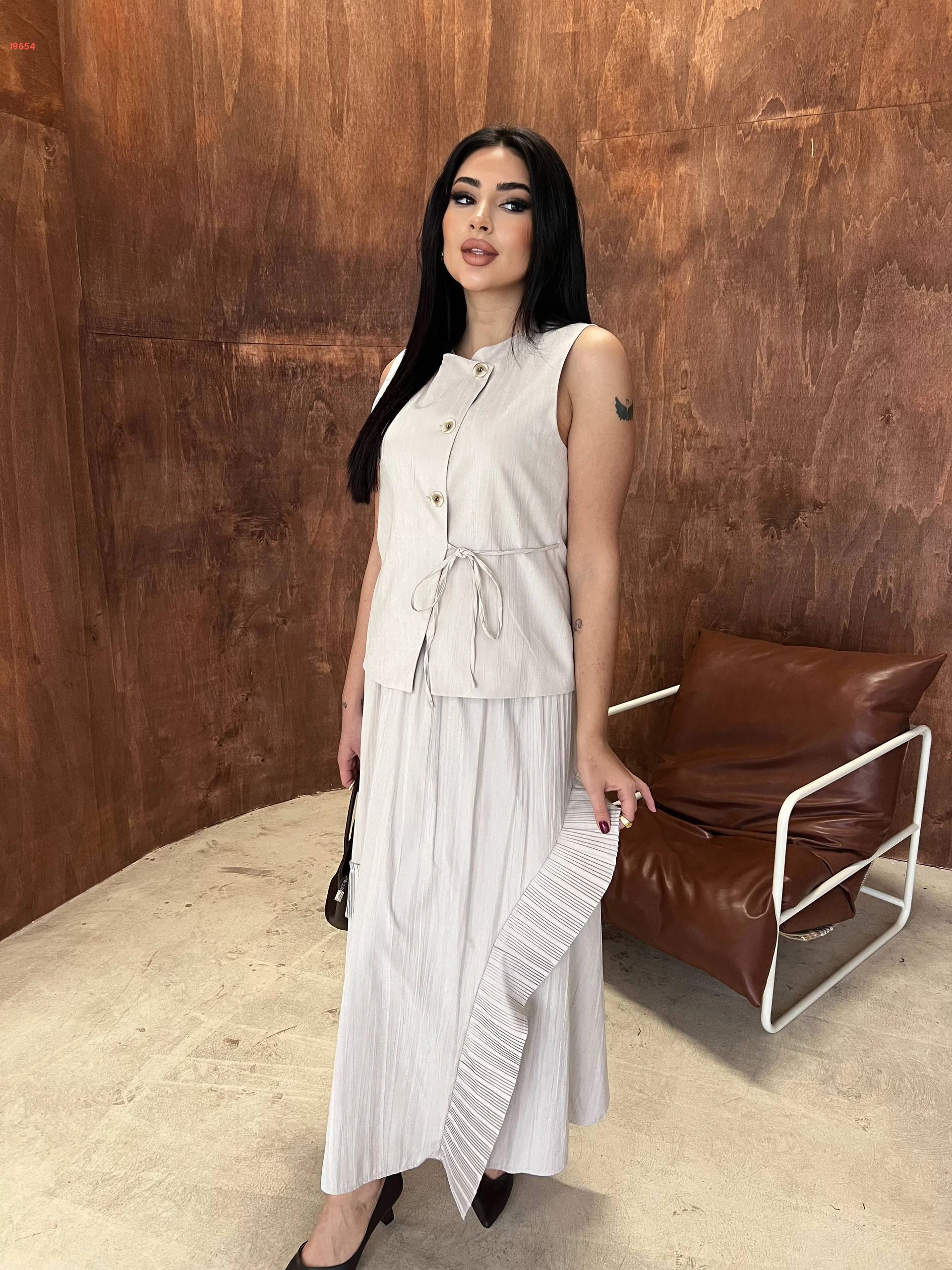 طقم تنورة طويل مع يلك بربطة جانبية