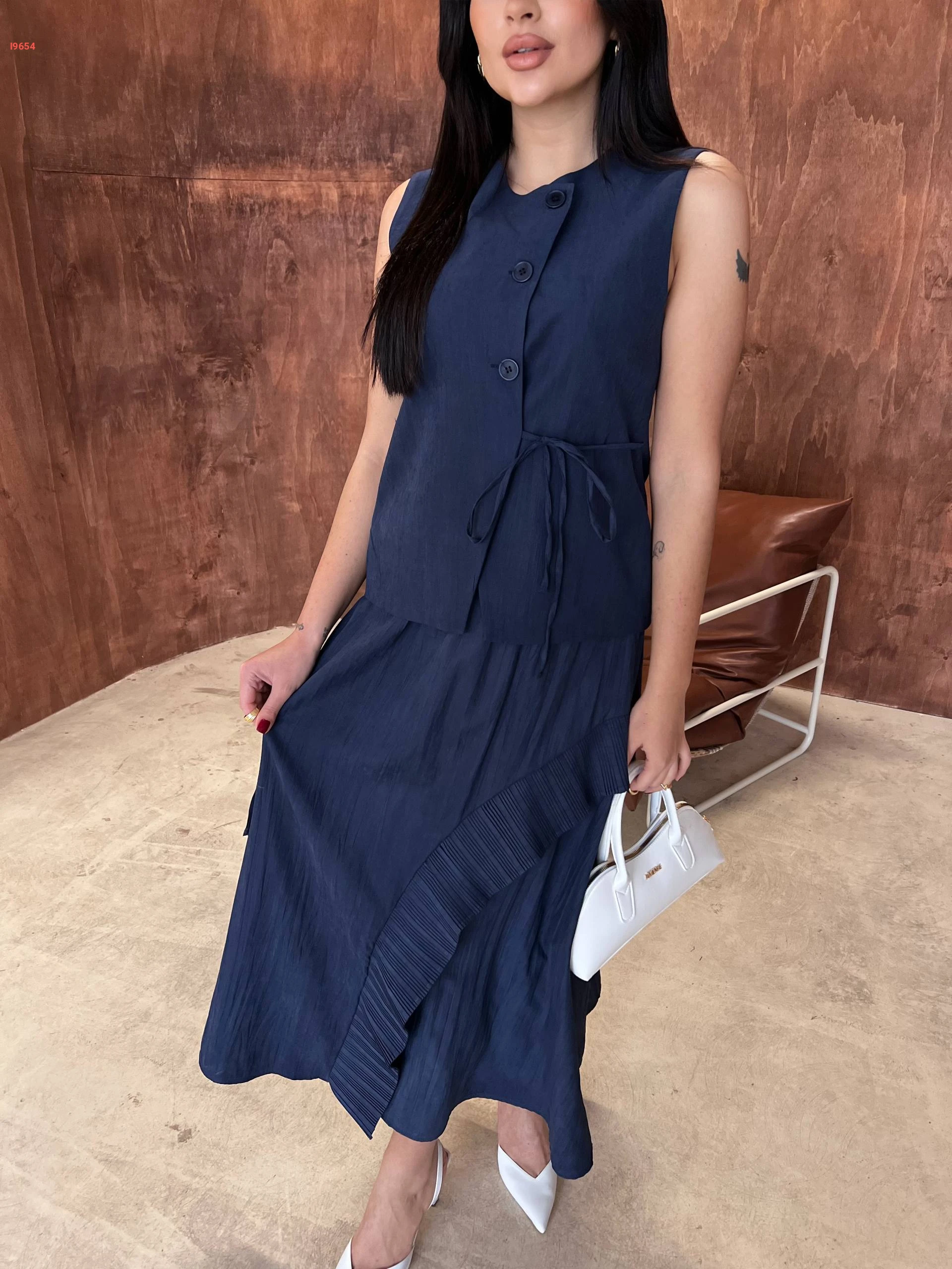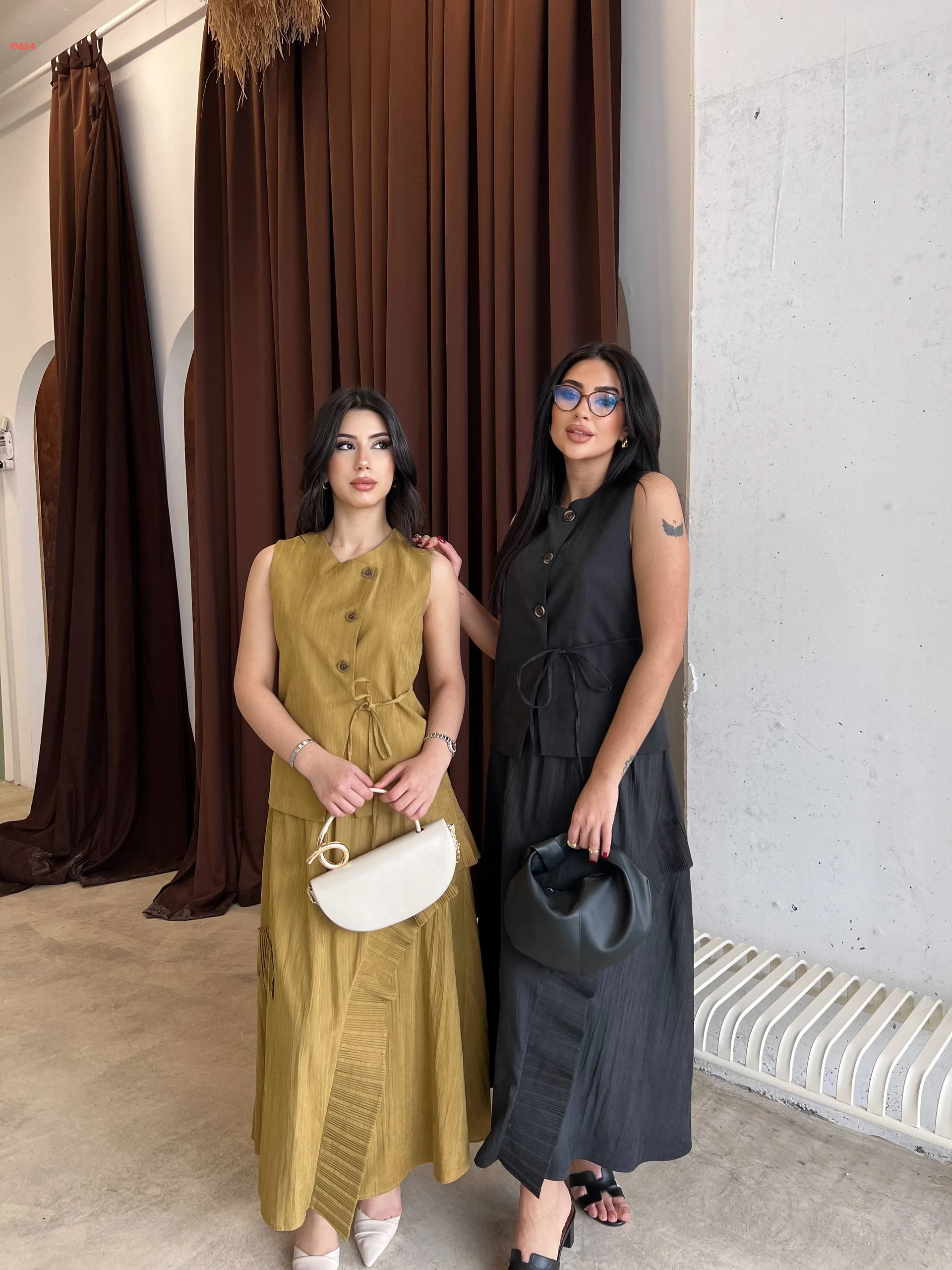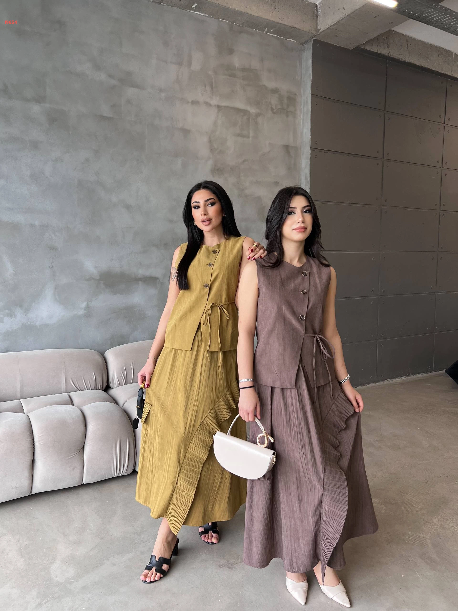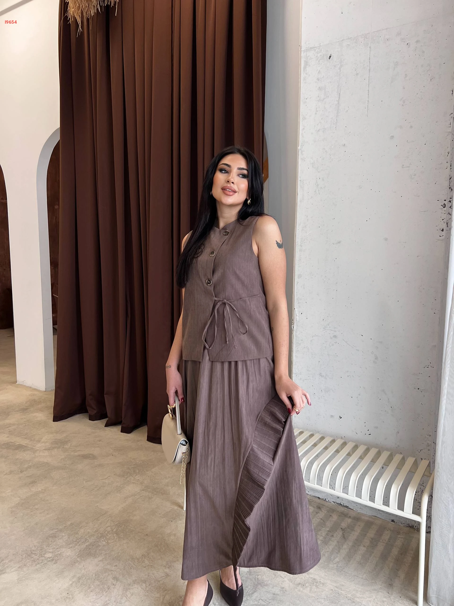 طقم تنورة طويل مع يلك بربطة جانبية