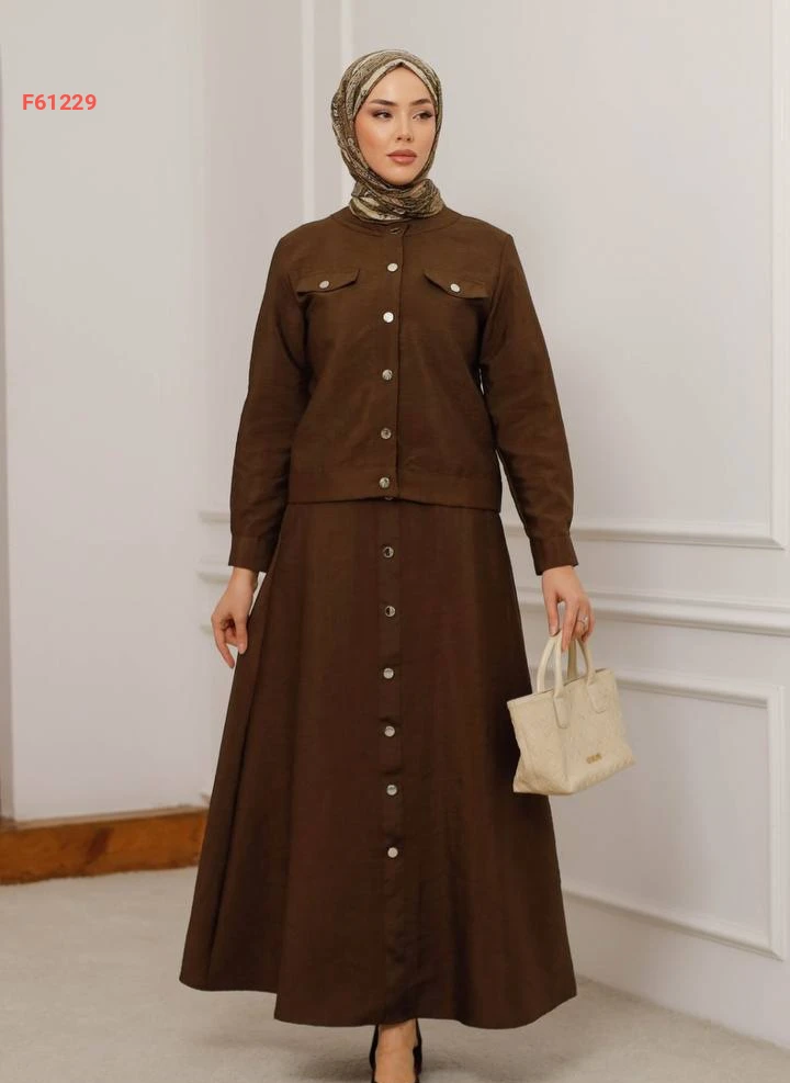 طقم تنورة طويل بأزرار