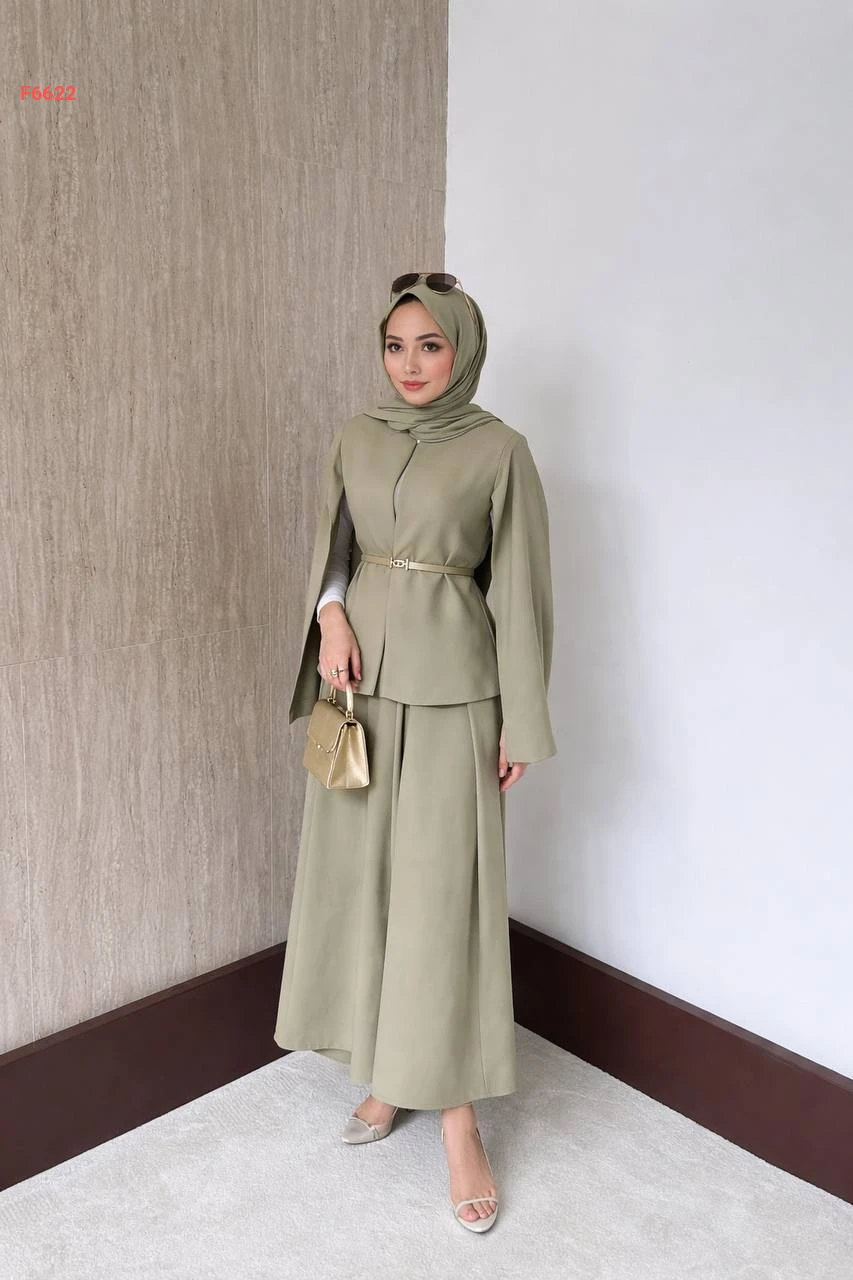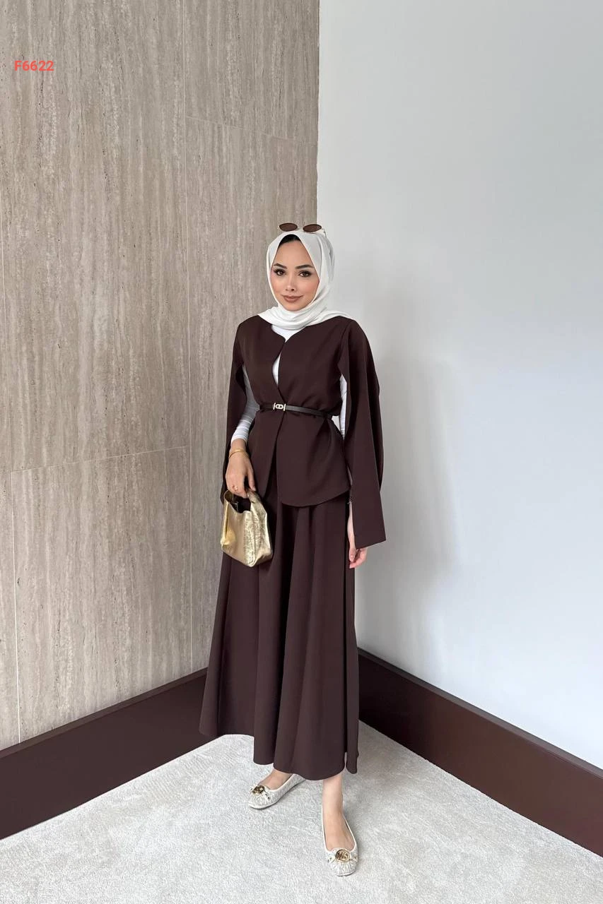 طقم تنورة طويلة مع جاكيت