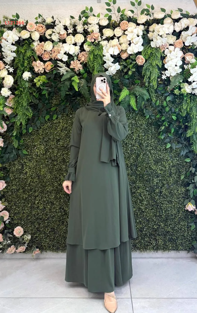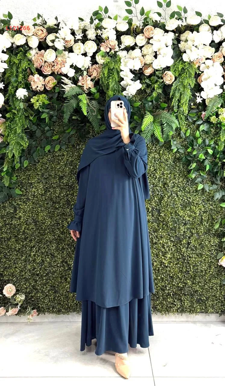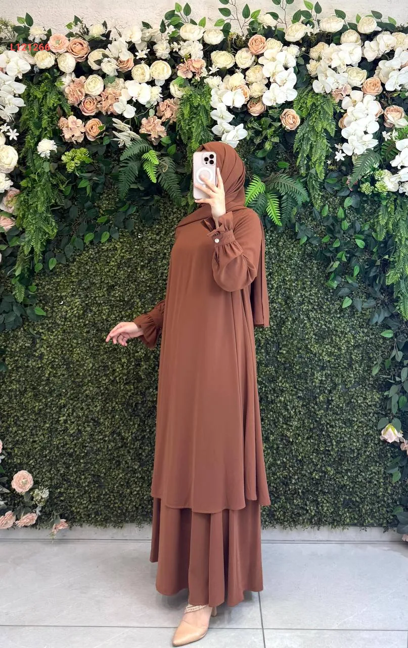 طقم ٣ قطع( تنوره وبلوزه وطرحه)