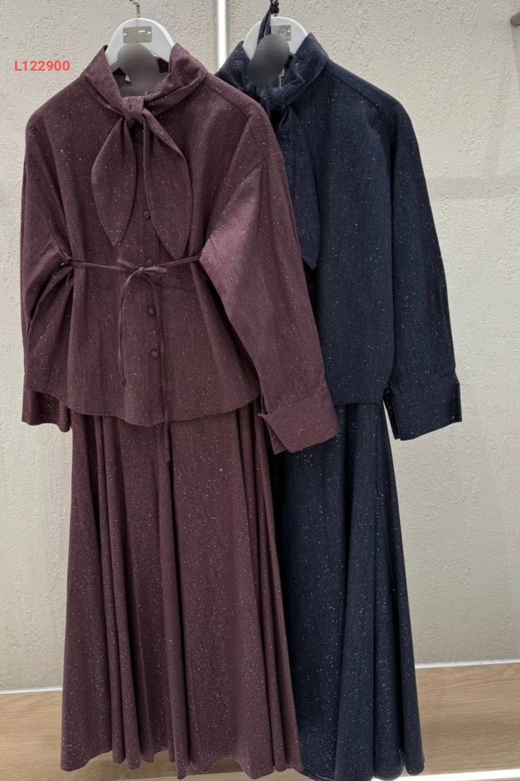 طقم تنورة طويل لميع وقميص بفولار