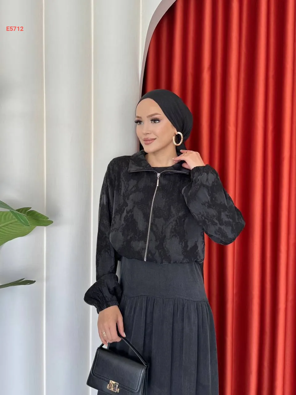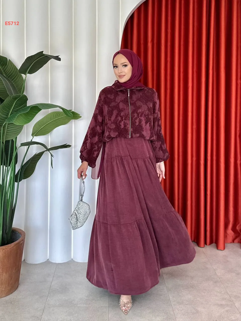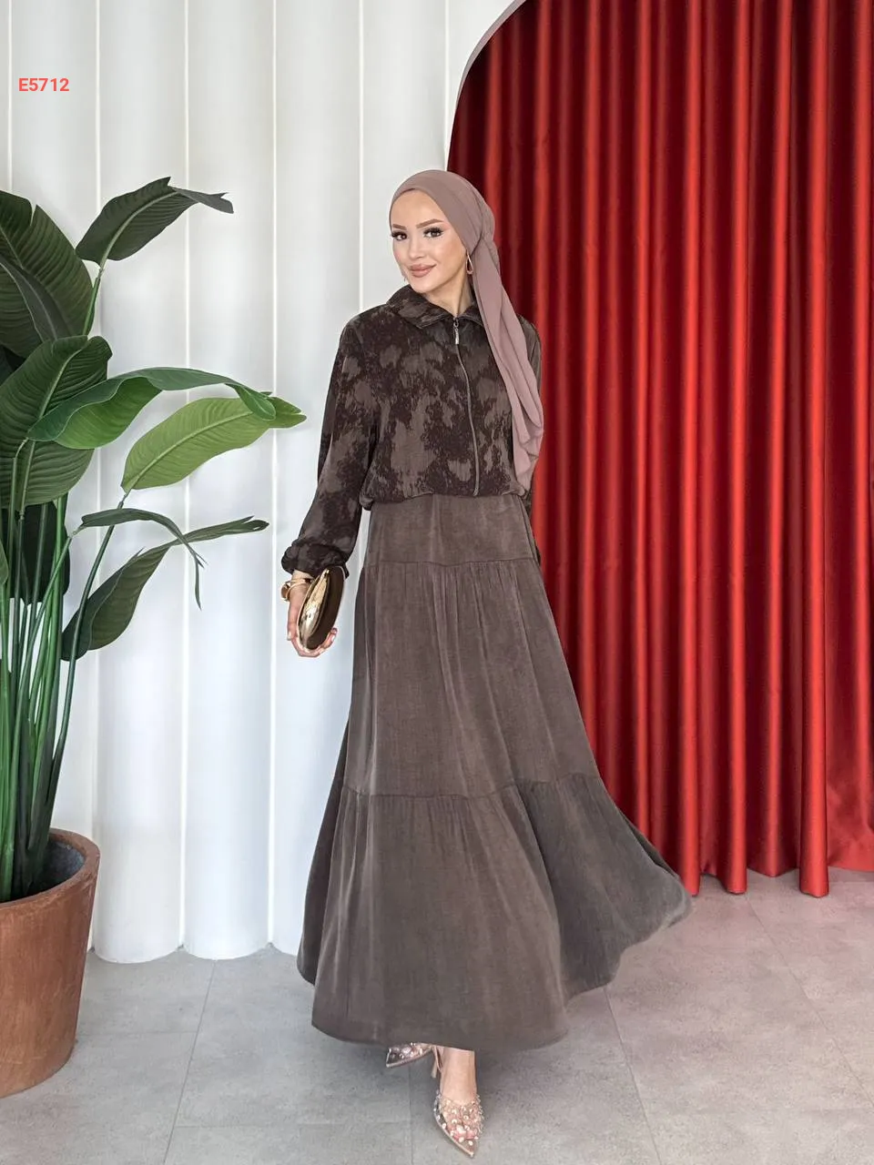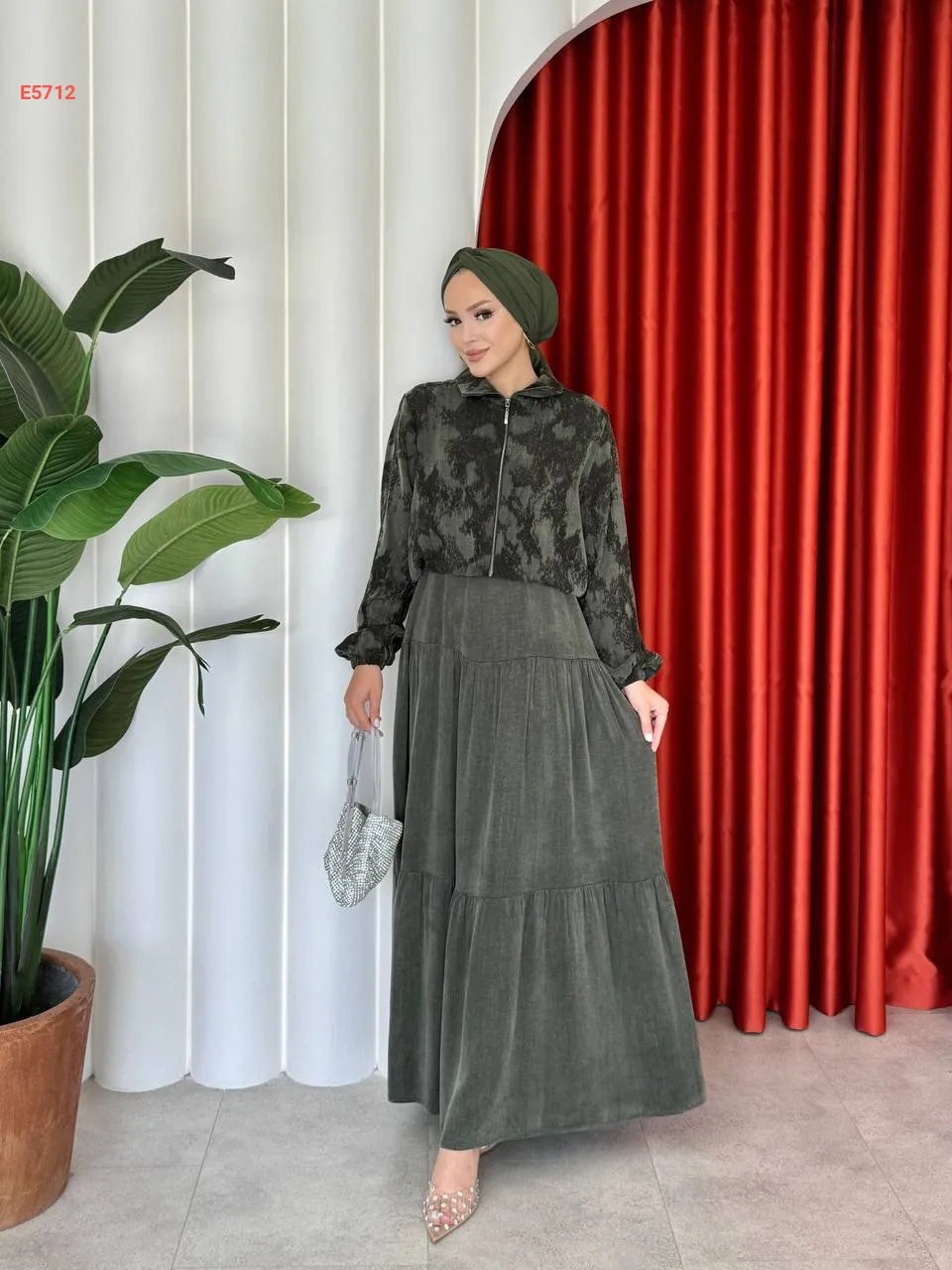 طقم تنورة طويل مع جاكيت بسحاب