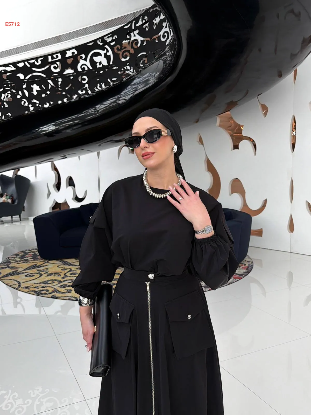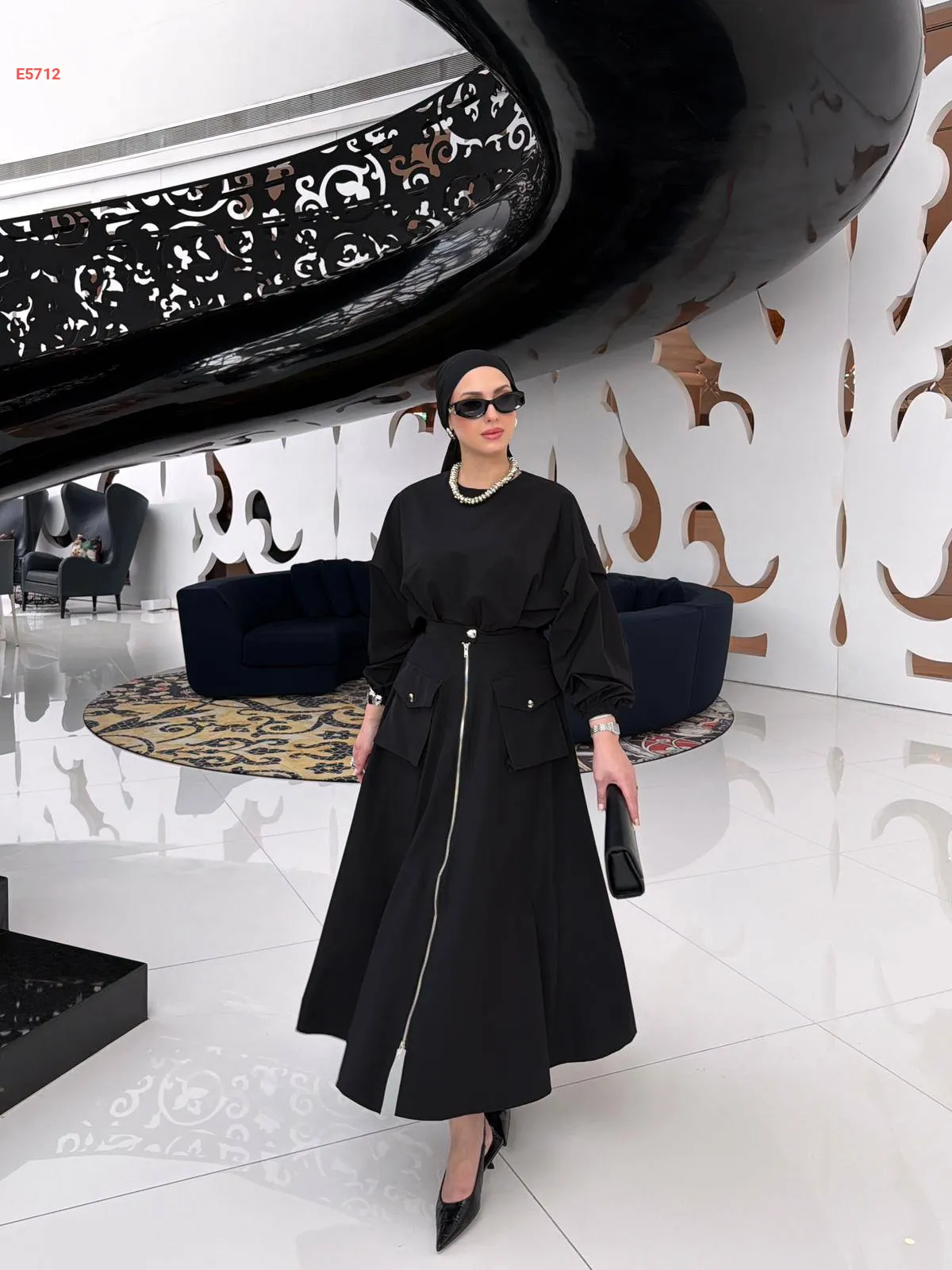 طقم تنورة طويلة بسحاب مع بلوزة