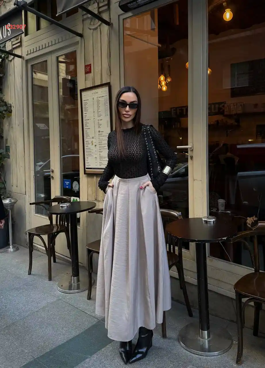 تنورة طويلة مع حزام