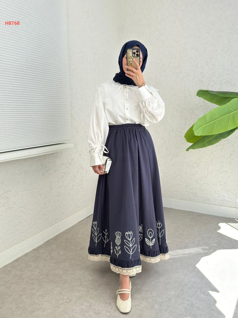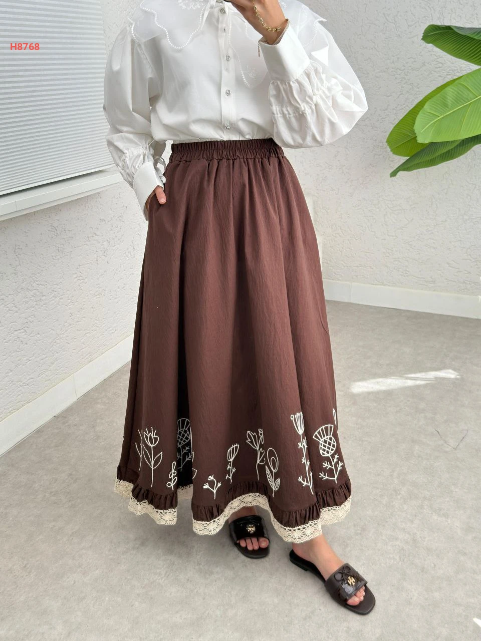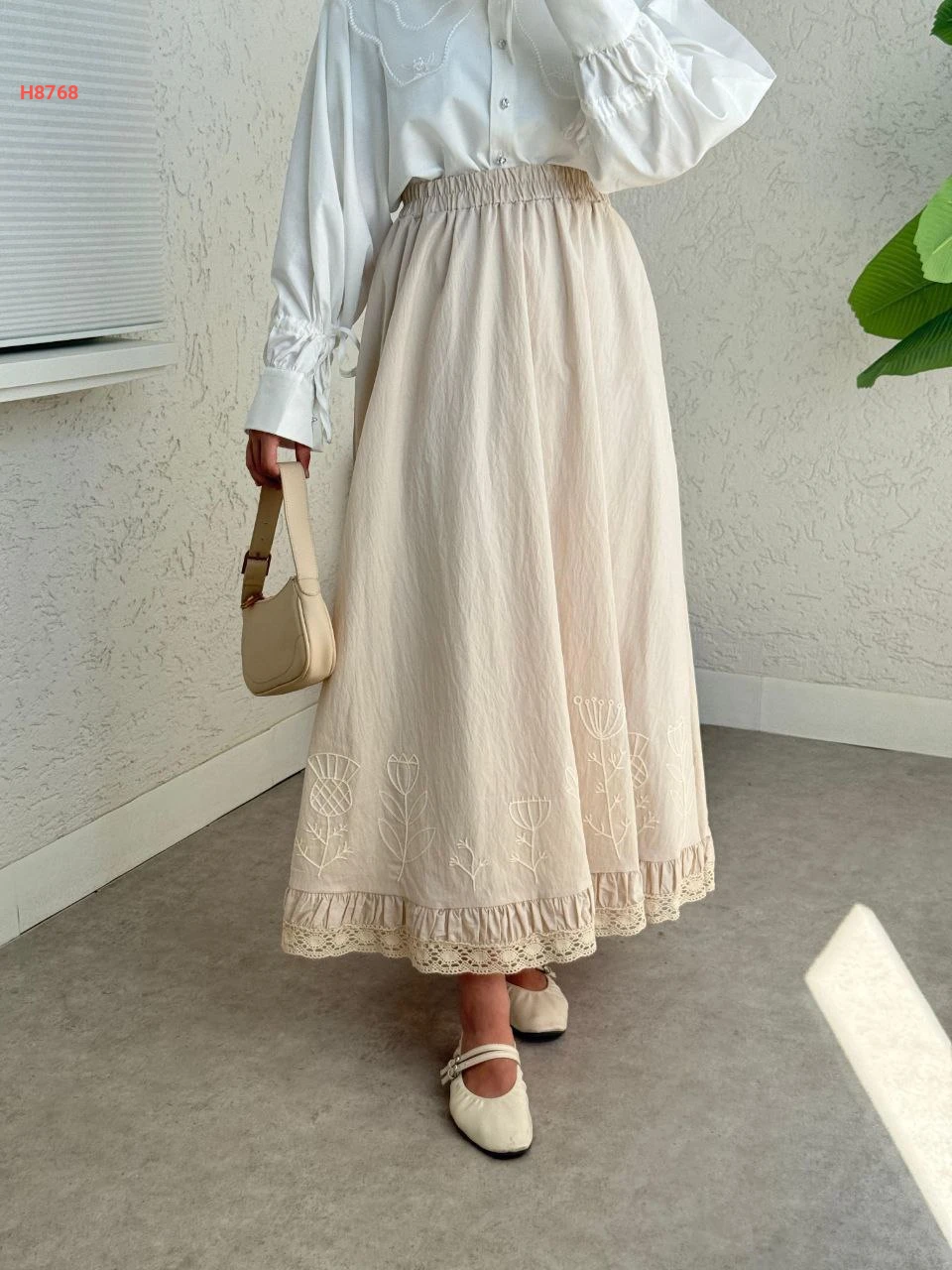 تنورة طويل بتطريز ناعم من الاسفل مع خصر مطاطي