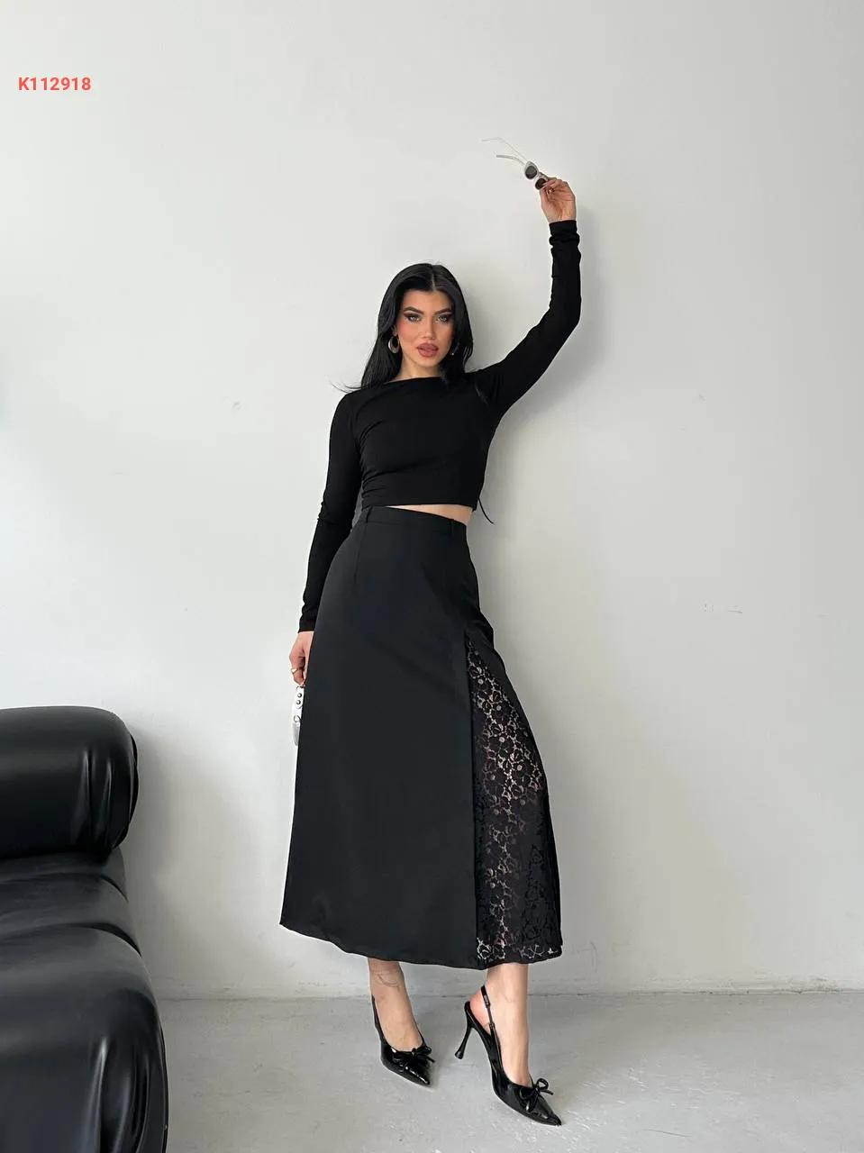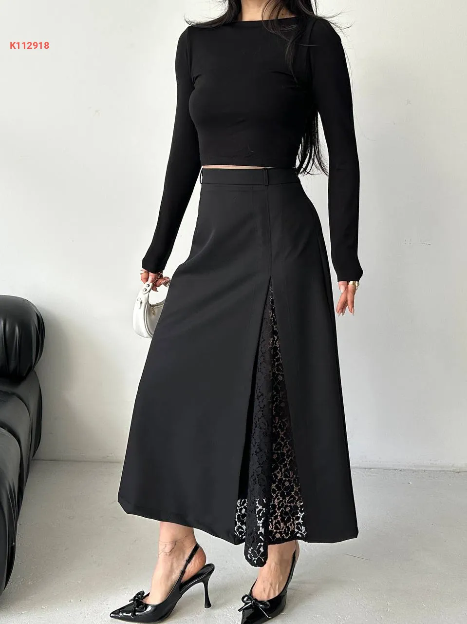 تنورة طويلة بتفاصيل دانتيل