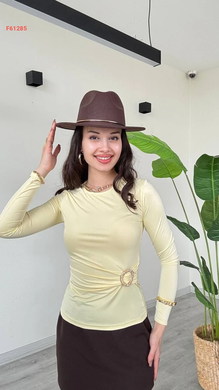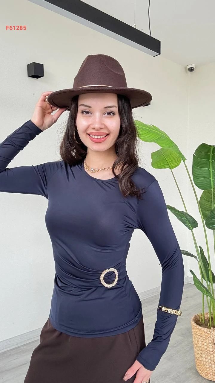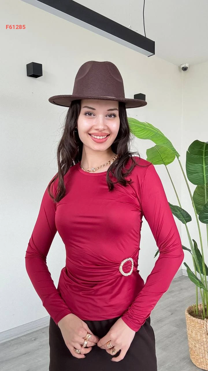 بلوزة كم طويل مجمعة بإبزيم جانبي