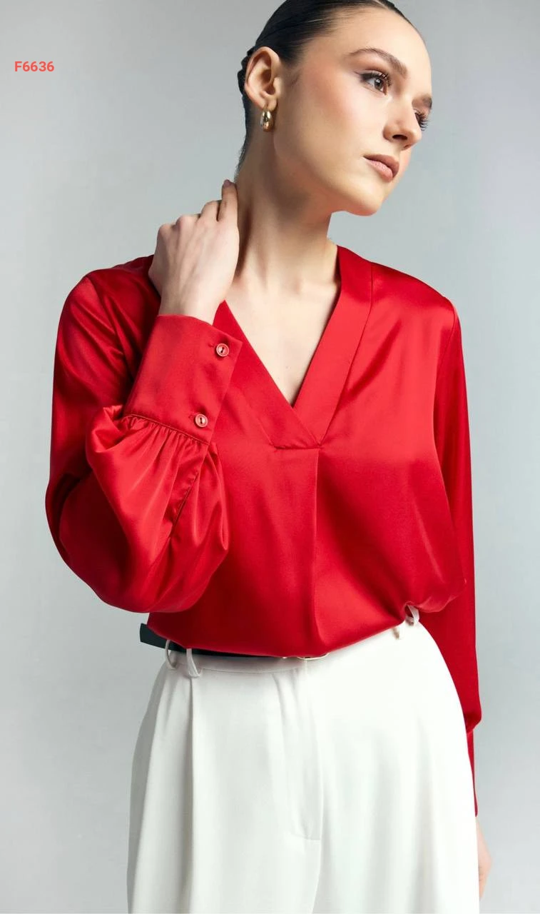 بلوزة كم طويل قبة v
