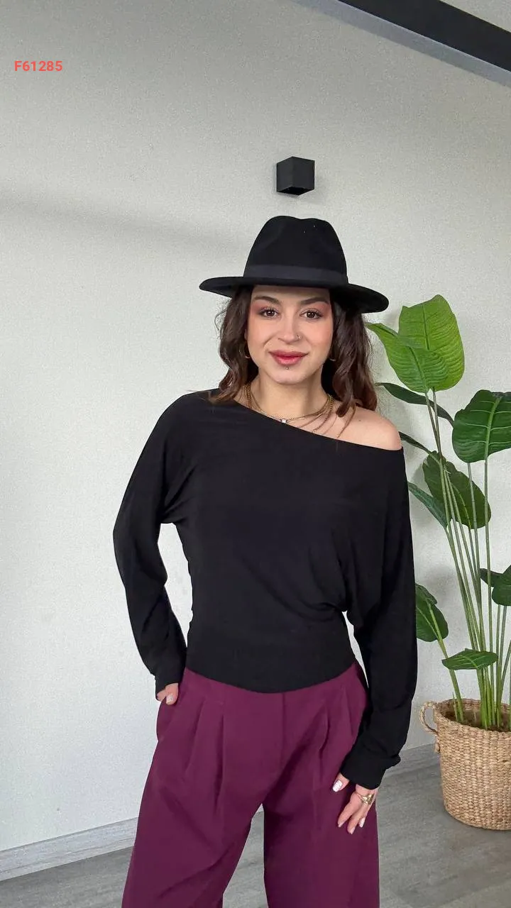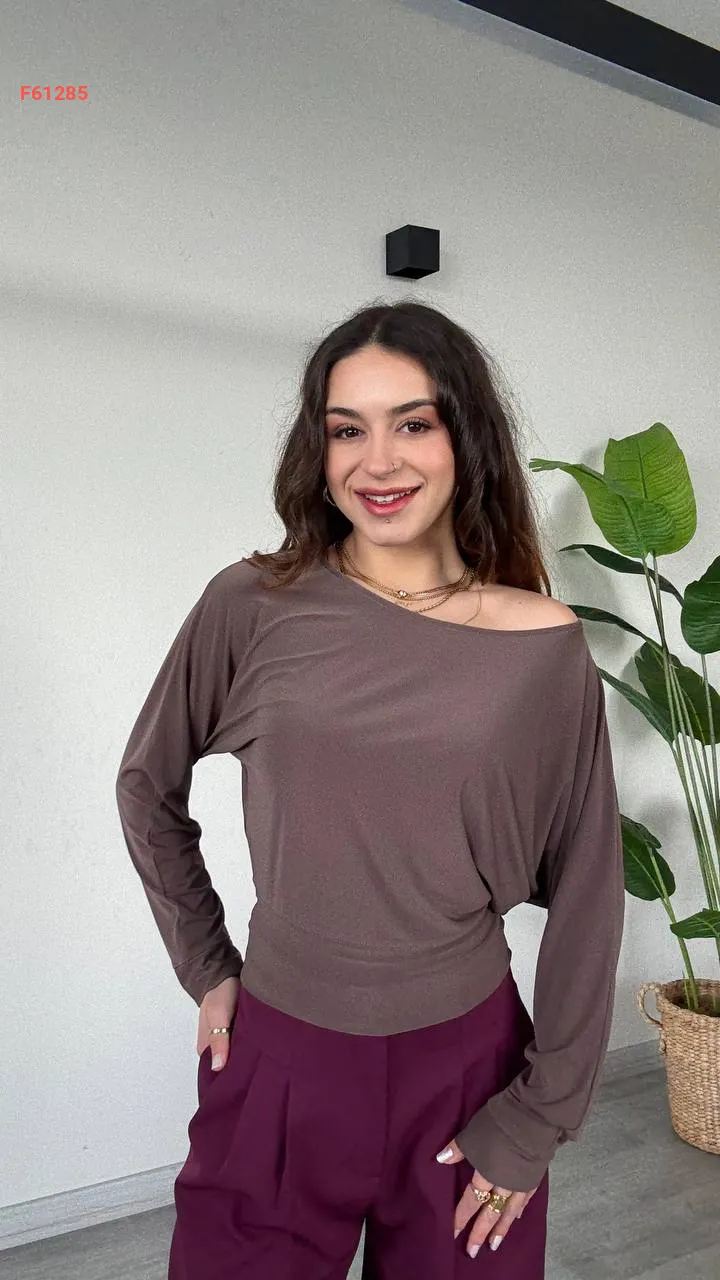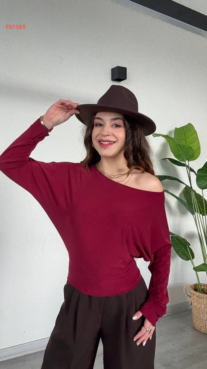 بلوزة كم طويل بكتف منسدل