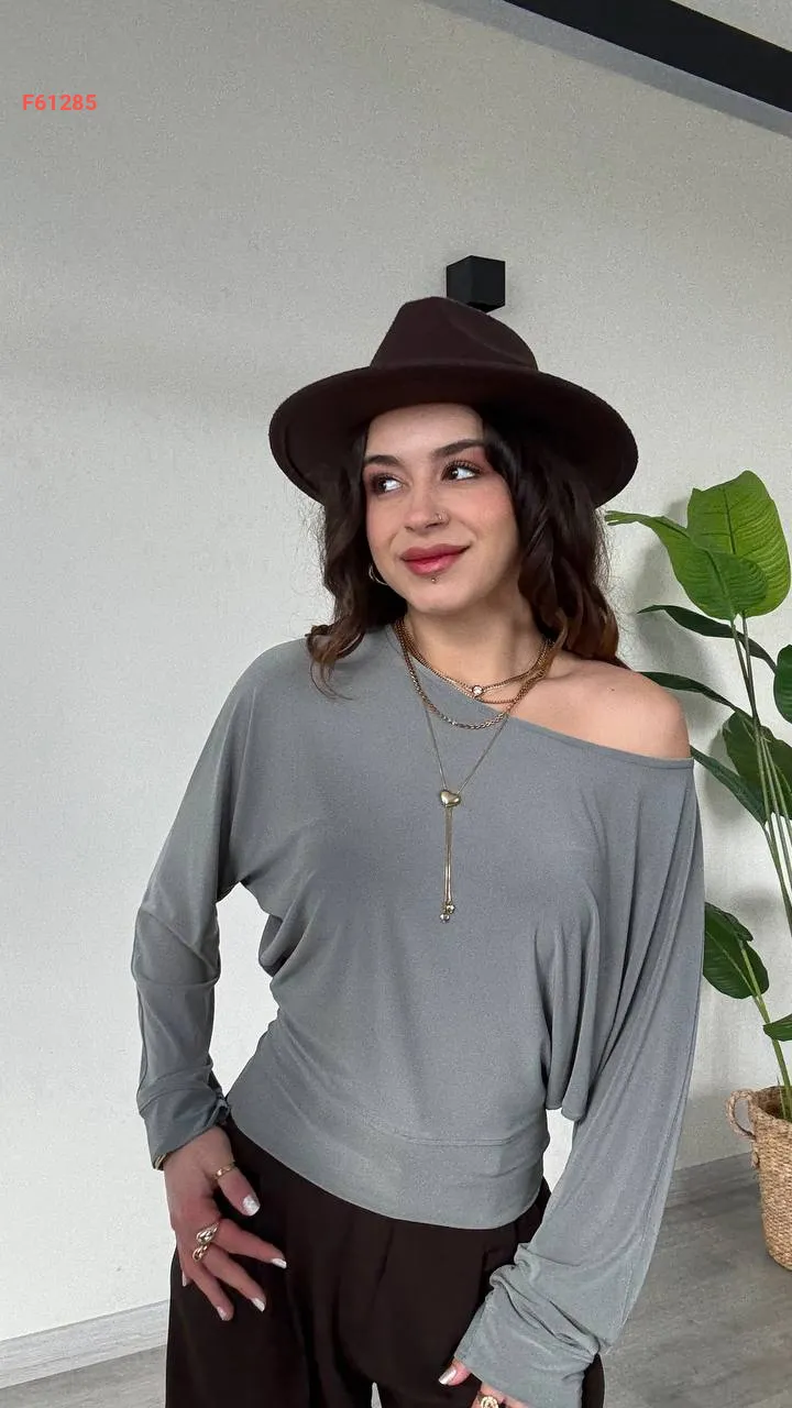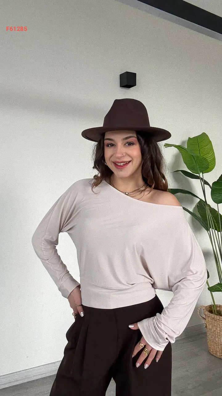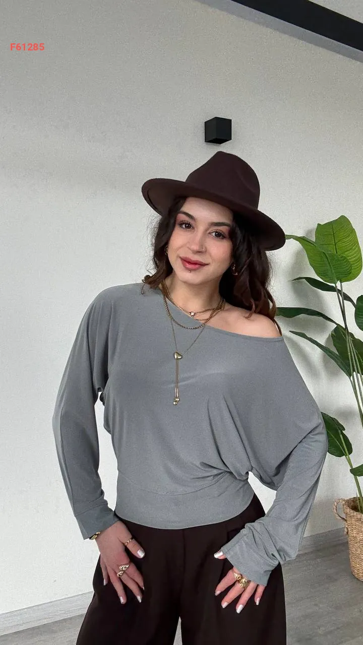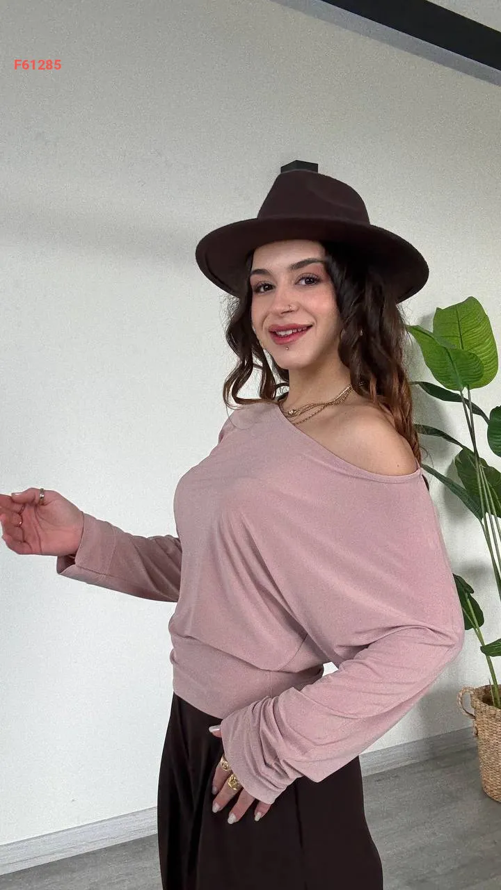 بلوزة كم طويل بكتف منسدل