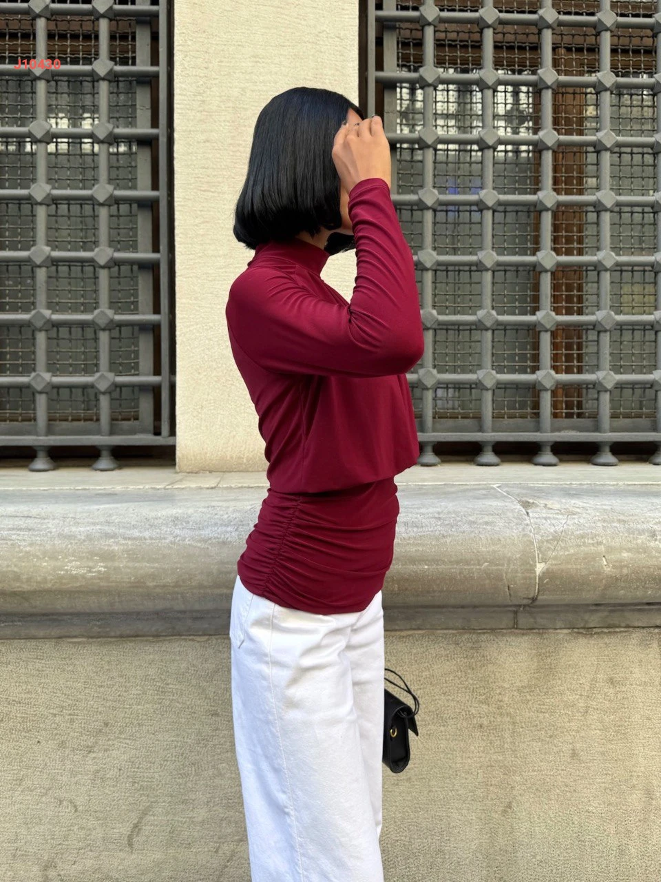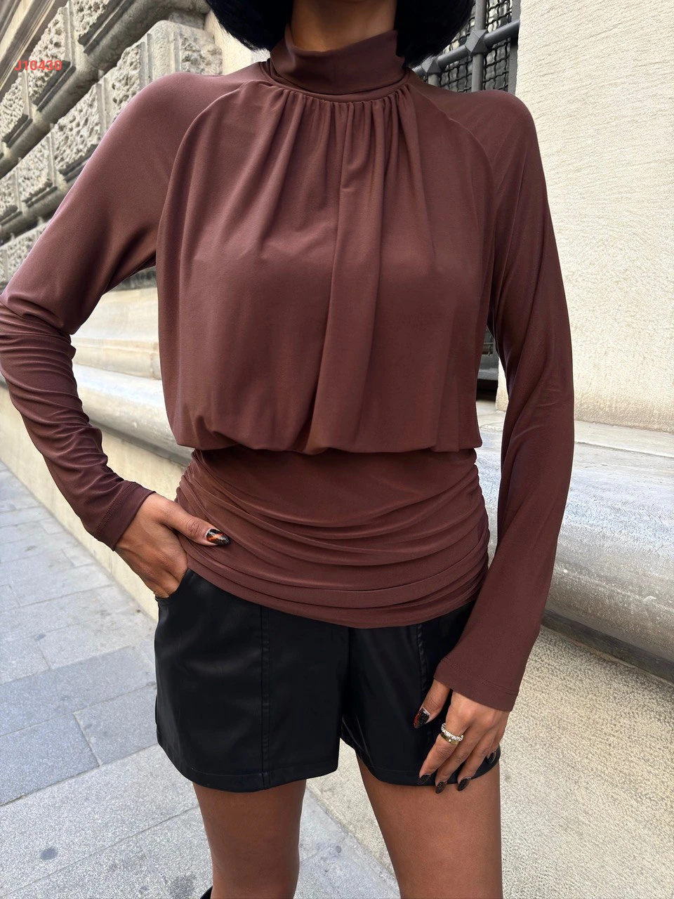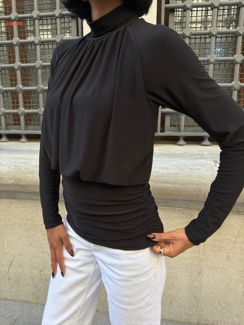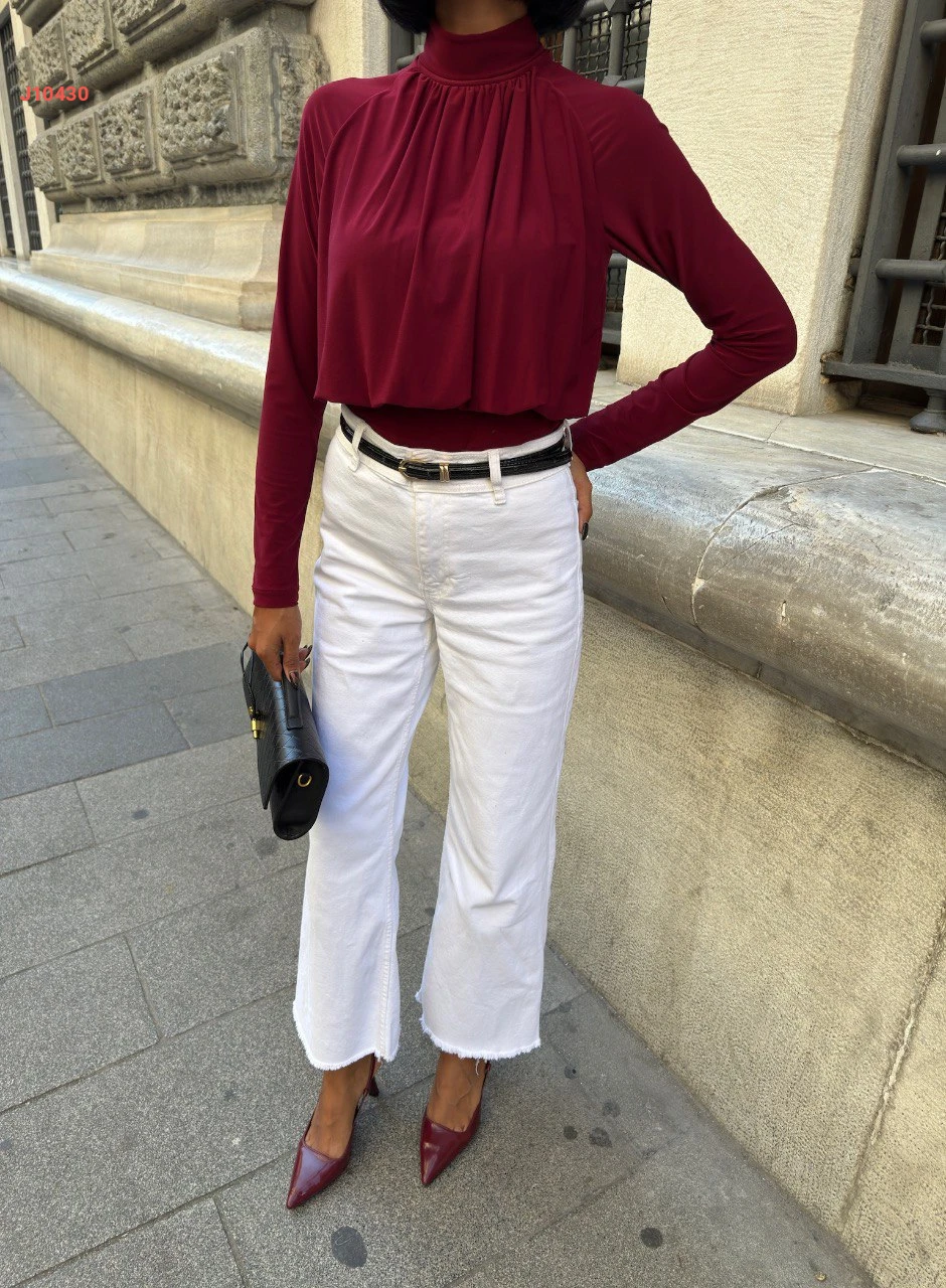 بلوزة كم طويل بتفاصيل مجمعة