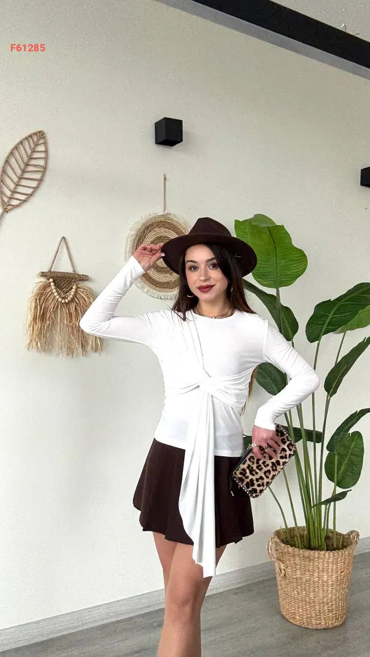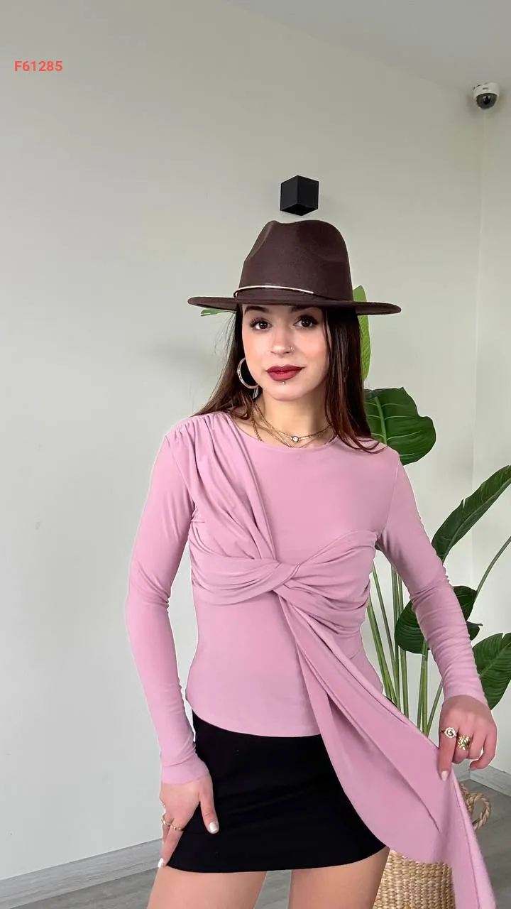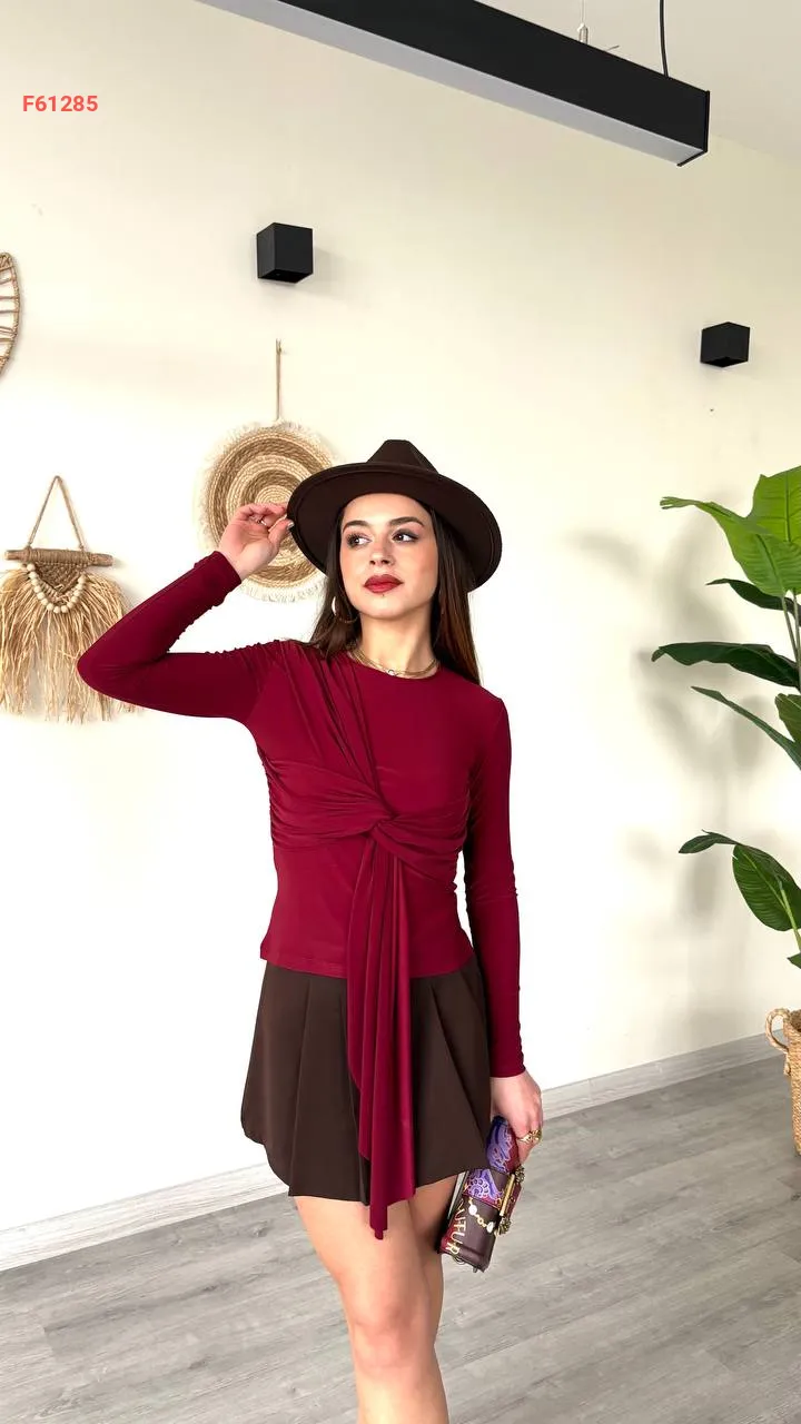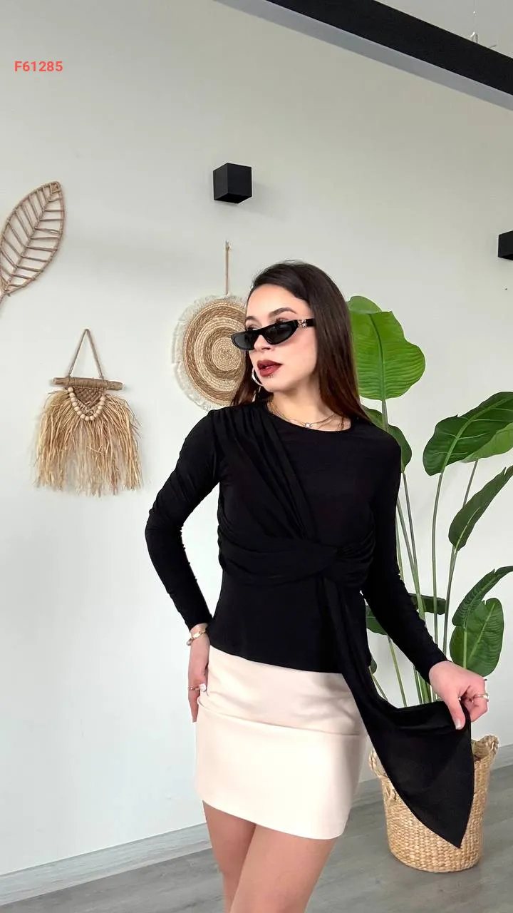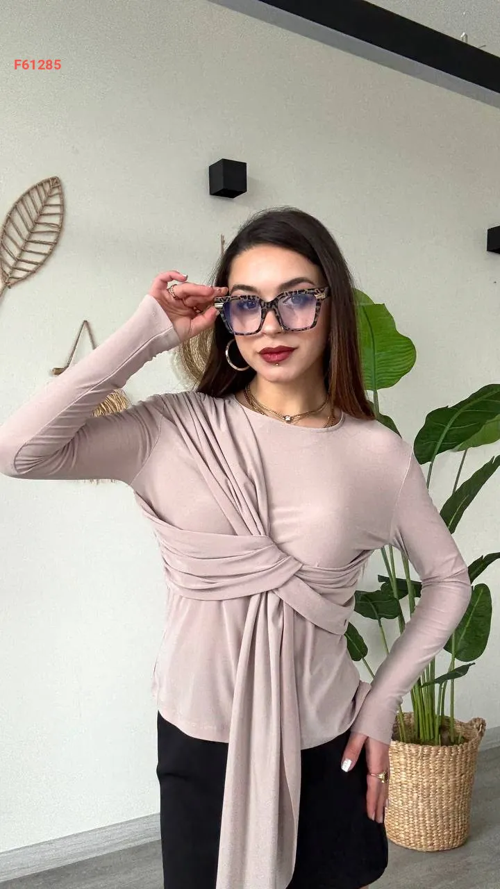 بلوزة كم طويل بربطة مجمعة