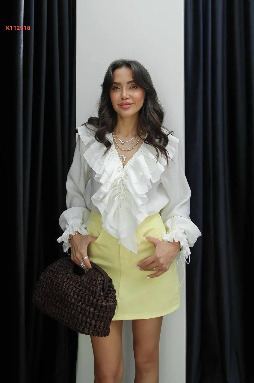 بلوزة كم طويل بتفاصيل كشكش