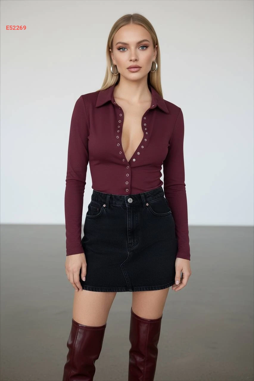 بلوزة كم طويل بأزرار كبس