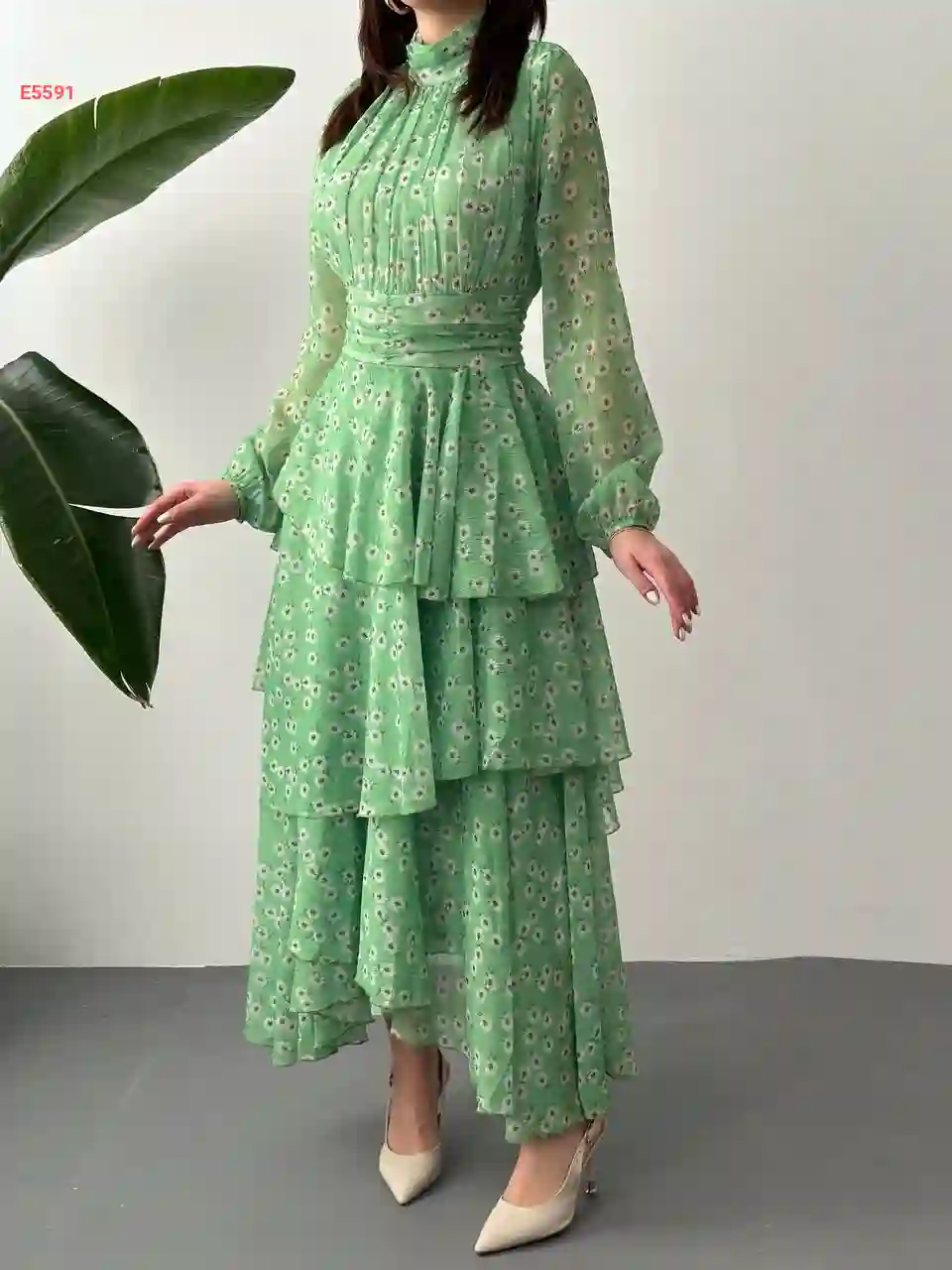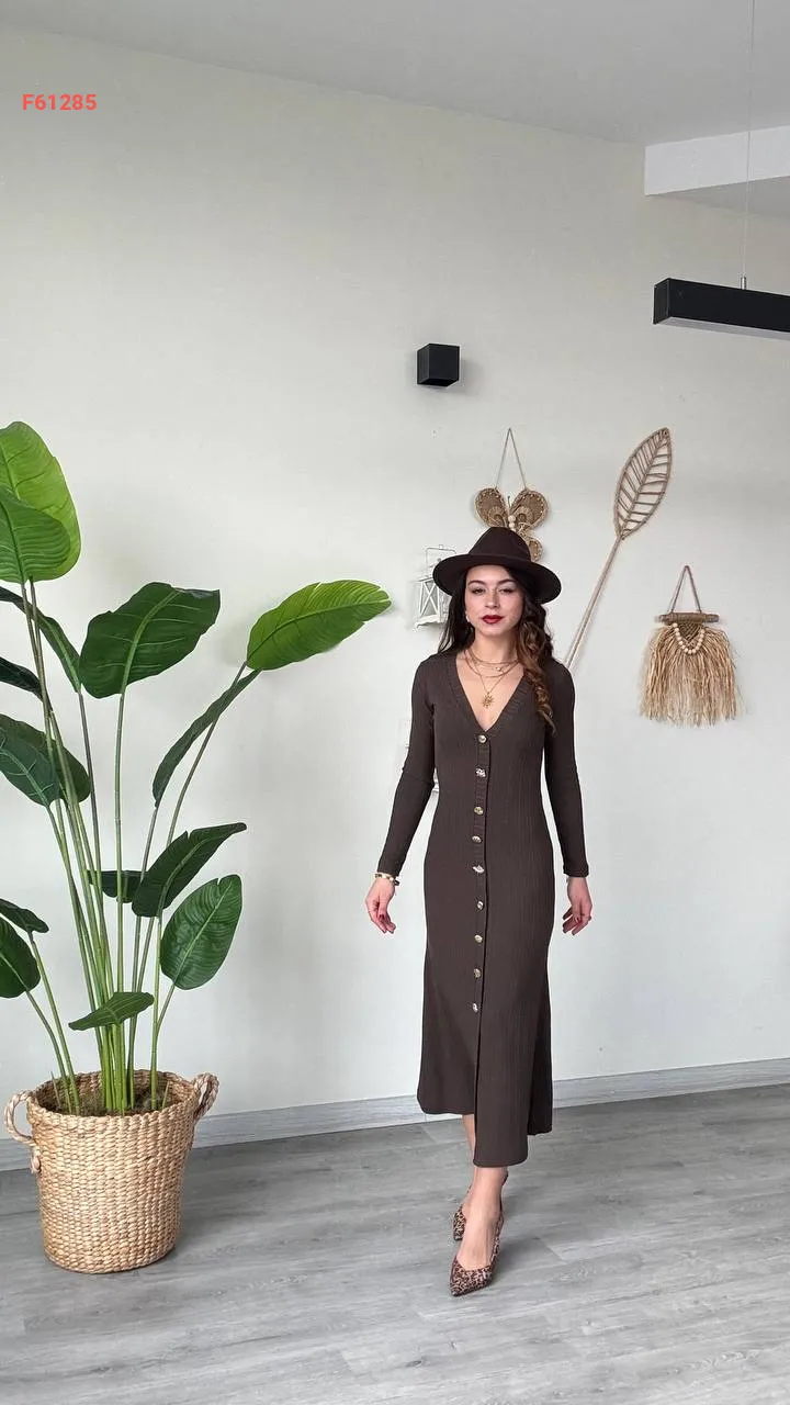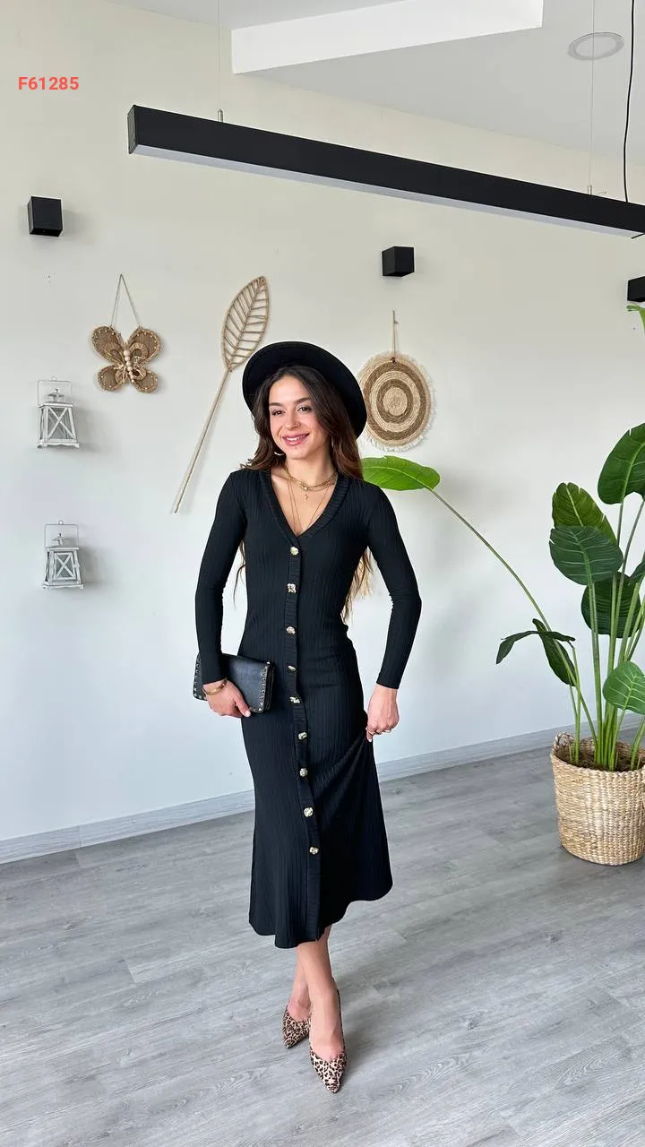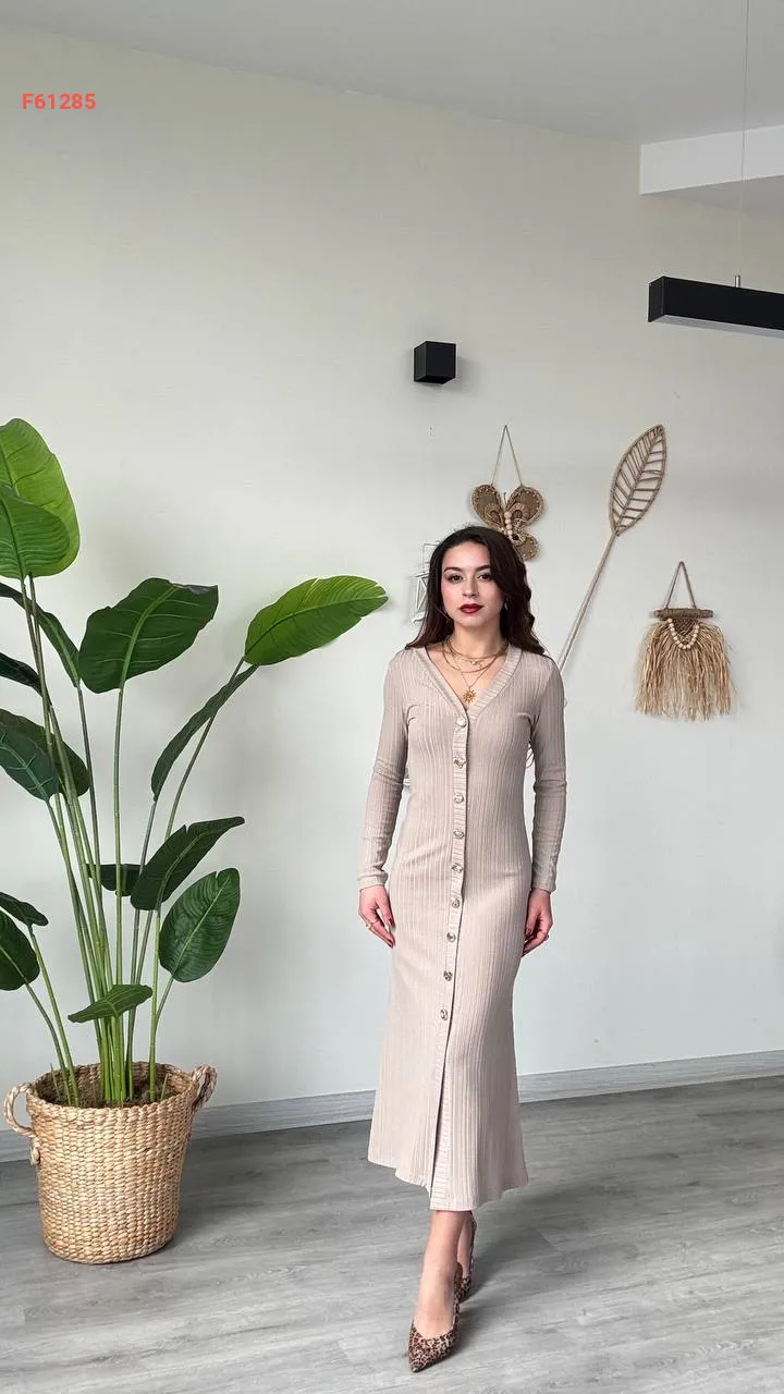 فستان كم طويل بأزرار