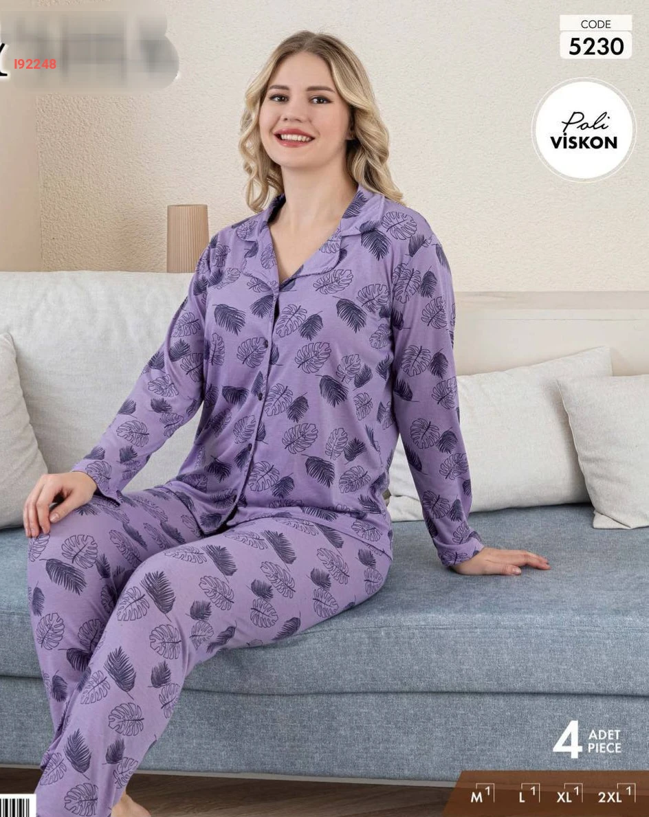بيجامة كم طويل قطن بأزرار