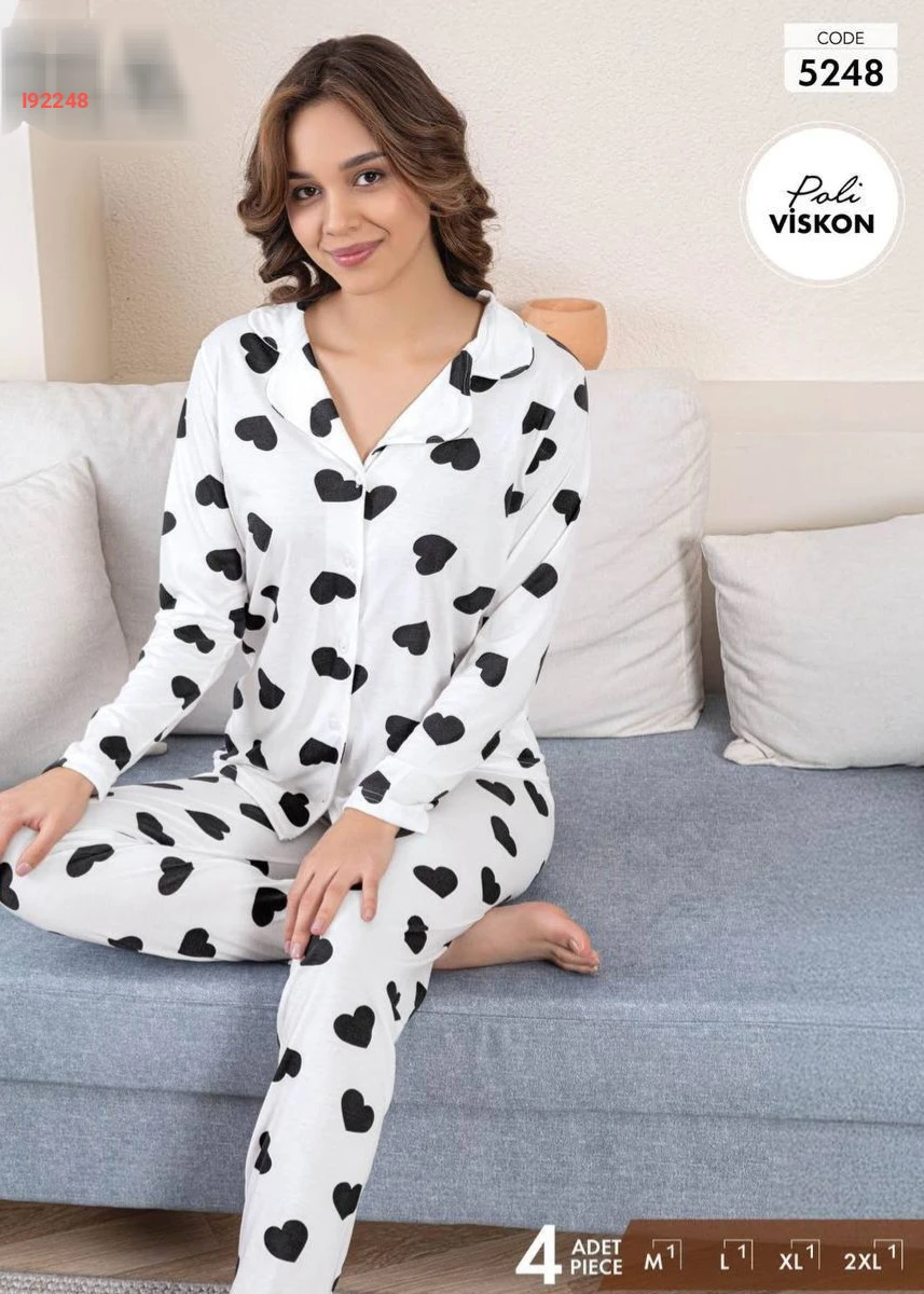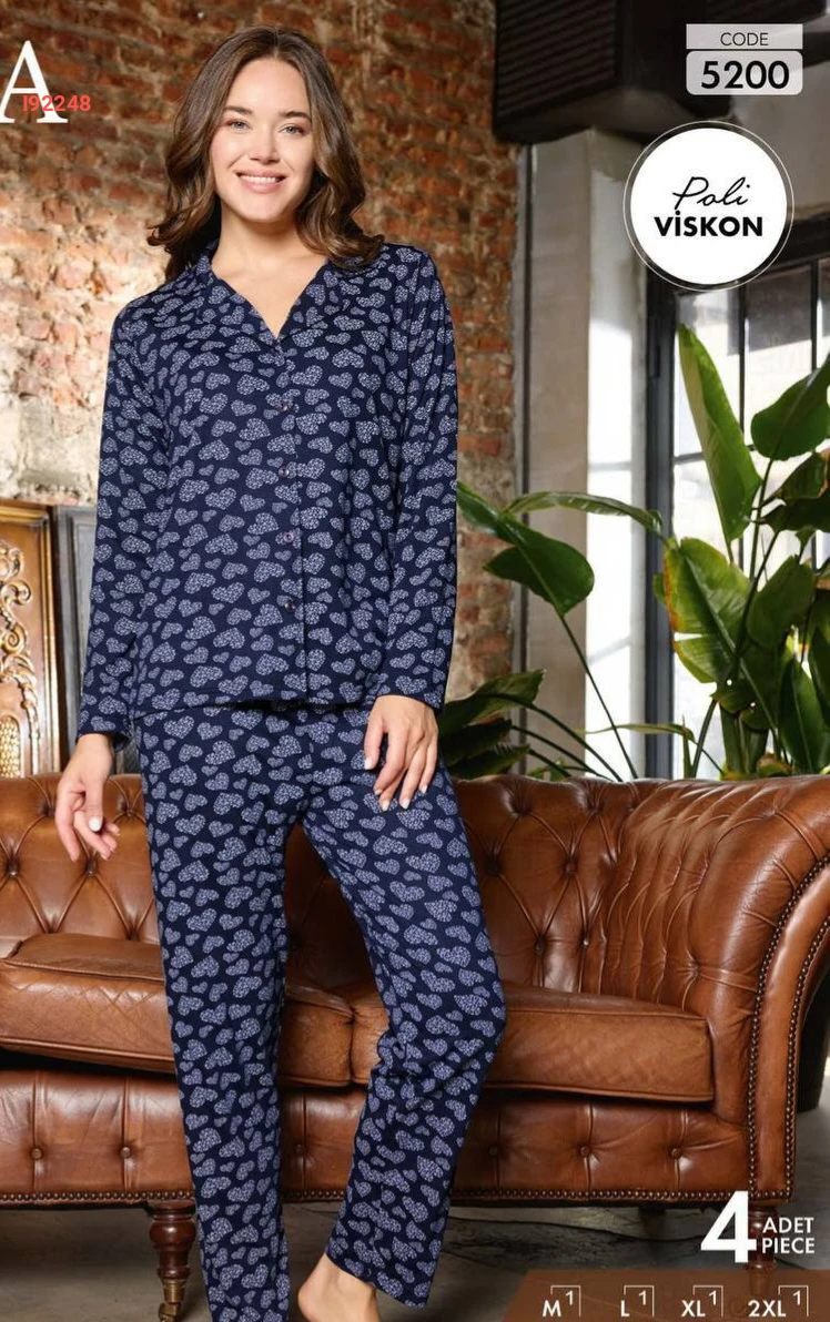 بيجامة كم طويل قطن بأزرار