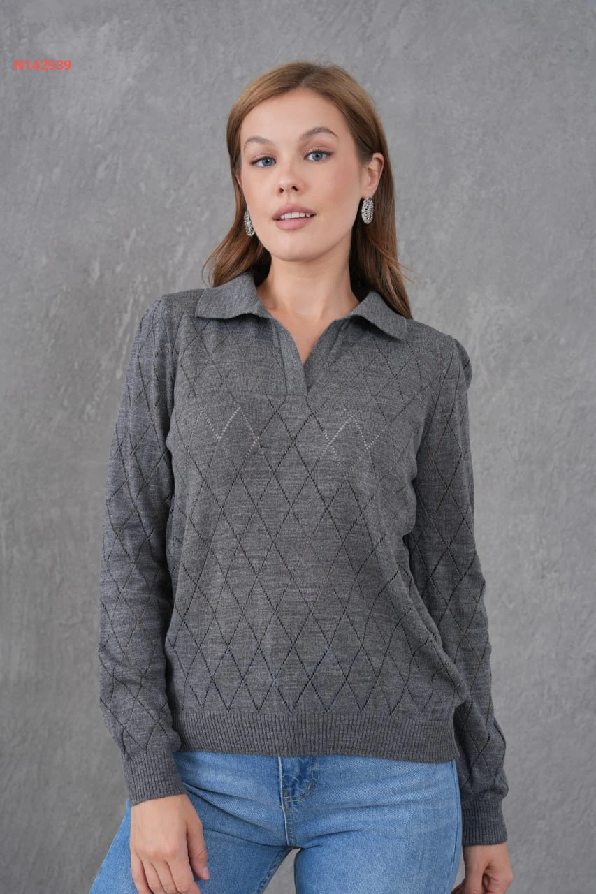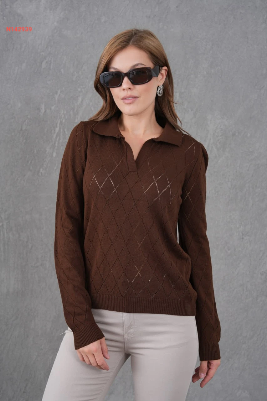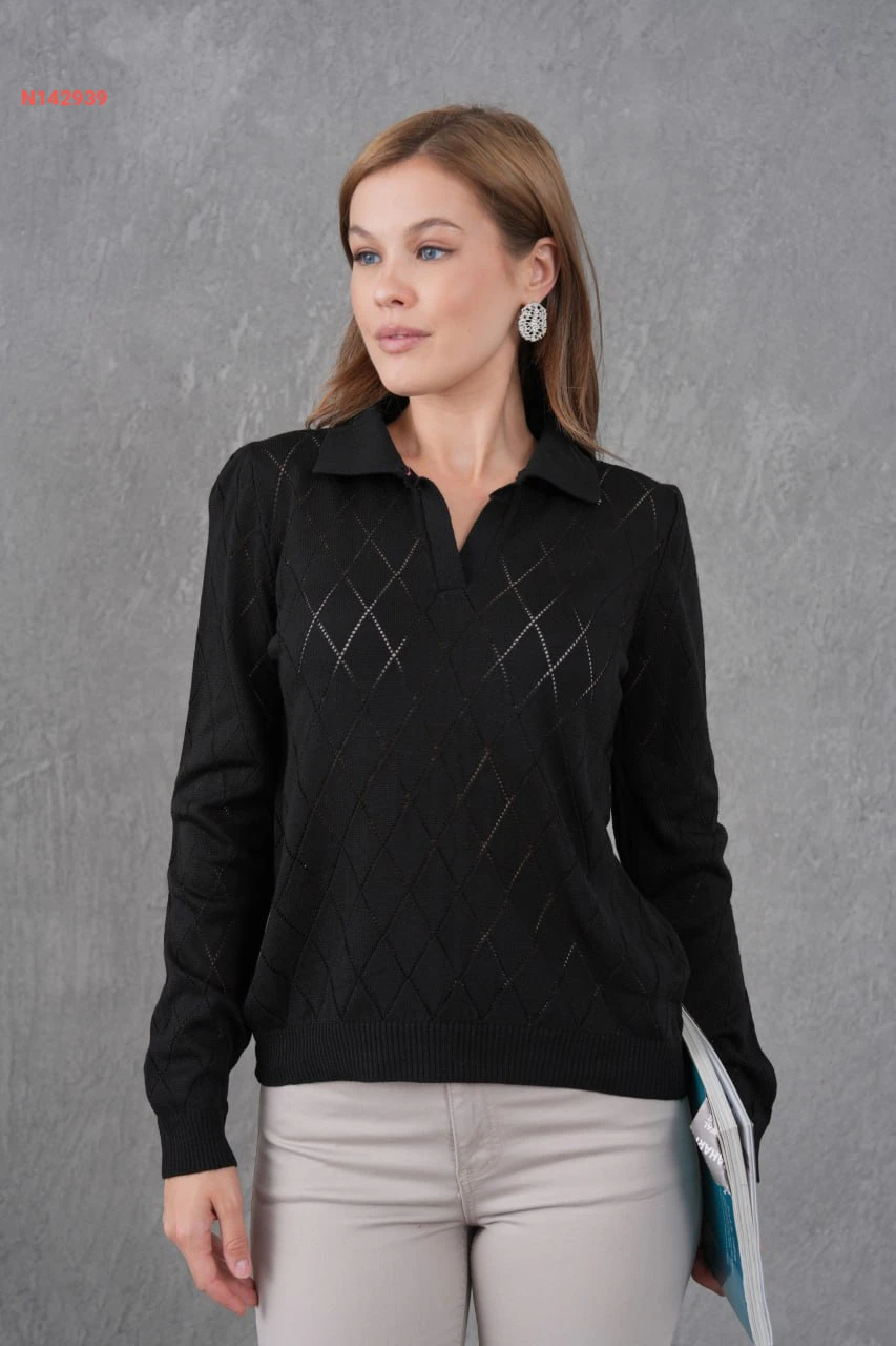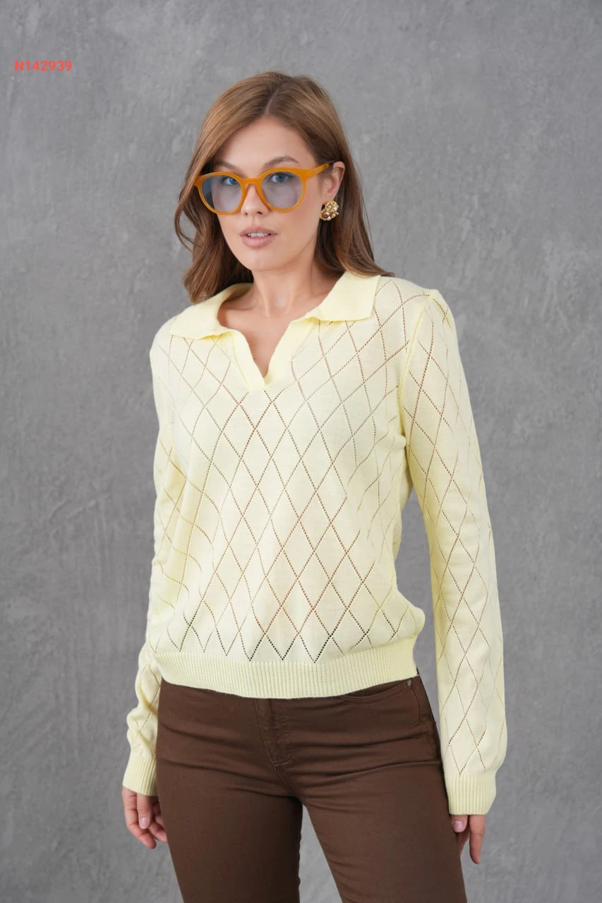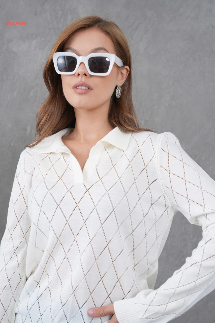 كنزة تريكو مفرغة كم طويل