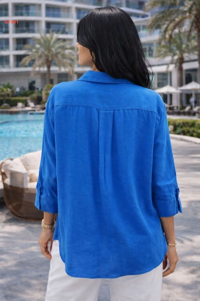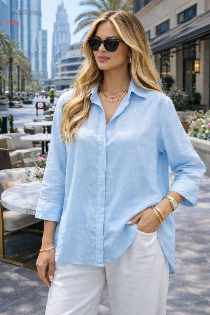 قميص كم طويل كتان