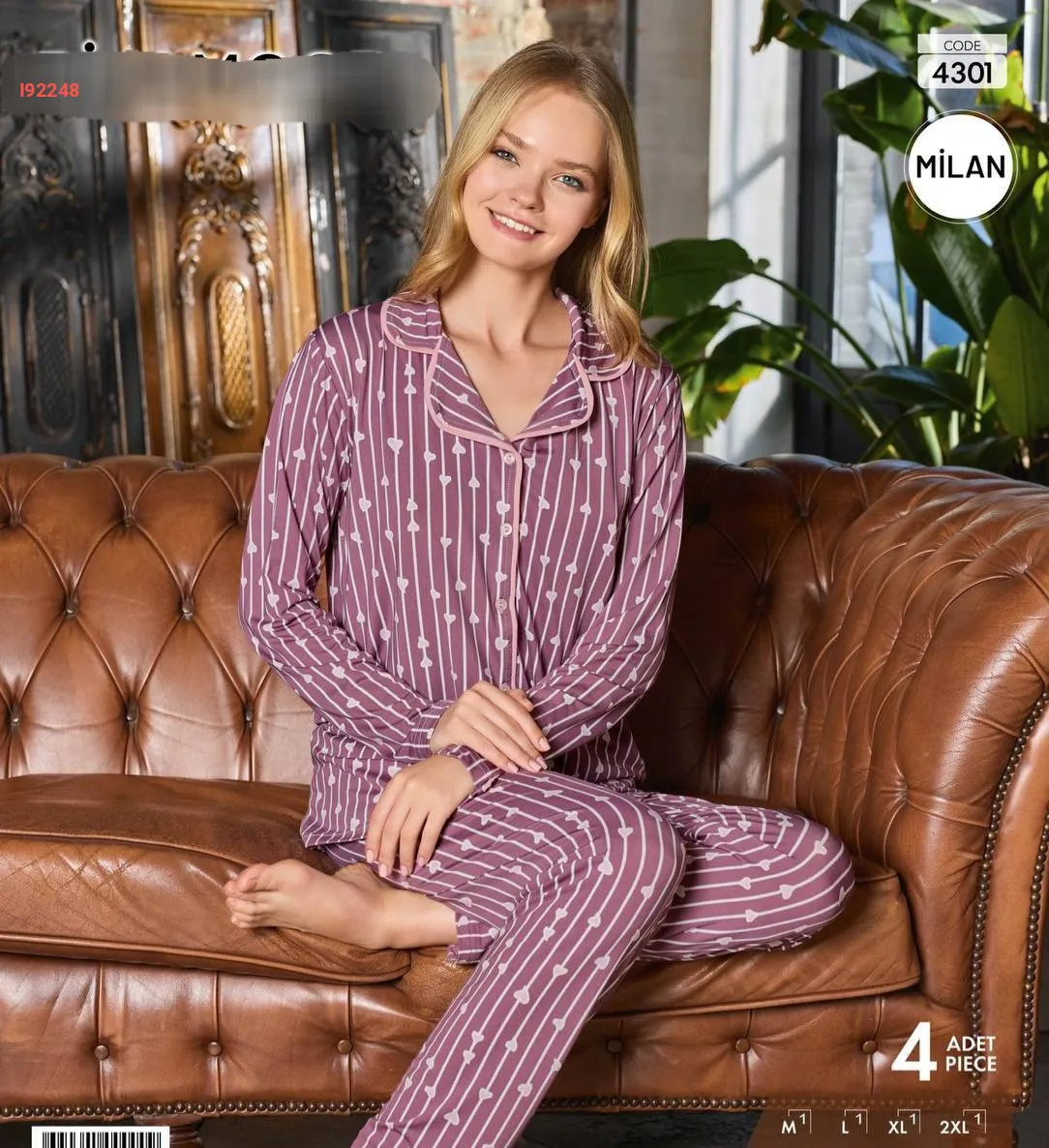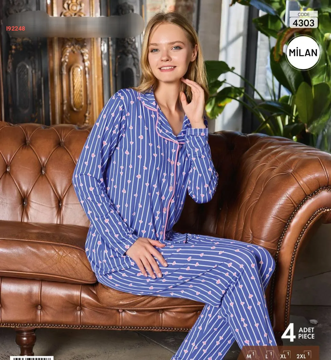 بيجامة كم طويل بأزرار