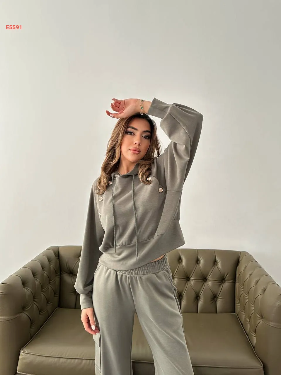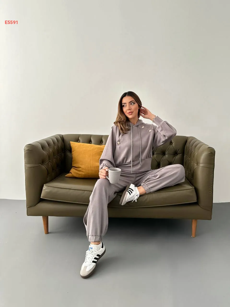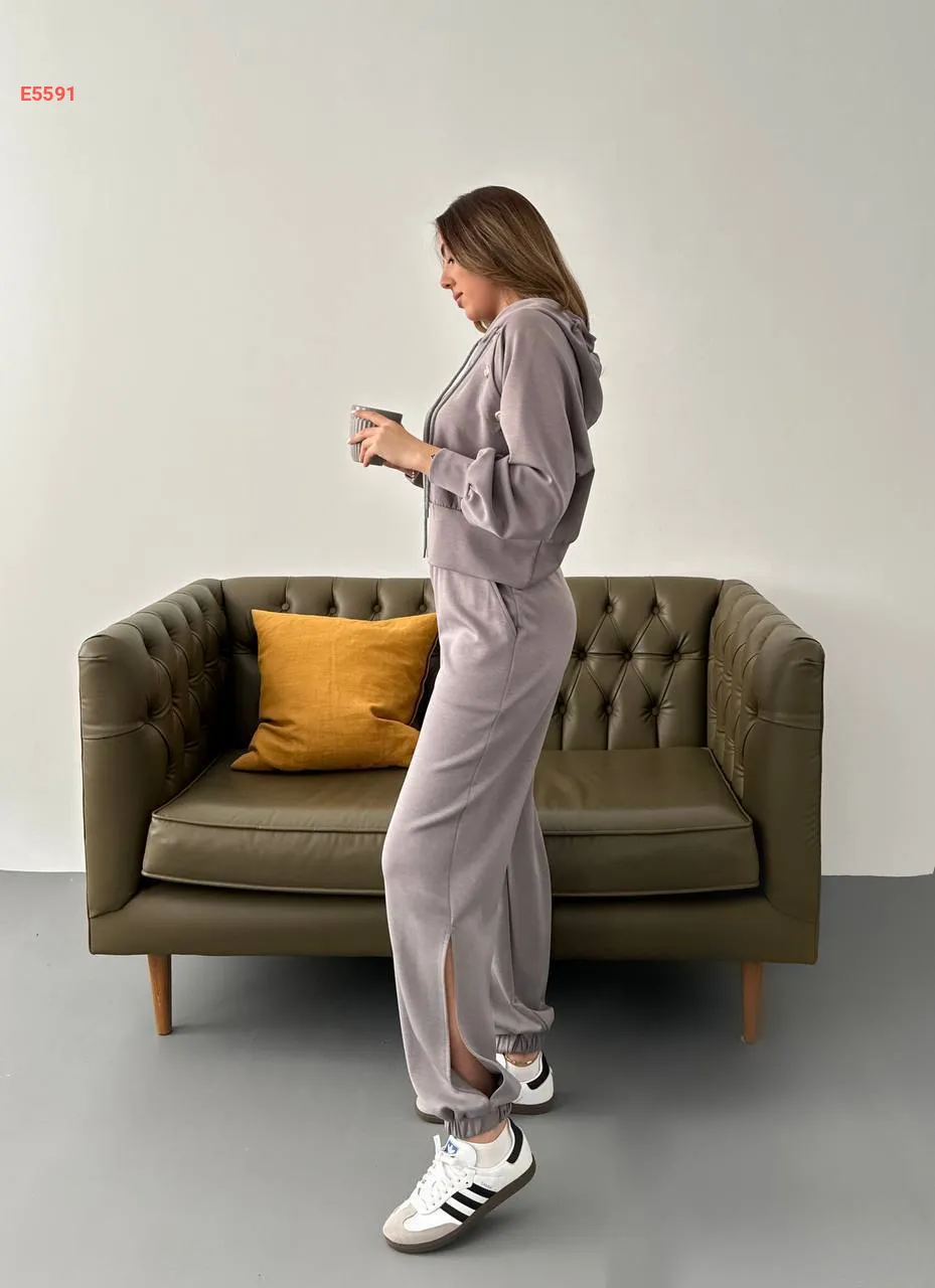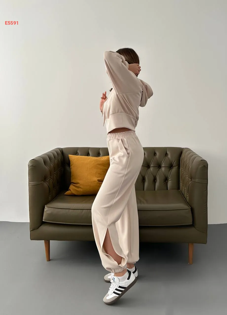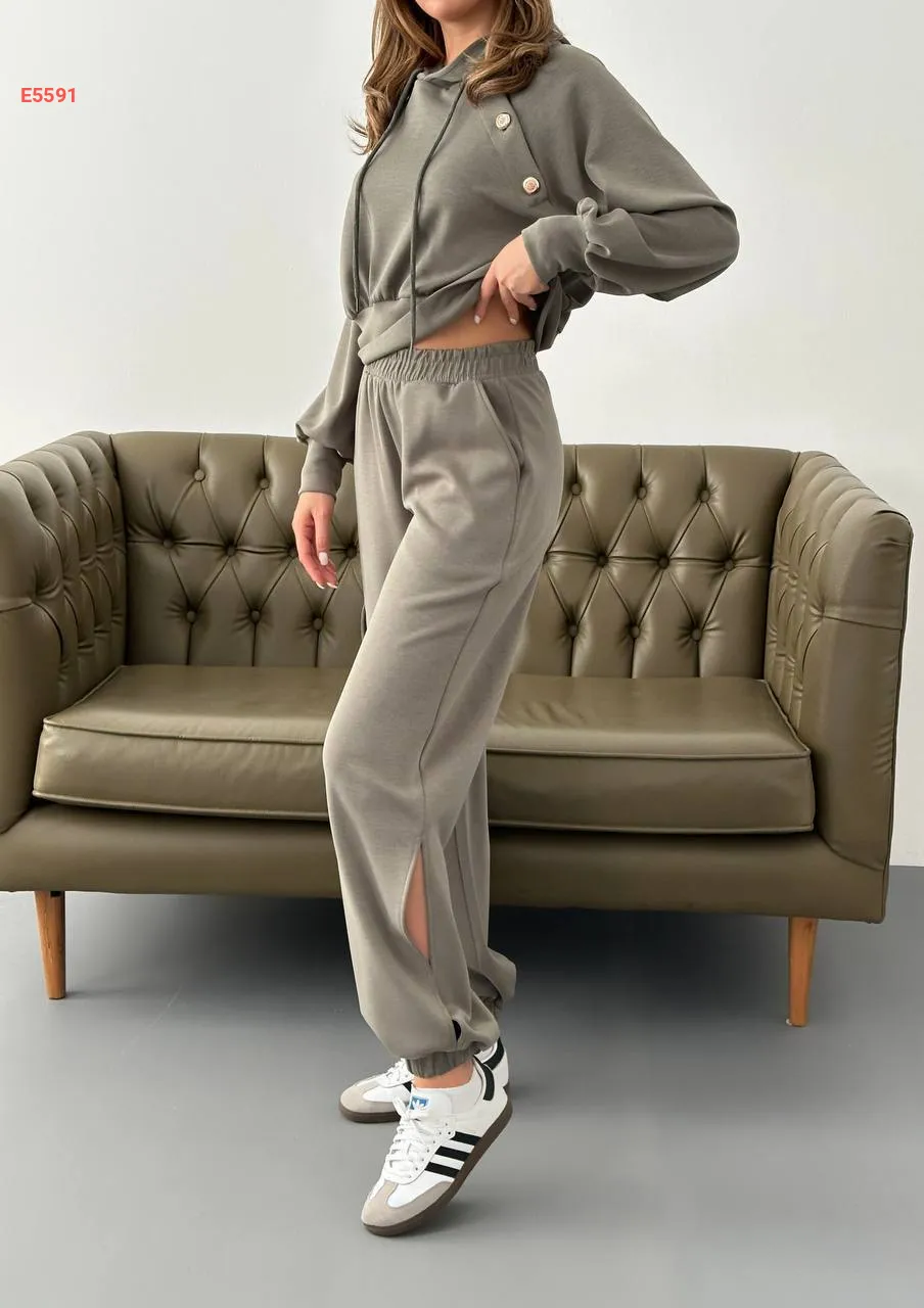 بيجامة كم طويل بفتحات جانبية للبنطال