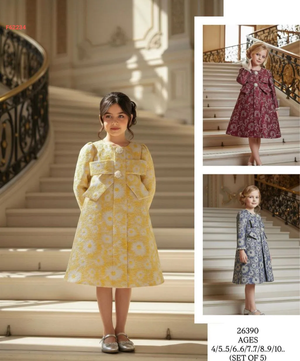 فستان بناتي كم طويل منقوش