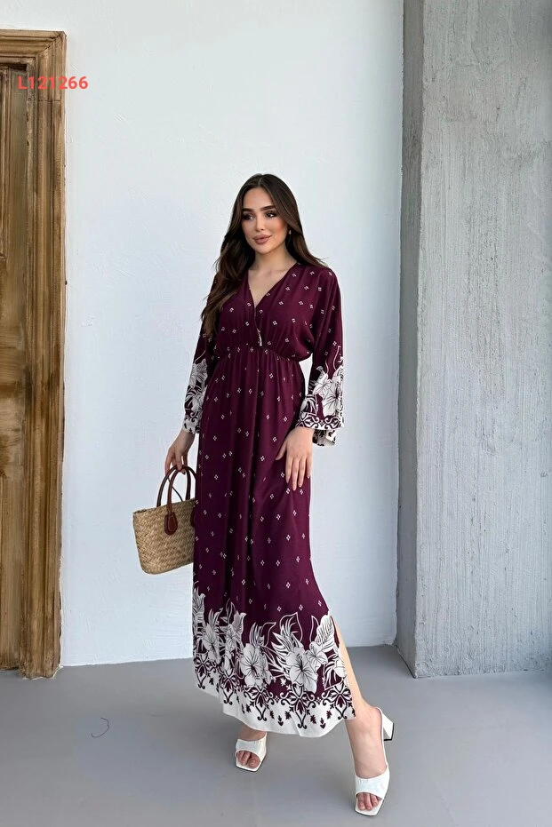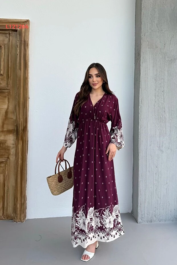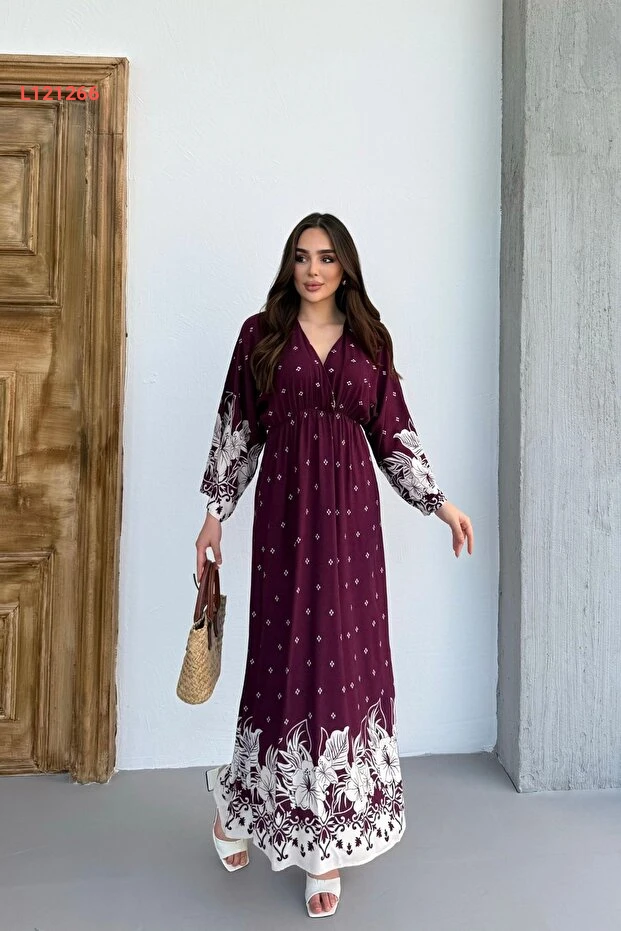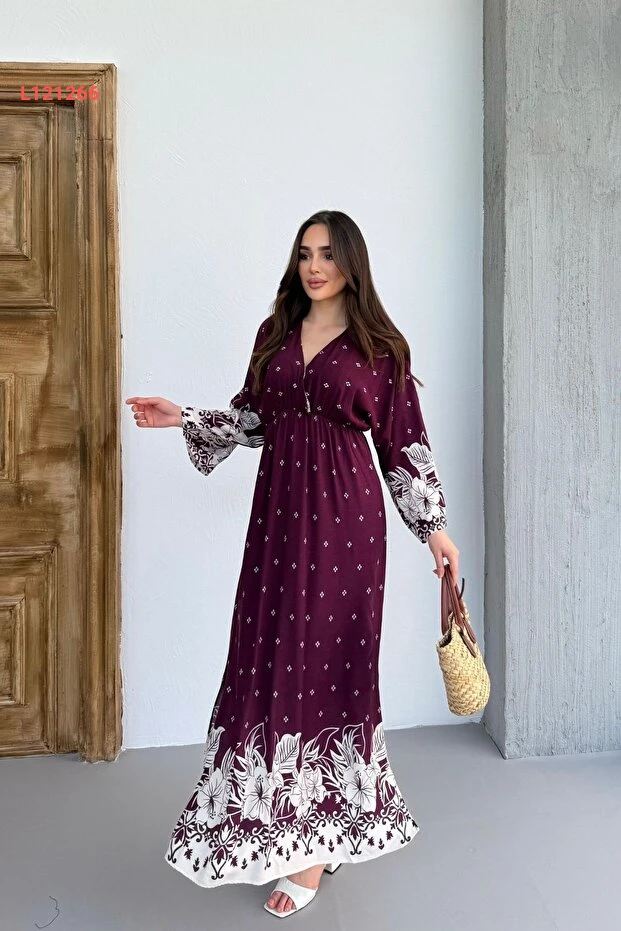 فستان نسائي طويل بأكمام طويلة ونقوش جذابة