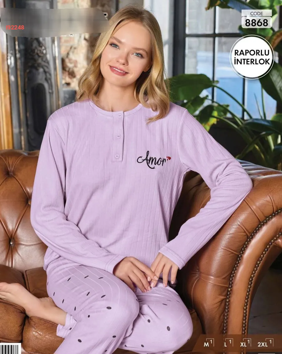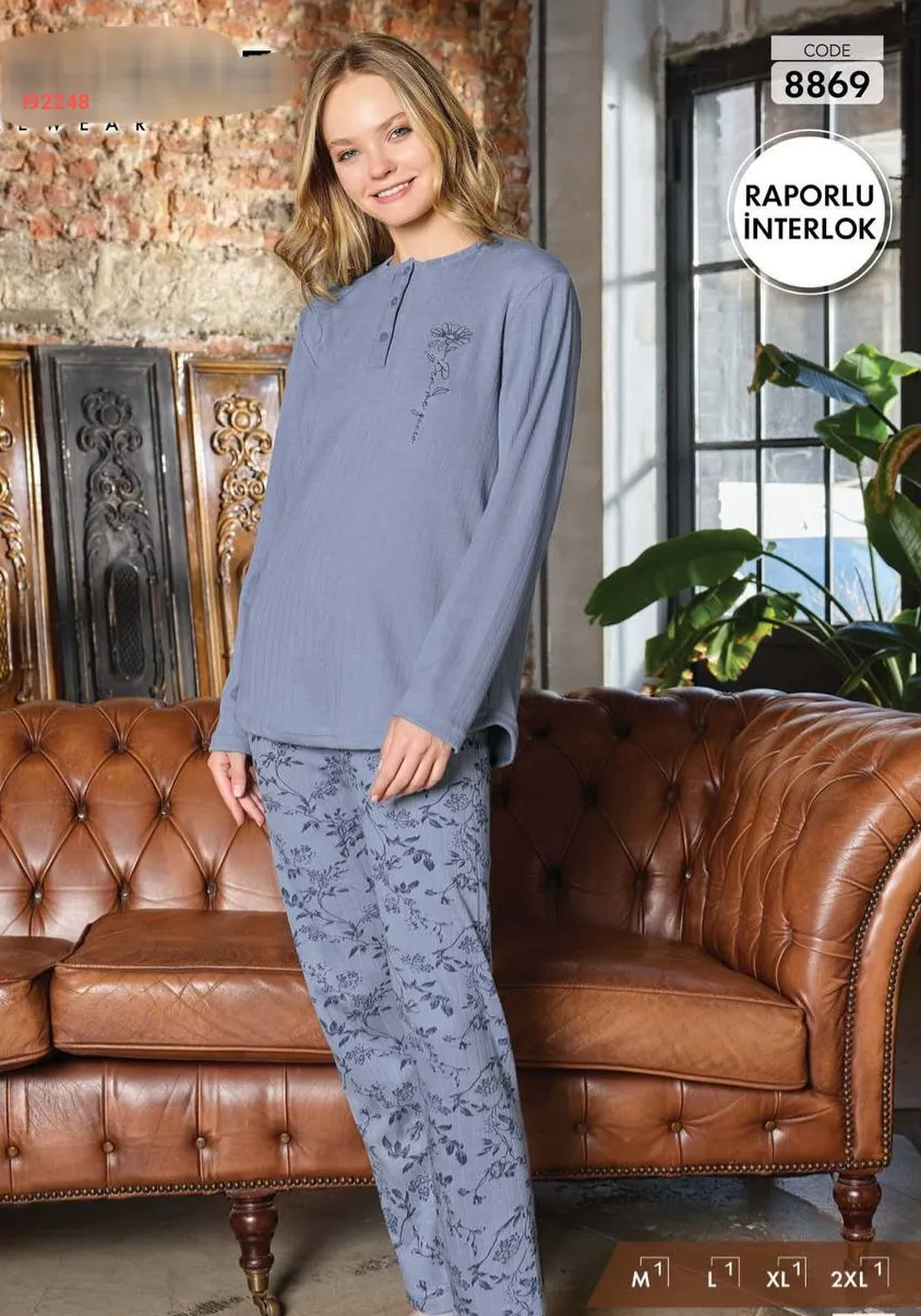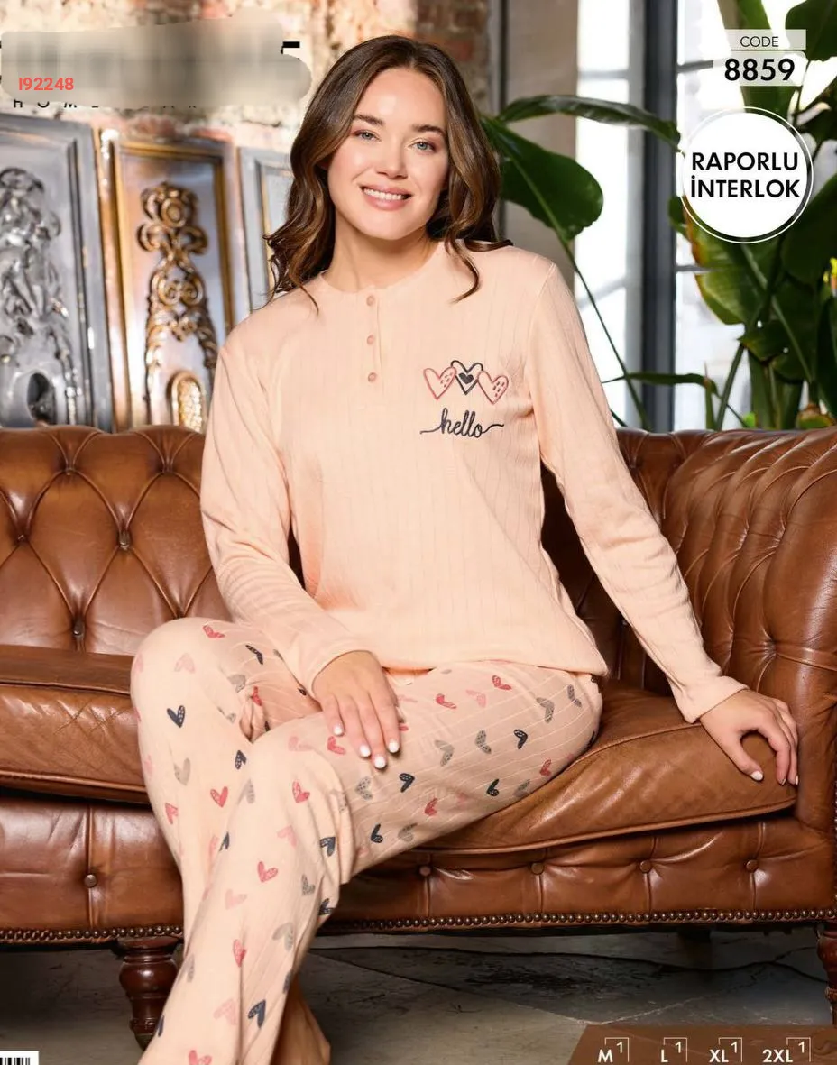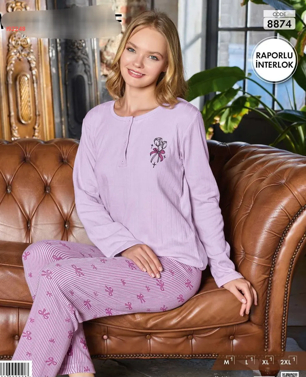 بيجامة كم طويل منقوشة
