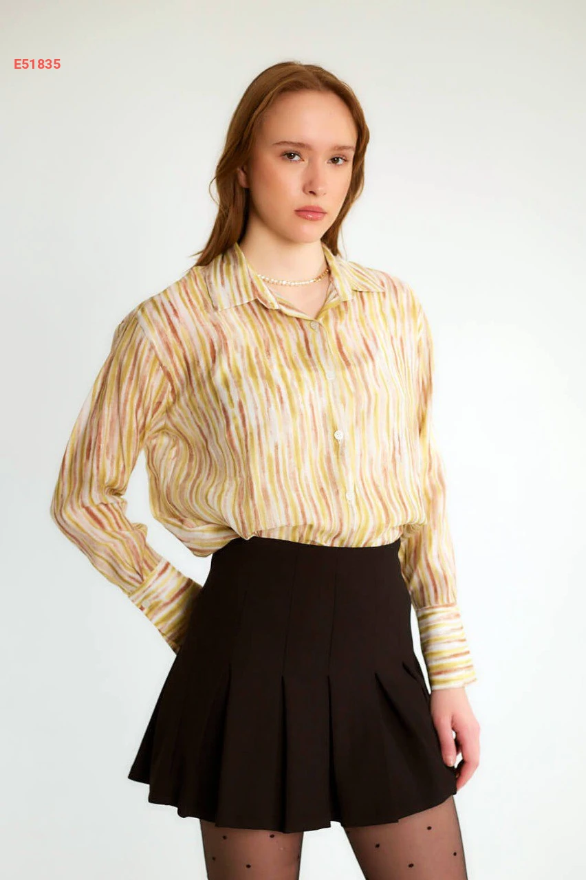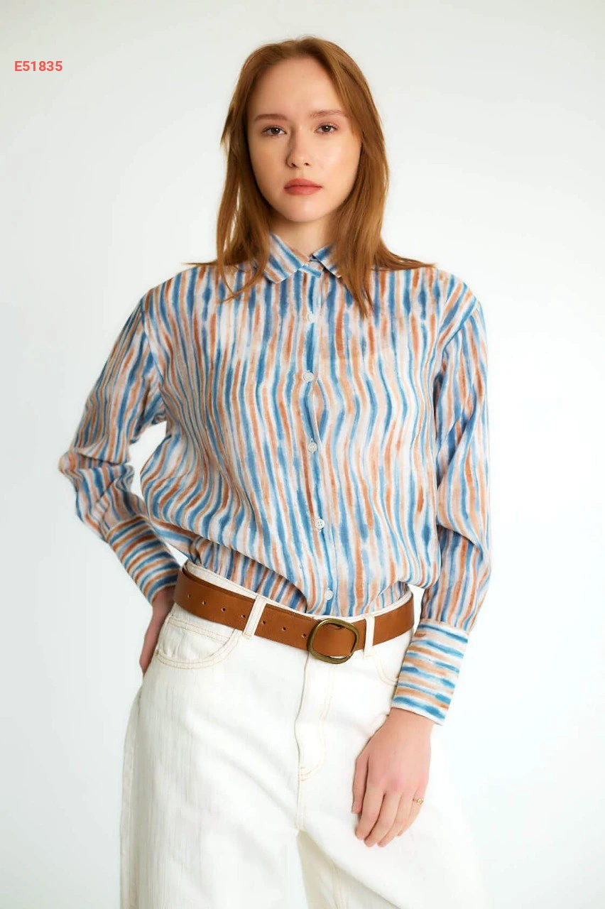 قميص كم طويل منقوش