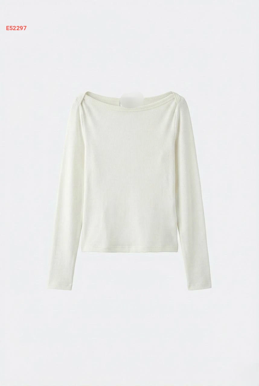 كنزة كم طويل سادة بياقة قارب