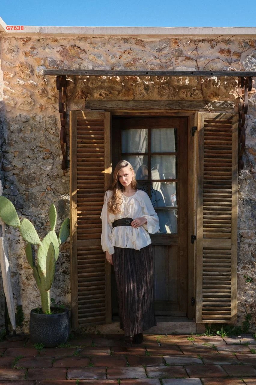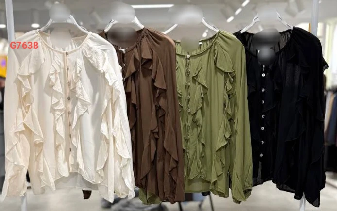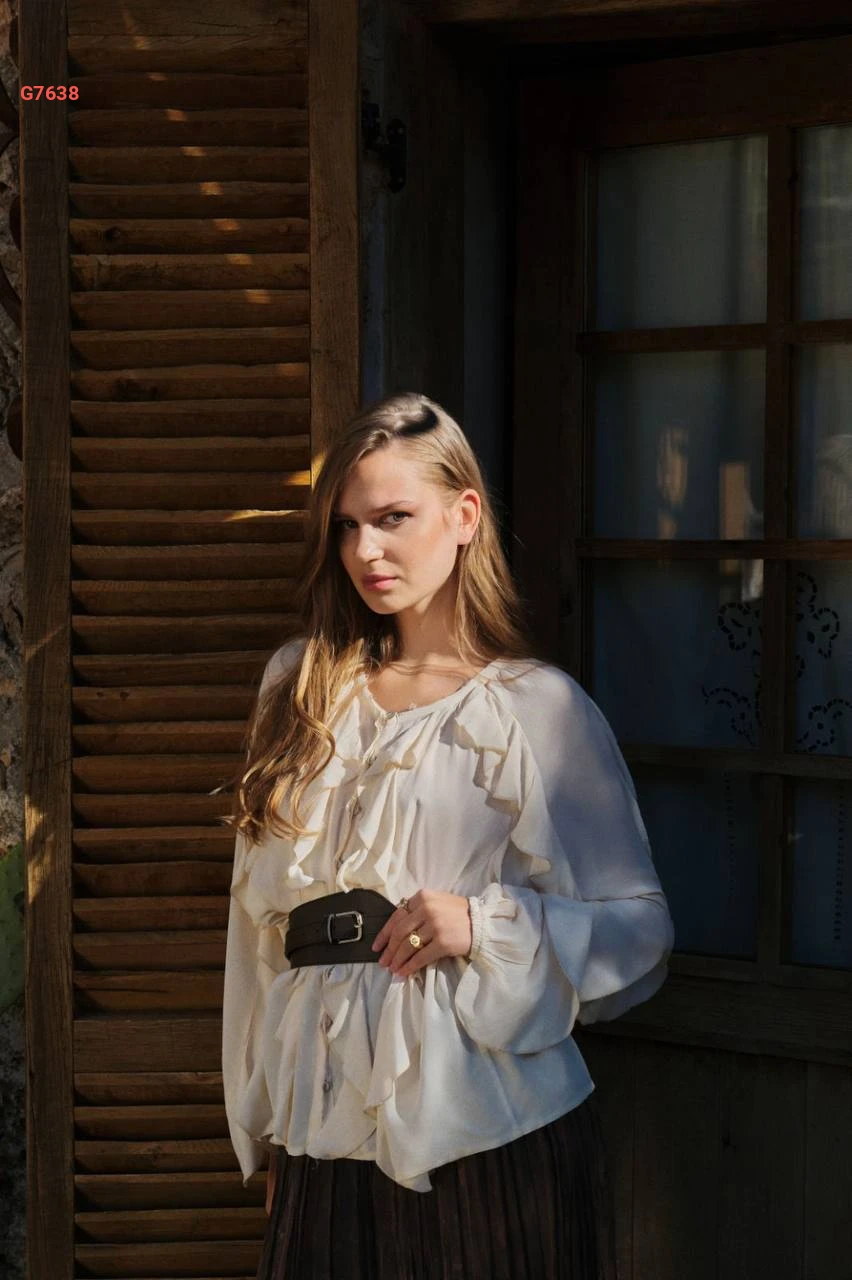 بلوزة كم طويل كشكش بأزرار