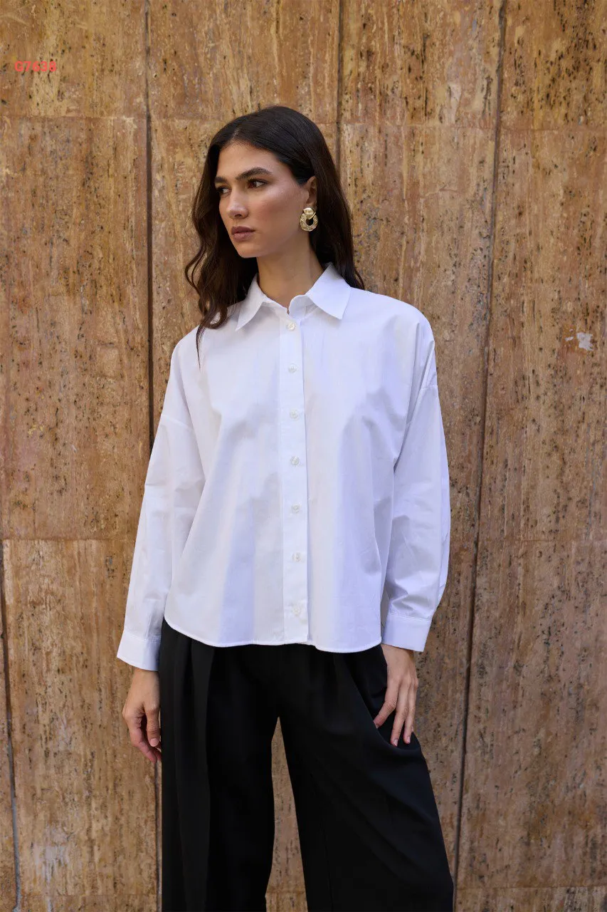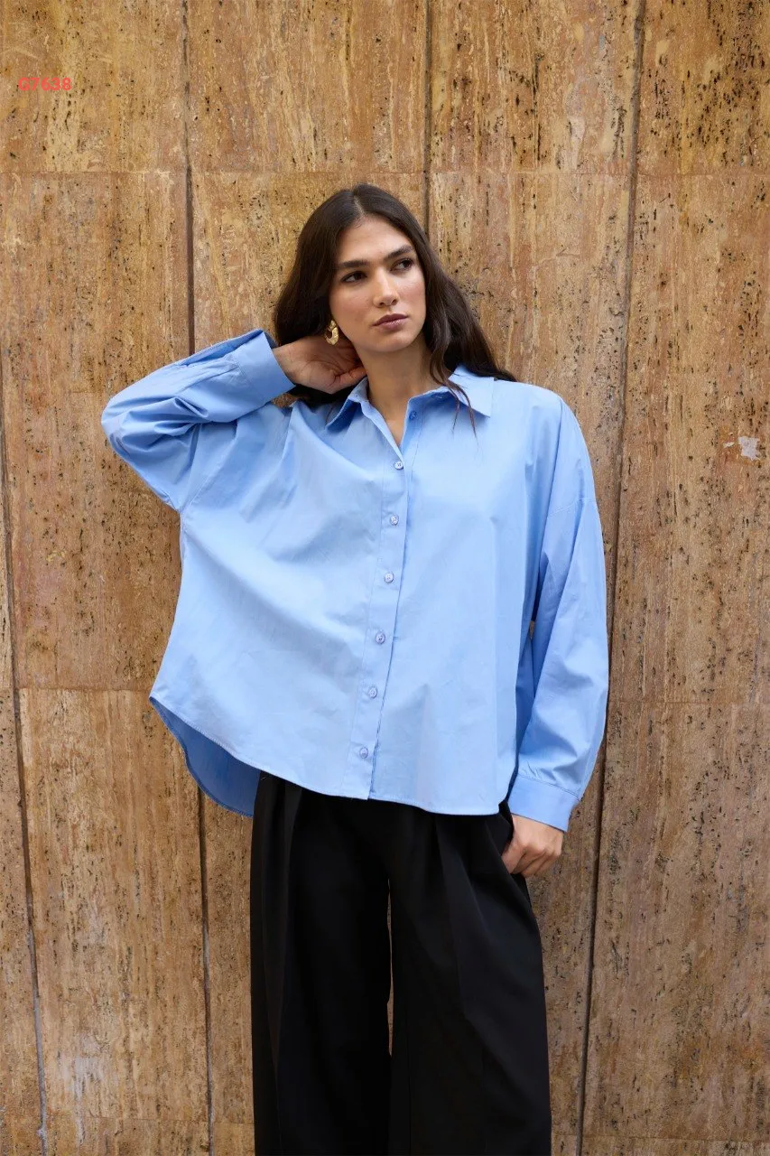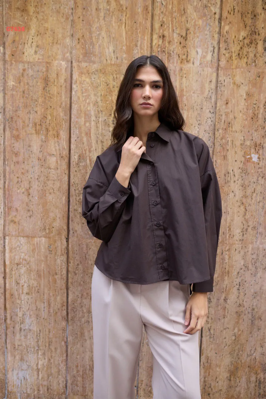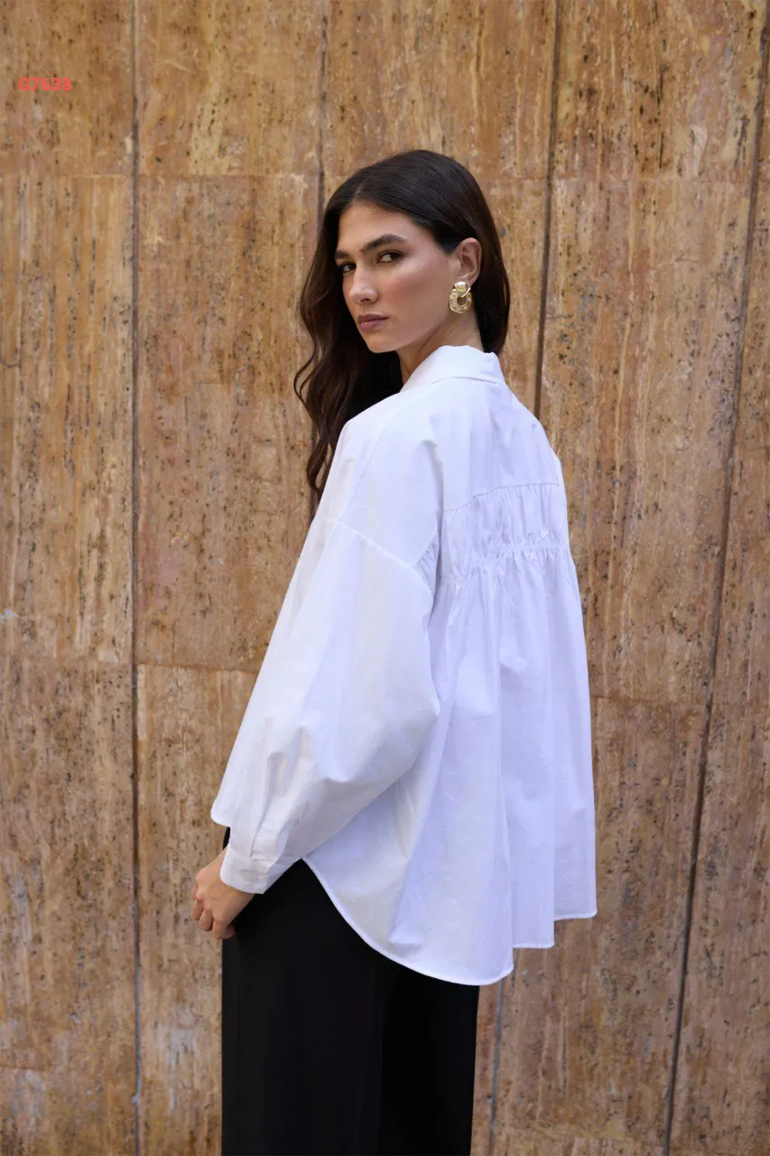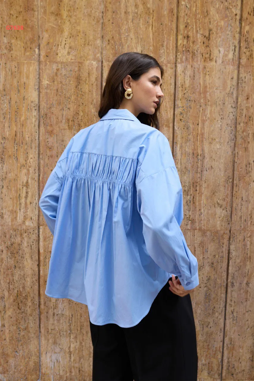قميص كم طويل مجمع من الخلف