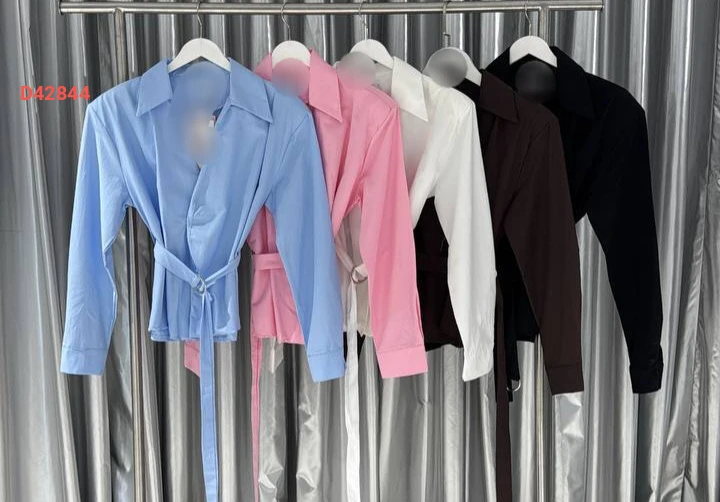 قميص كم طويل مع حزام
