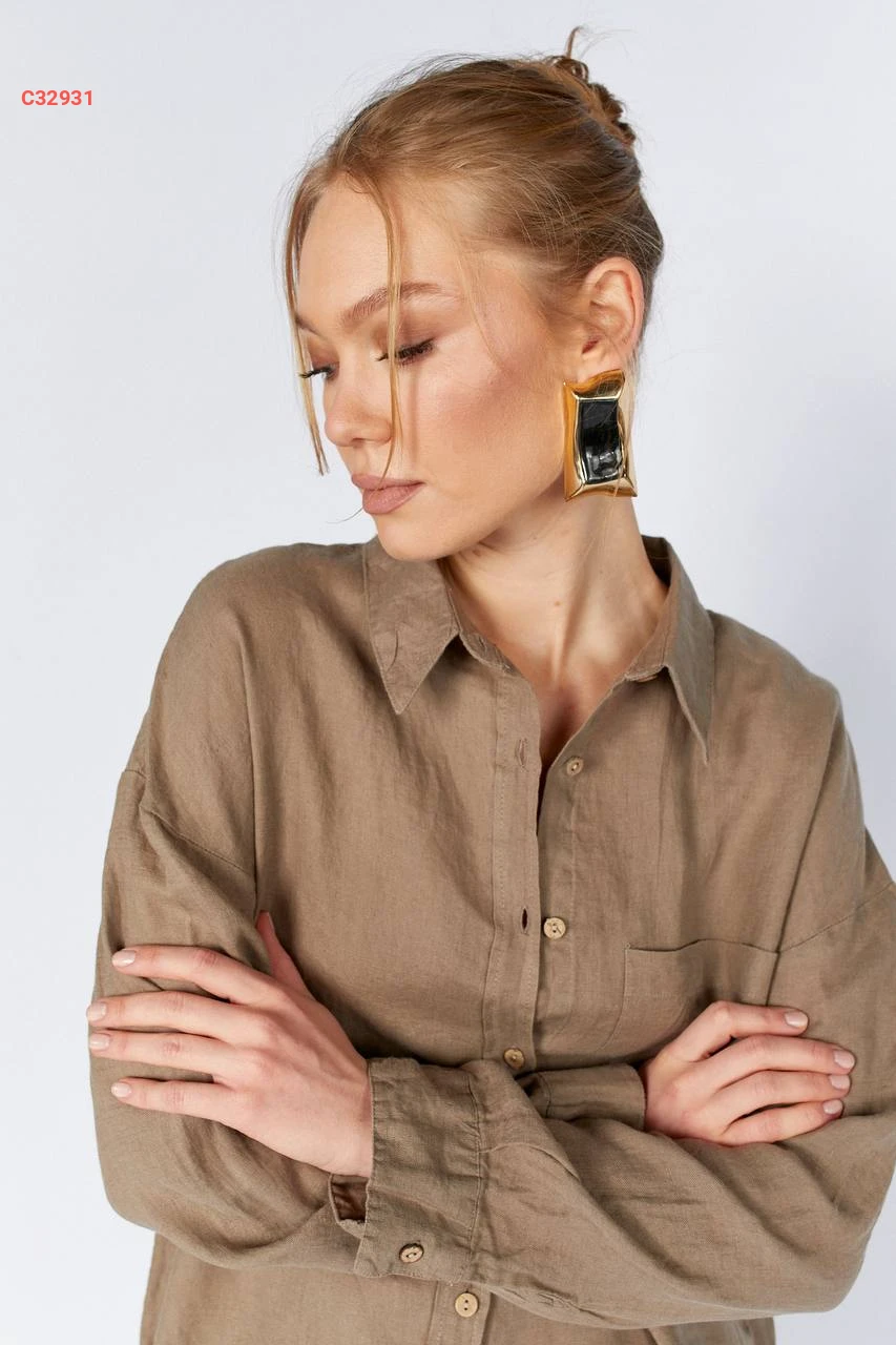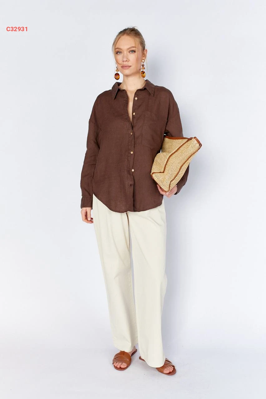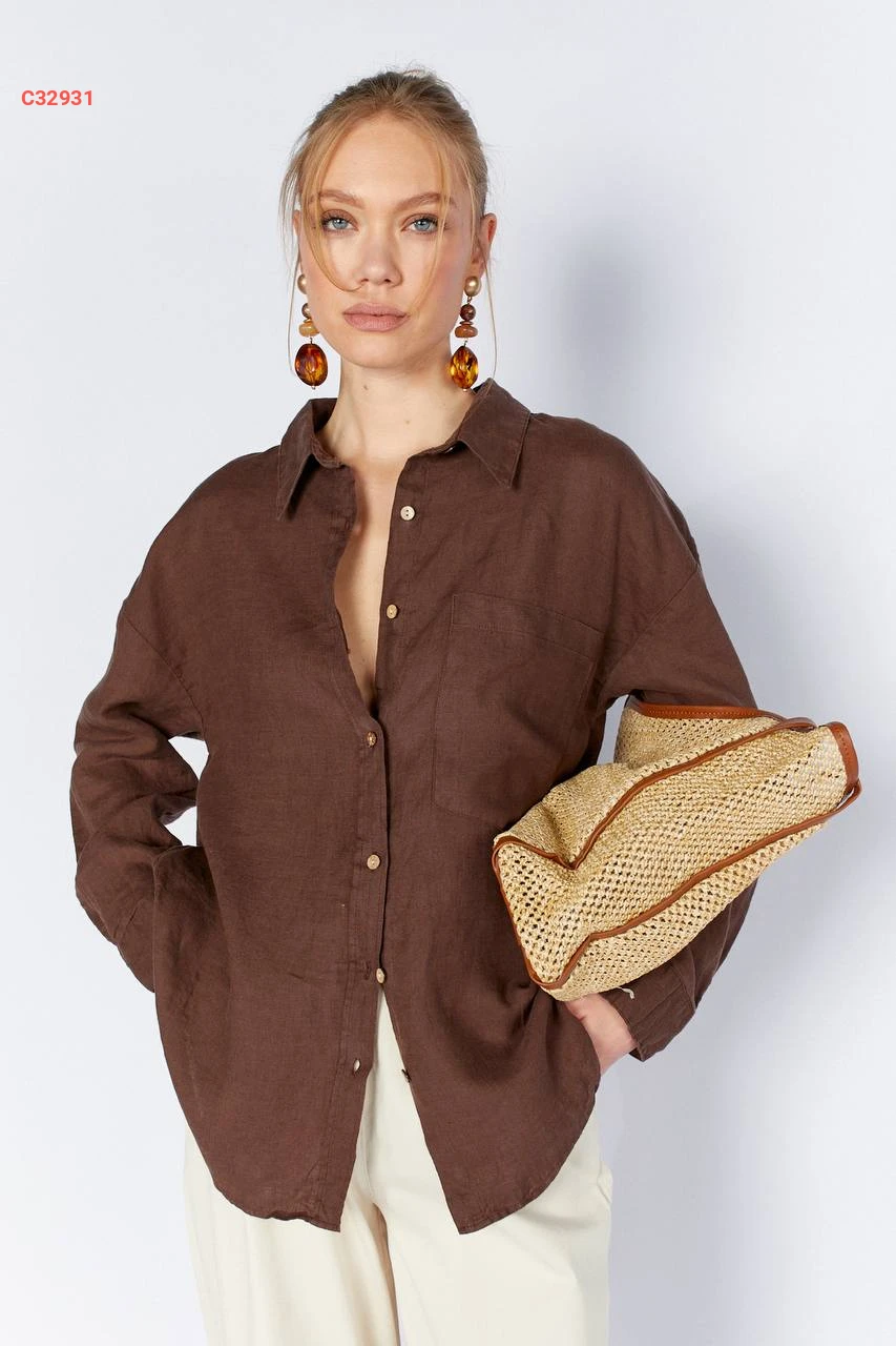 قميص كم طويل بجيب أمامي