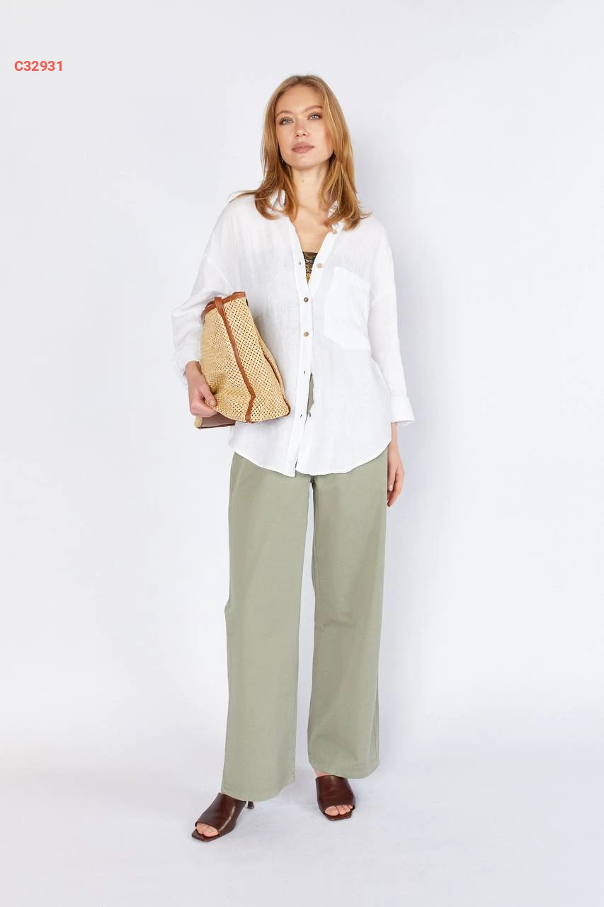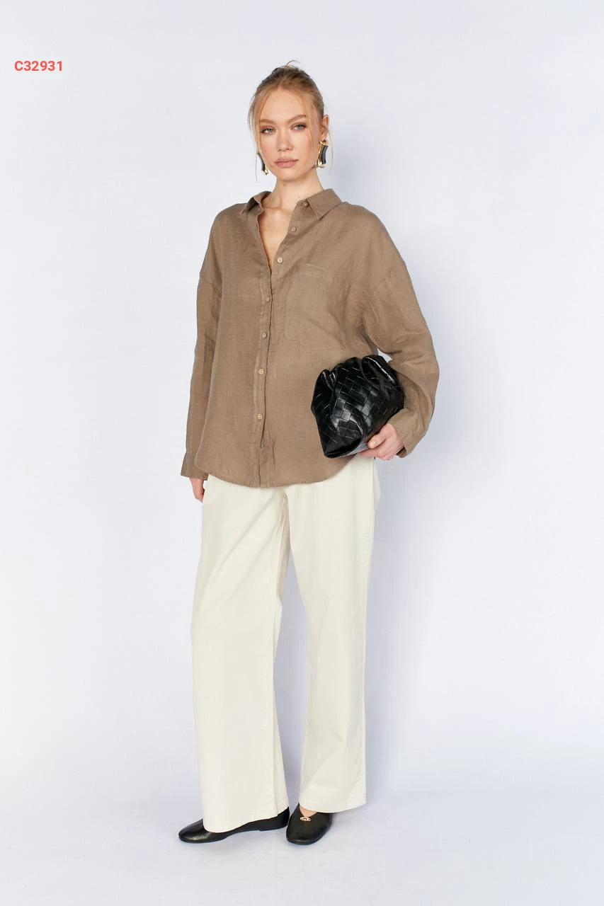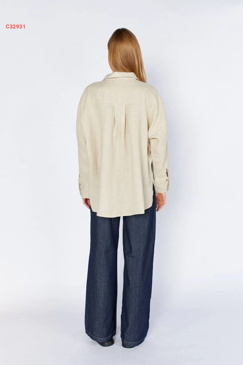 قميص كم طويل بجيب أمامي