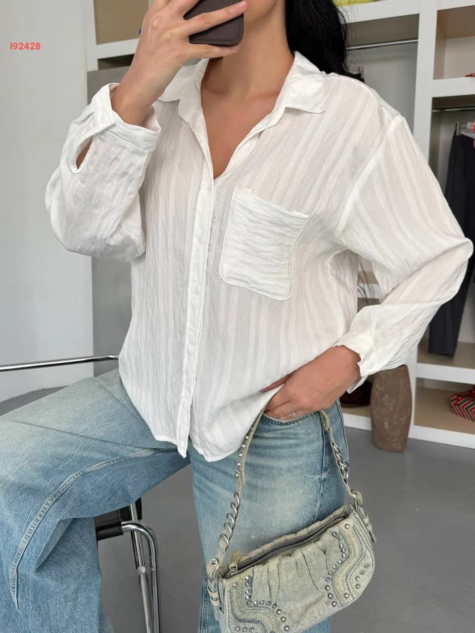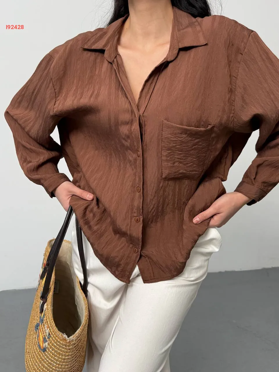 قميص كم طويل بجيب أمامي