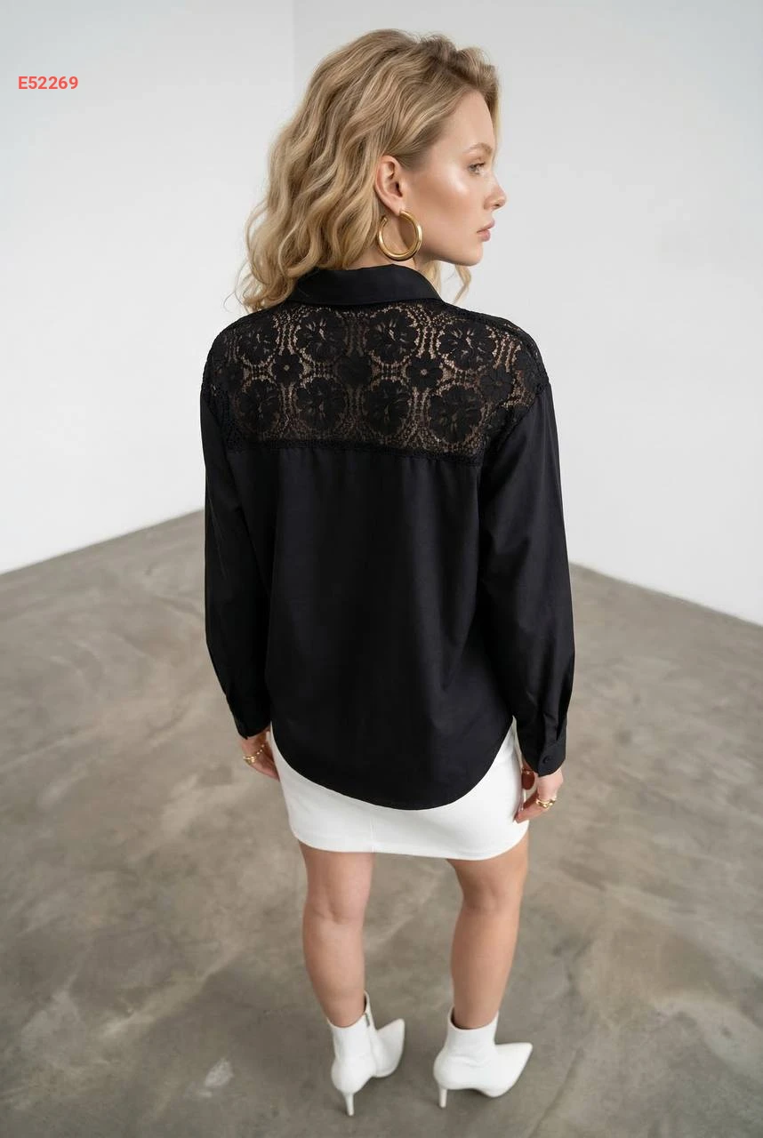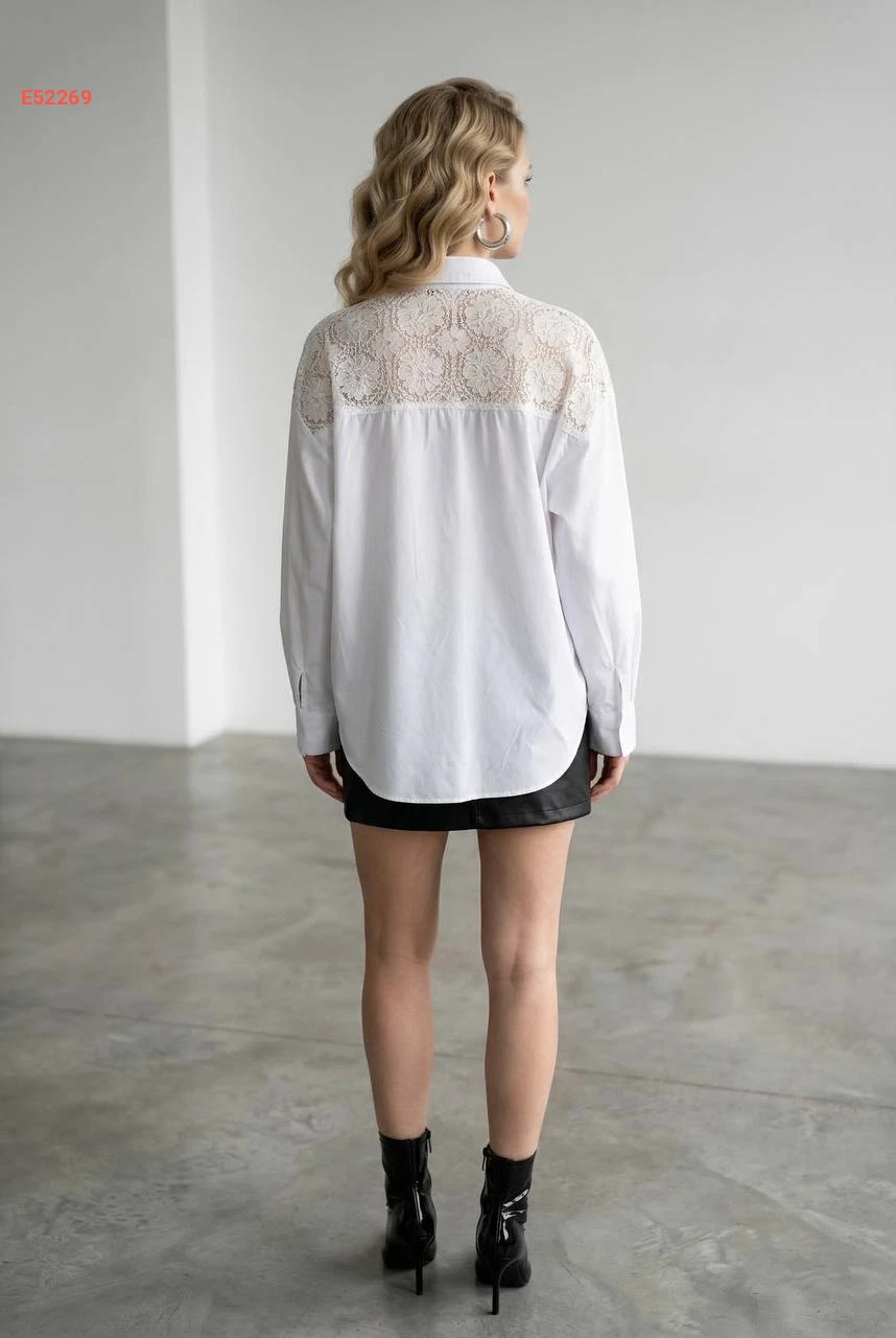 قميص كم طويل مفرغ من الخلف