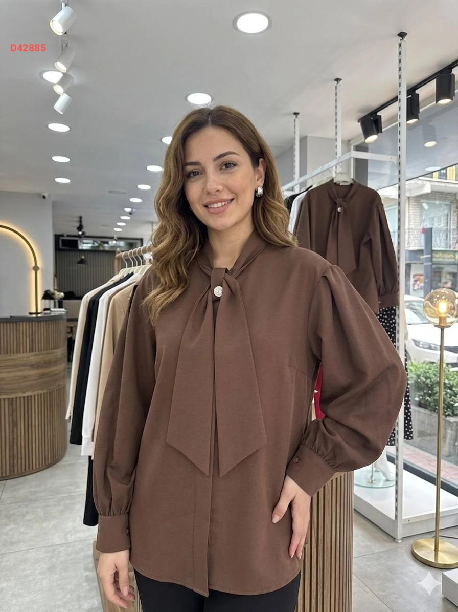 قميص كم طويل مع فولار